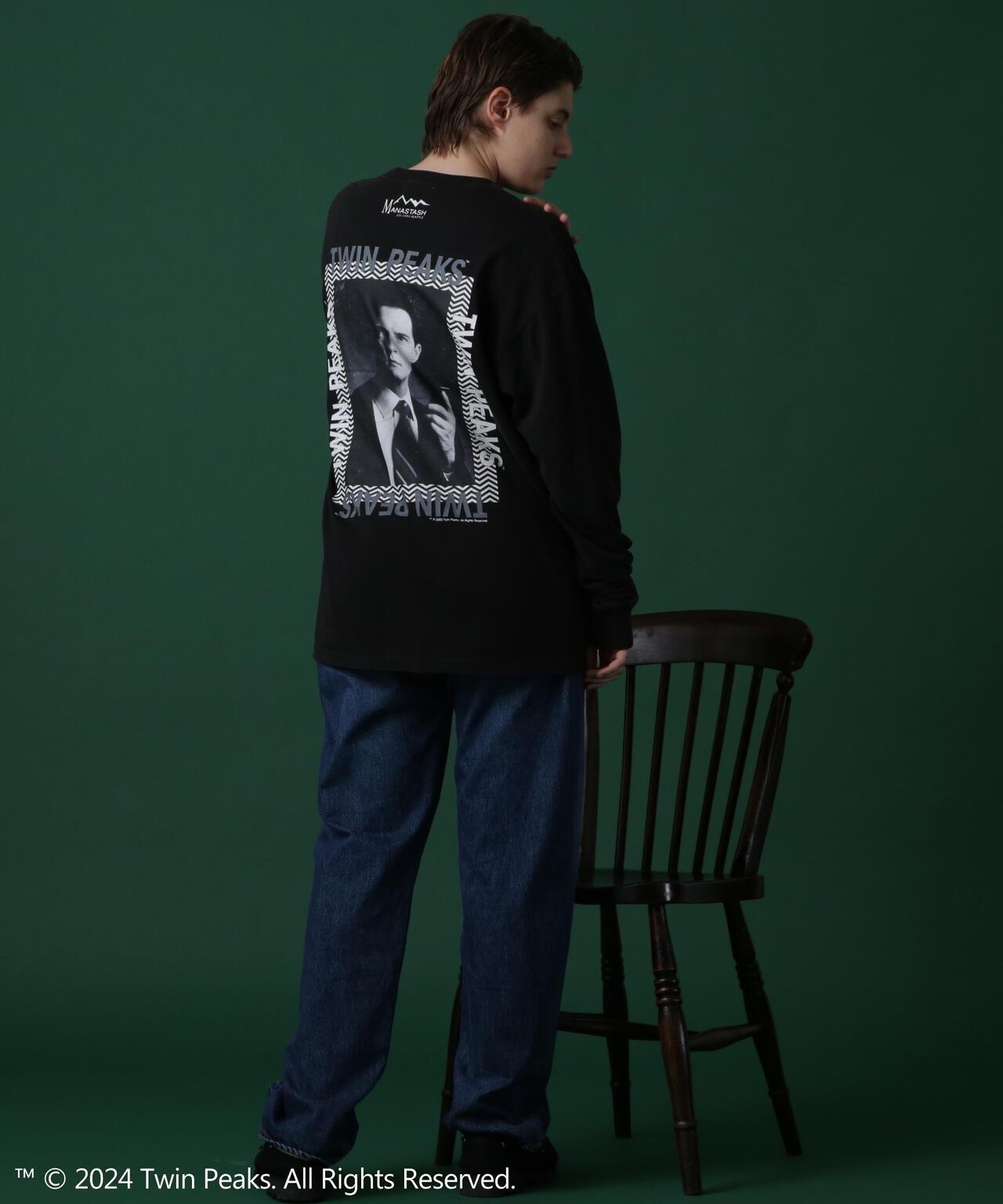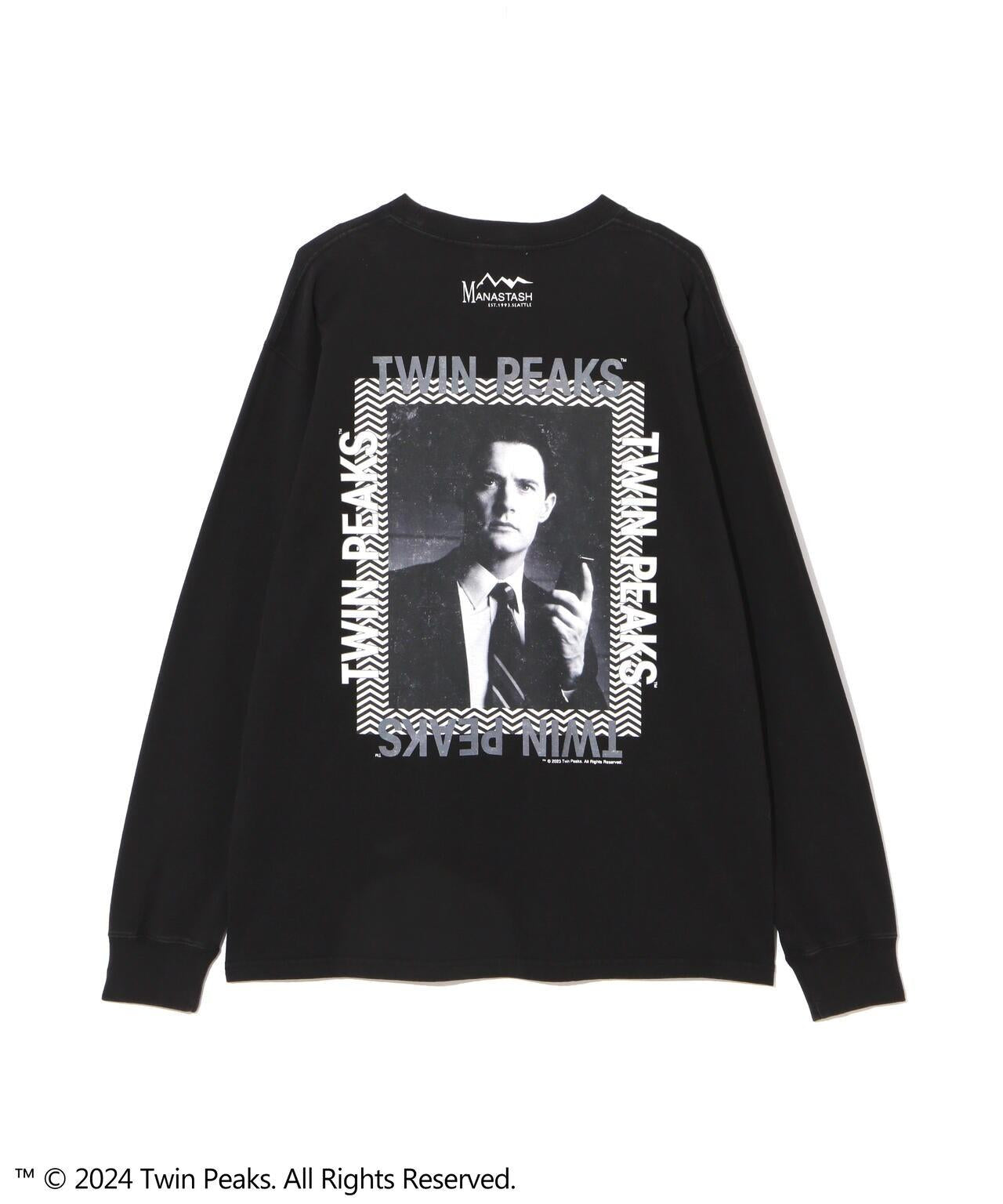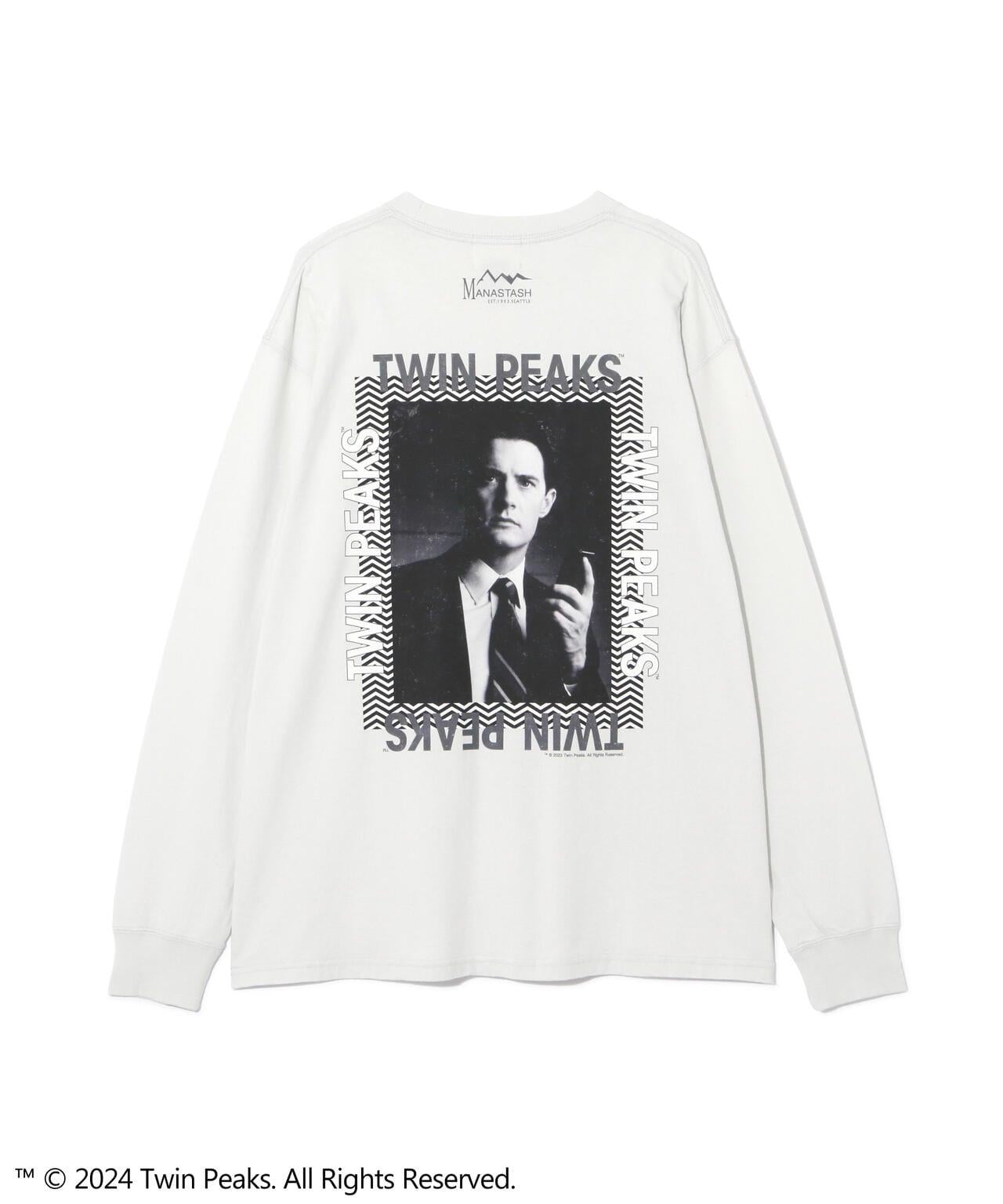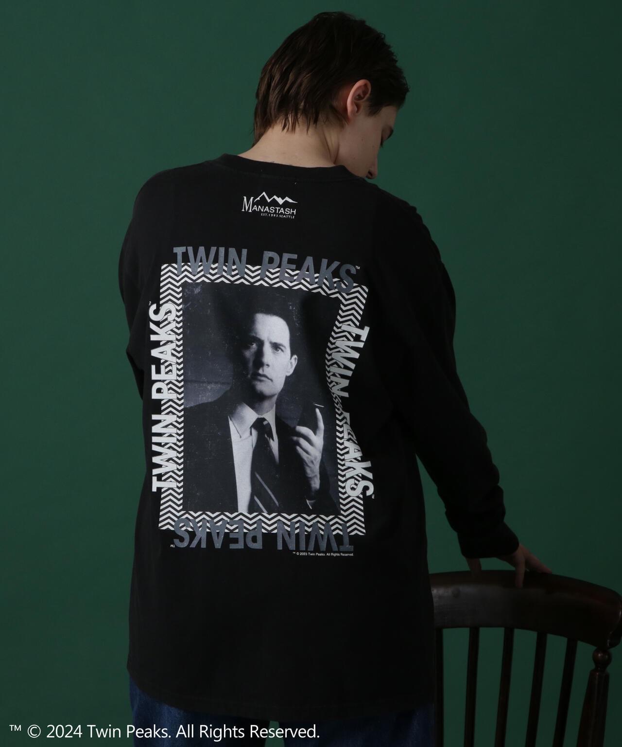 MANASTASH / MANASTASH / TWIN PEAKS L/S TEE 01 / Twin Peaks Long Sleeve T-Shirt 01TWIN PEAKS Capsule Collection,100%純棉6盎司針織布,產品經酸洗處理,長袖T恤,左幅胸前印有雙峰標誌,背後印有 MANASTASH 標誌和聯邦調查局特工庫珀的照片圖案 [TWIN PEAKS/Twin Peaks] 《雙峰》是大衛-林奇和馬克-弗羅斯特創作的一部美國電視連續劇。美國連續電視連續劇,於 20 世紀 90 年代初由當時美國三大電視網之一的 ABC 播出。編號