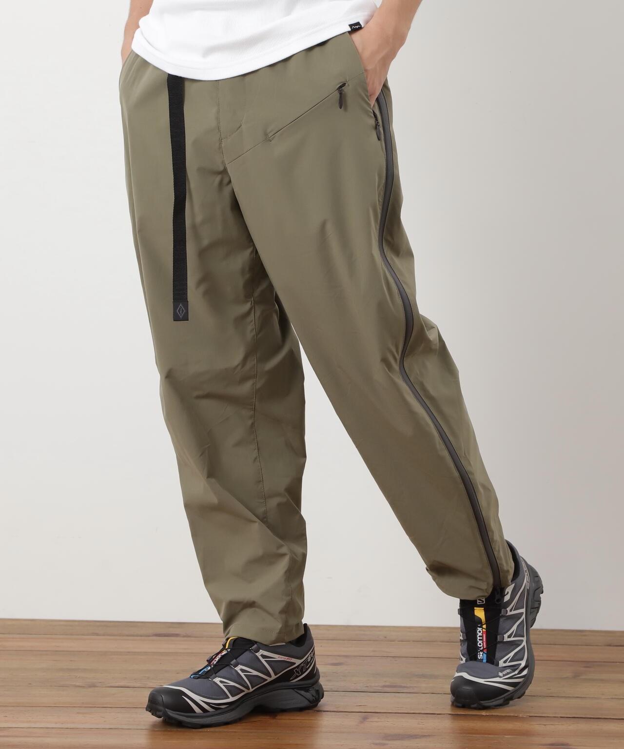 MANASTASH/EXTRA MILE TRANSFORM PANTS/XTRA MILE TRANSFORM PANTS・100%聚酯纖維天然彈力面料,具有良好的透氣性和快乾性。腰部採用織帶+鬆緊帶的簡易腰部設計,穿著舒適無壓力,FIDLOCK 磁鐵上印有 Manastash 標誌。前後腰帶環上有軍用掛鉤,從腰部到下襬都有設計大膽的防水側拉鍊,還有防水腰帶。