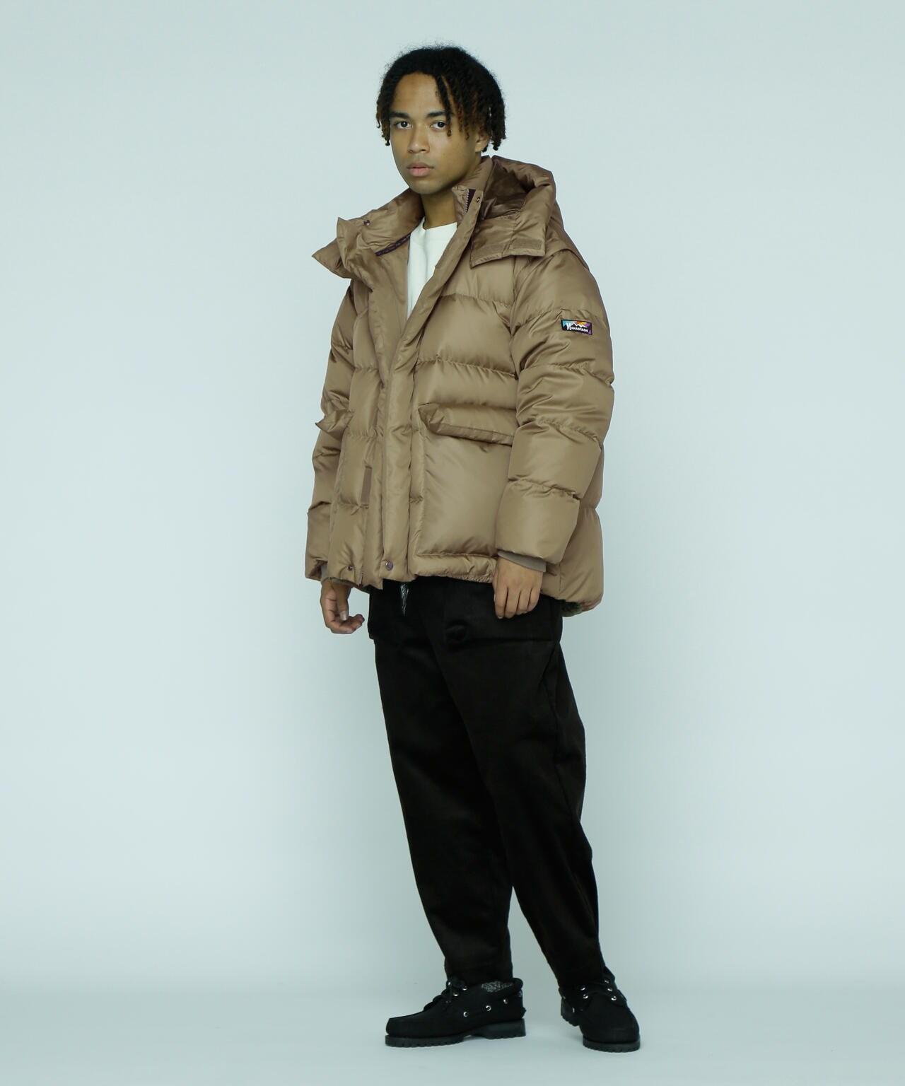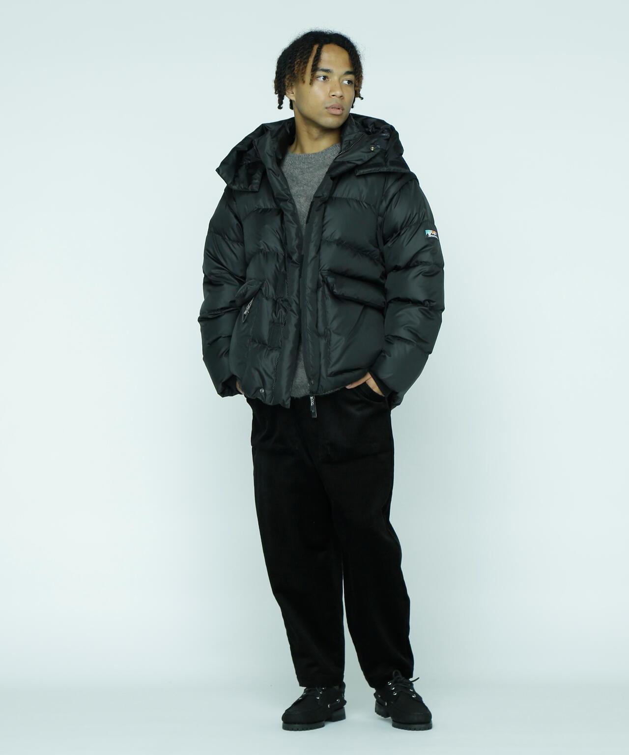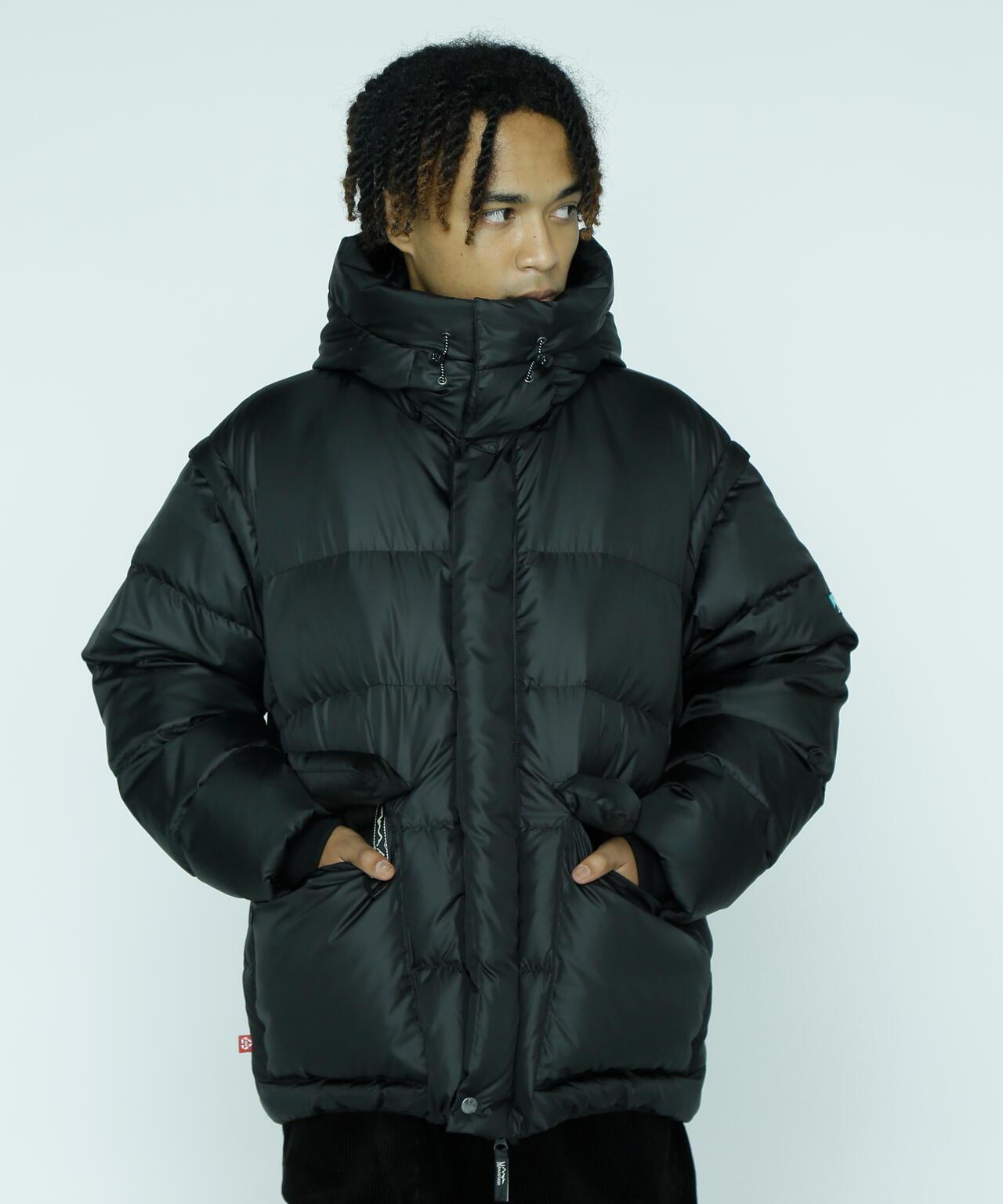 MANASTASH / MANASTASH / 4WAY DOWN JACKET / 4WAY DOWN JACKET 材質 - 外層面料採用回收滌綸材料。填充物為回收羽絨。內襯由尼龍製成。外層和內襯均由柔軟材料製成,使這款羽絨服不僅環保,而且穿著舒適。特點 - 連帽和袖子可拆卸,因此可以有四種不同的穿法。兜帽採用立體制作,可在前部用尼龍搭扣固定。兜帽採用立體設計,前部可以用尼龍搭扣固定,還可以用抽繩進一步收緊,非常保暖。口袋上有一個可以從上方放入的翻蓋口袋,還有一個帶對角拉鍊的暖手口袋,因此它在防寒和儲物能力方面都有很好的表現。右側口袋有鑰匙扣。