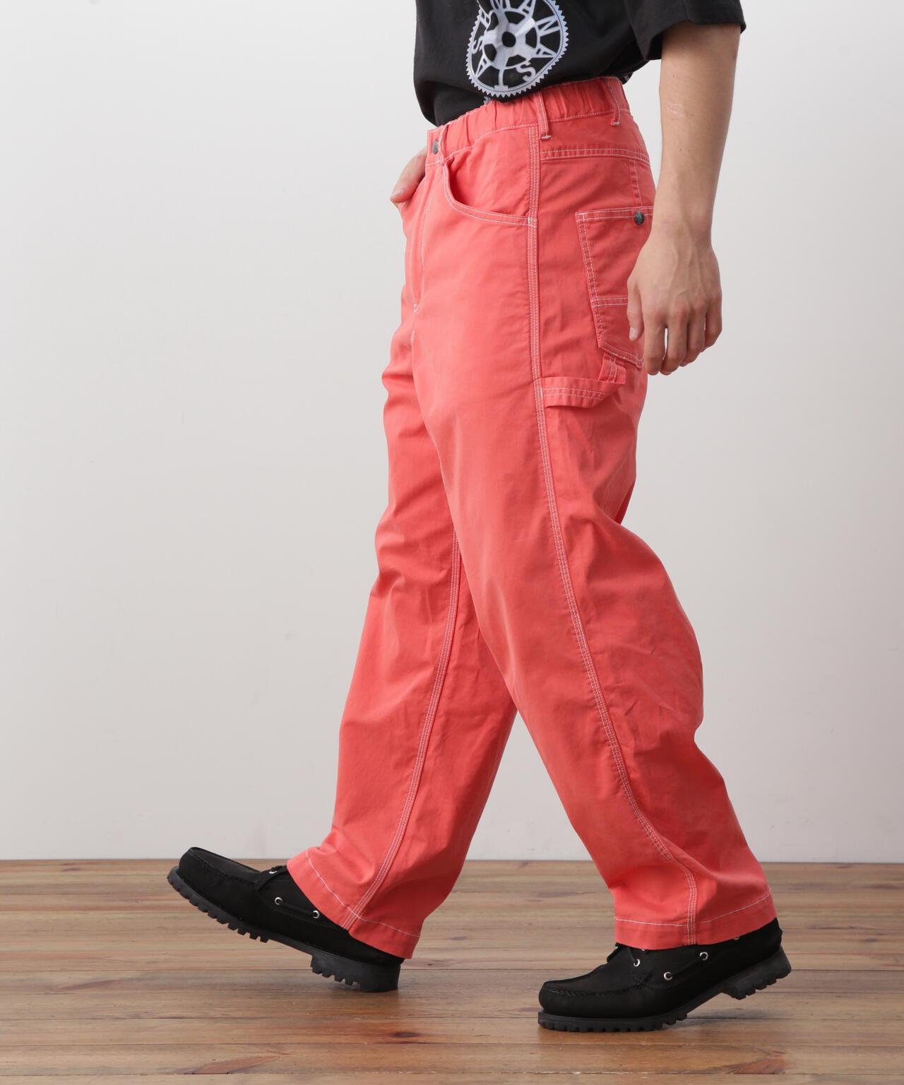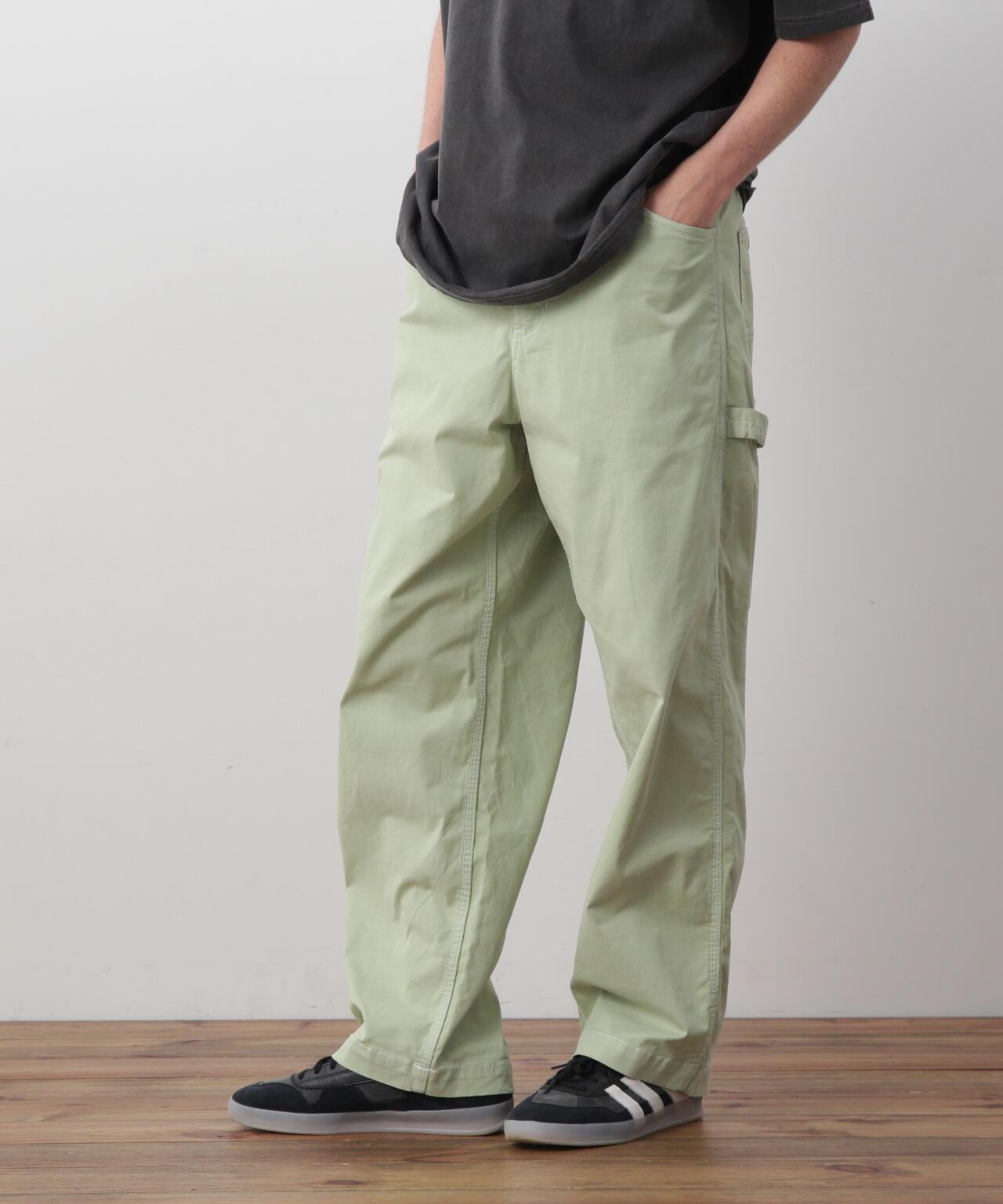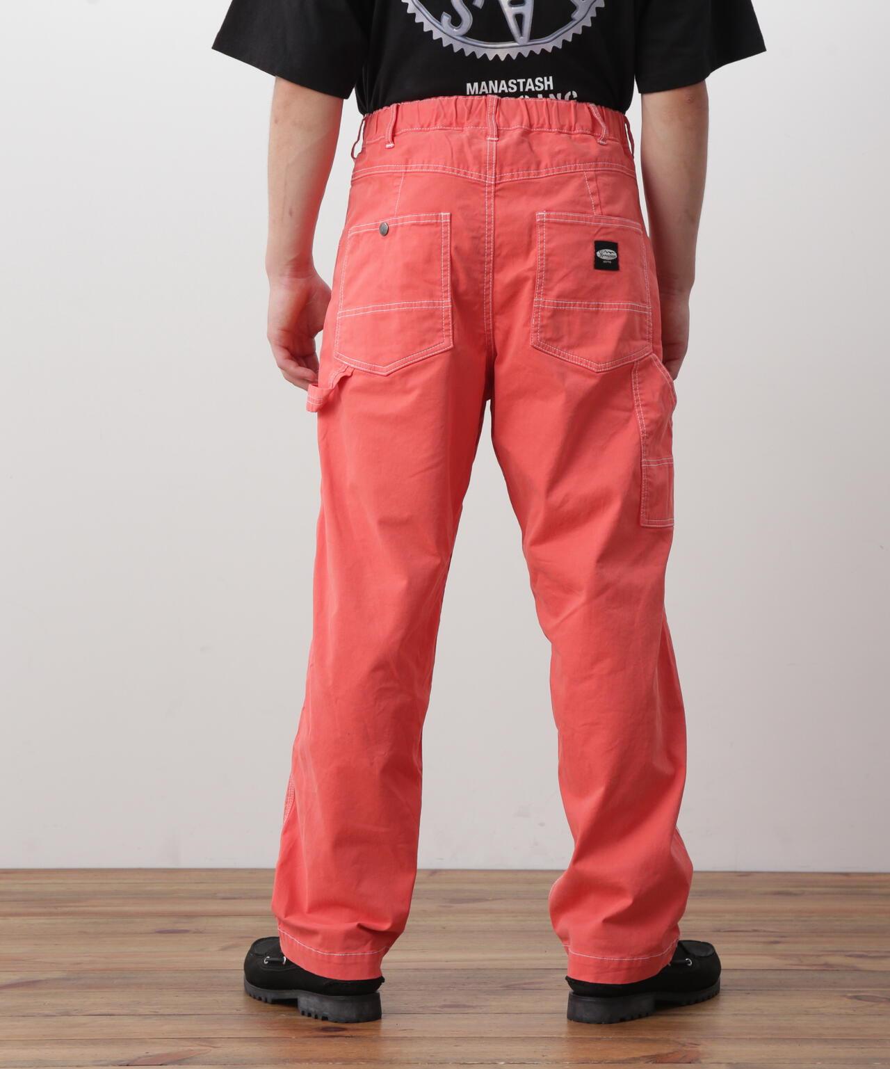 MANASTASH / WASHED COLOUR PAINTER PANTS / 棉中混入聚氨酯的彈力棉斜紋布,具有適度的肉感和柔軟的反彈力。寬鬆的剪裁,膝蓋和下襬寬鬆。原創麻質花紋按扣,右側有鱗片口袋,左側有錘子口袋。