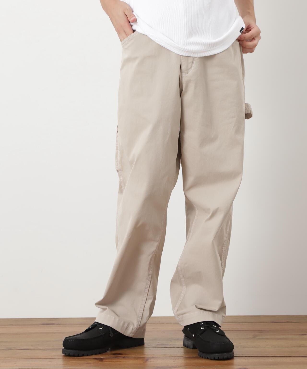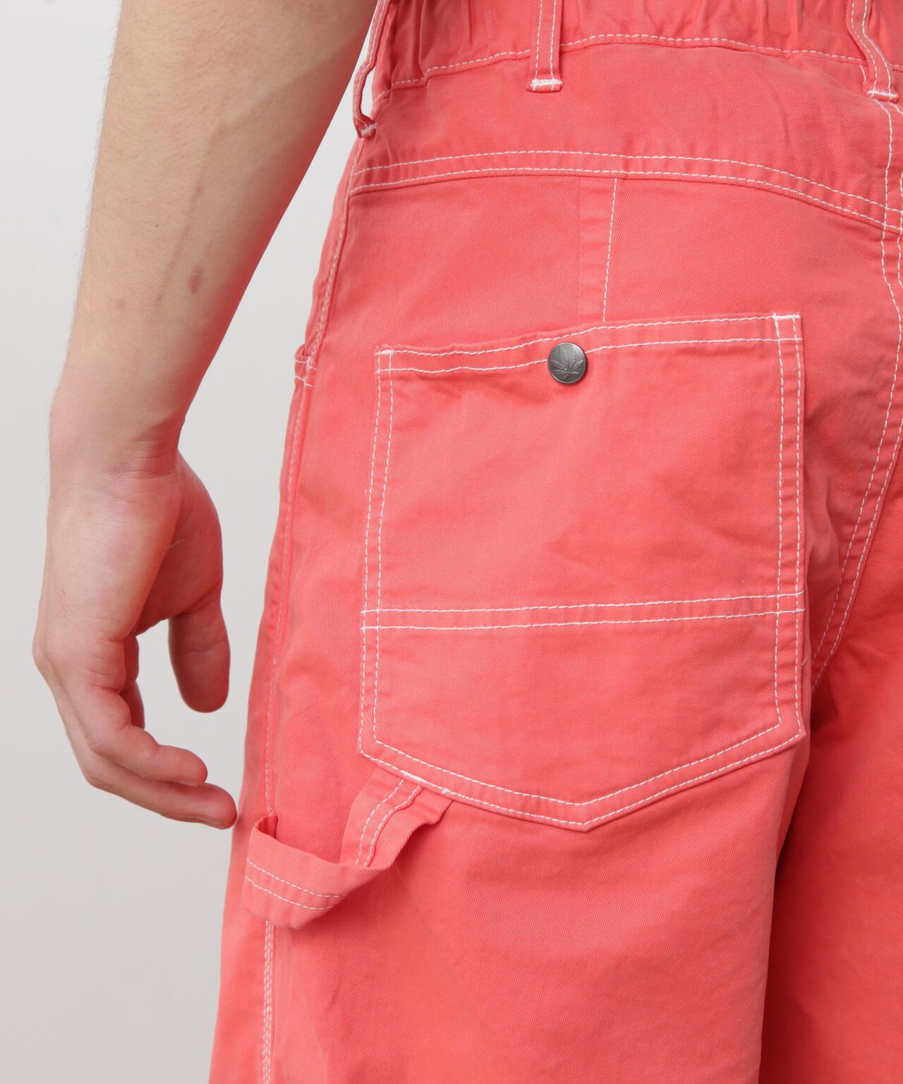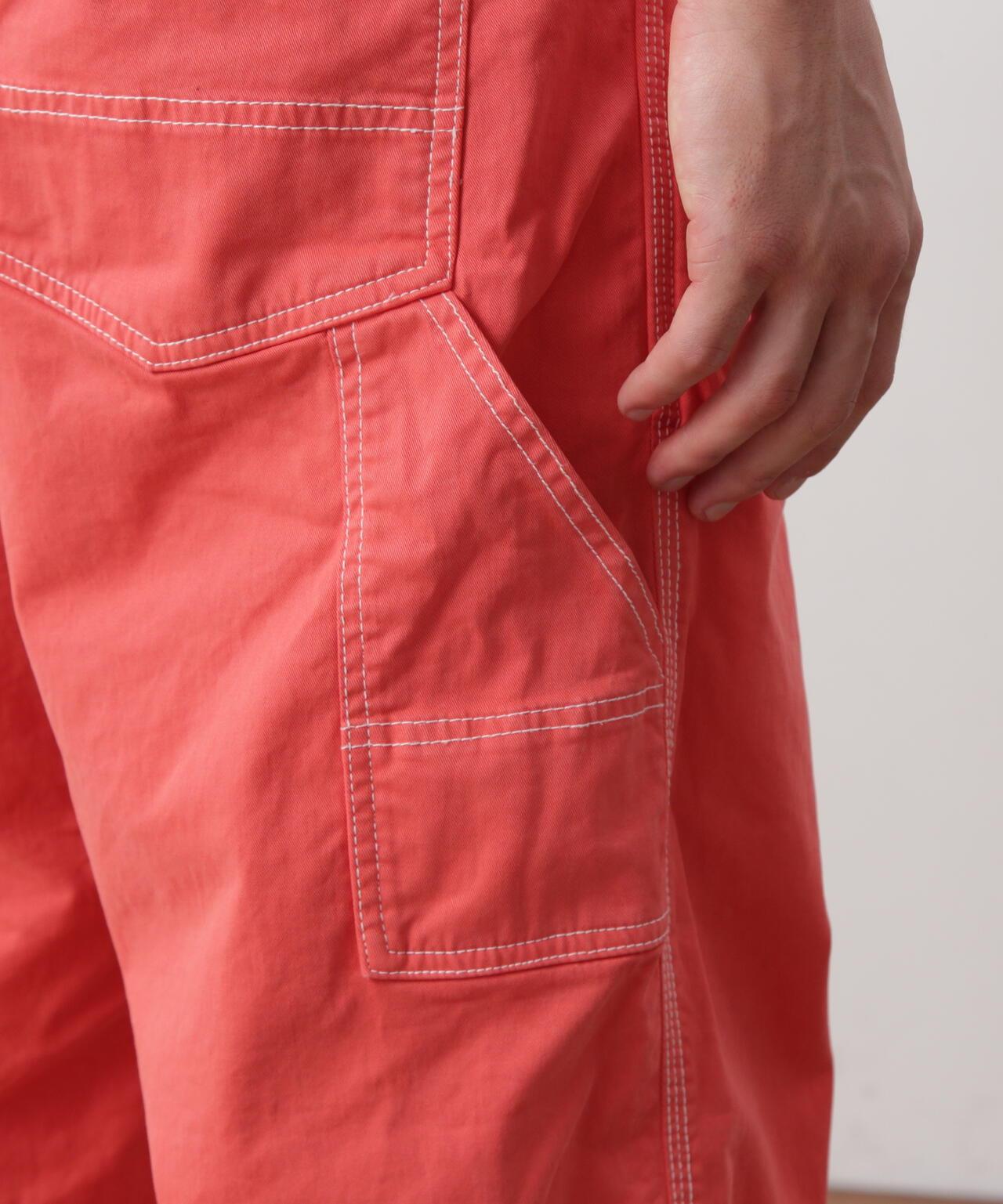 MANASTASH / WASHED COLOUR PAINTER PANTS / 棉中混入聚氨酯的彈力棉斜紋布,具有適度的肉感和柔軟的反彈力。寬鬆的剪裁,膝蓋和下襬寬鬆。原創麻質花紋按扣,右側有鱗片口袋,左側有錘子口袋。