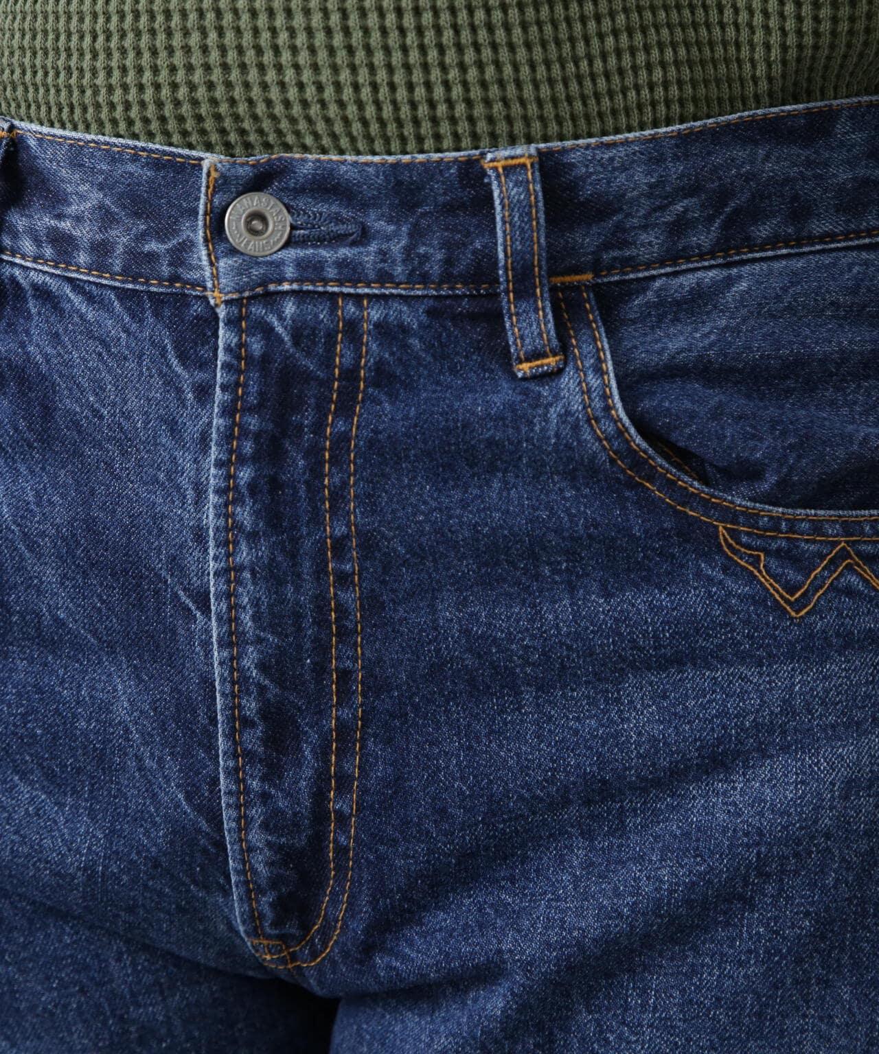 MANASTASH / MANASTASH / MS DENIM TAPARED PANTS / Denim tapered trousers材質・日本製造,12.75盎司牛仔布。特點:黑色和黑色使用經紗和緯紗都染成黑色硫化物的黑色牛仔布。緯線比黑色牛仔布的白線更深。Indigo and Used 使用純靛藍染色紗線做經紗,白色紗線做緯紗。緯紗為白色。錐形輪廓符合現代潮流,腰部留有適當的空間。捲起時,象徵 MANASTASH DENIM 的 "綠耳朵 "會成為一個亮點。臀部口袋裝有馬