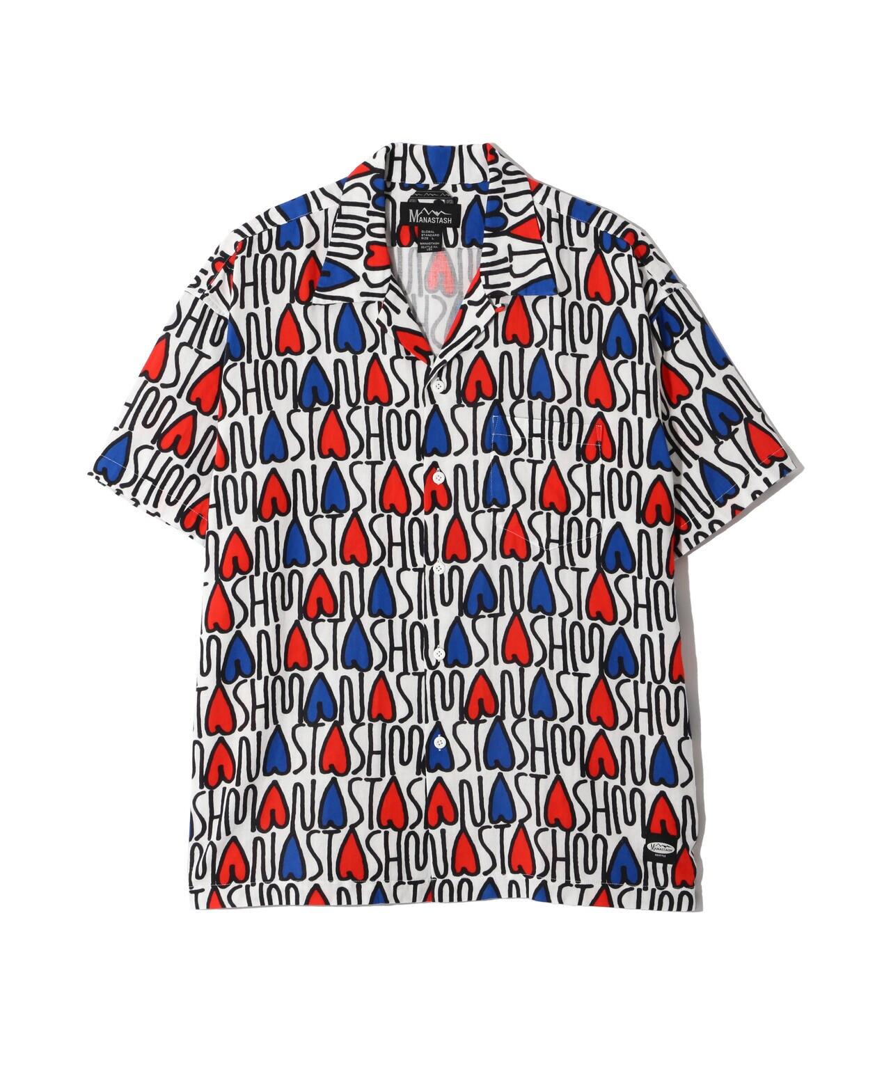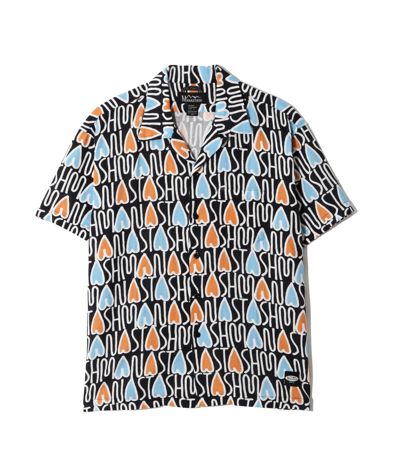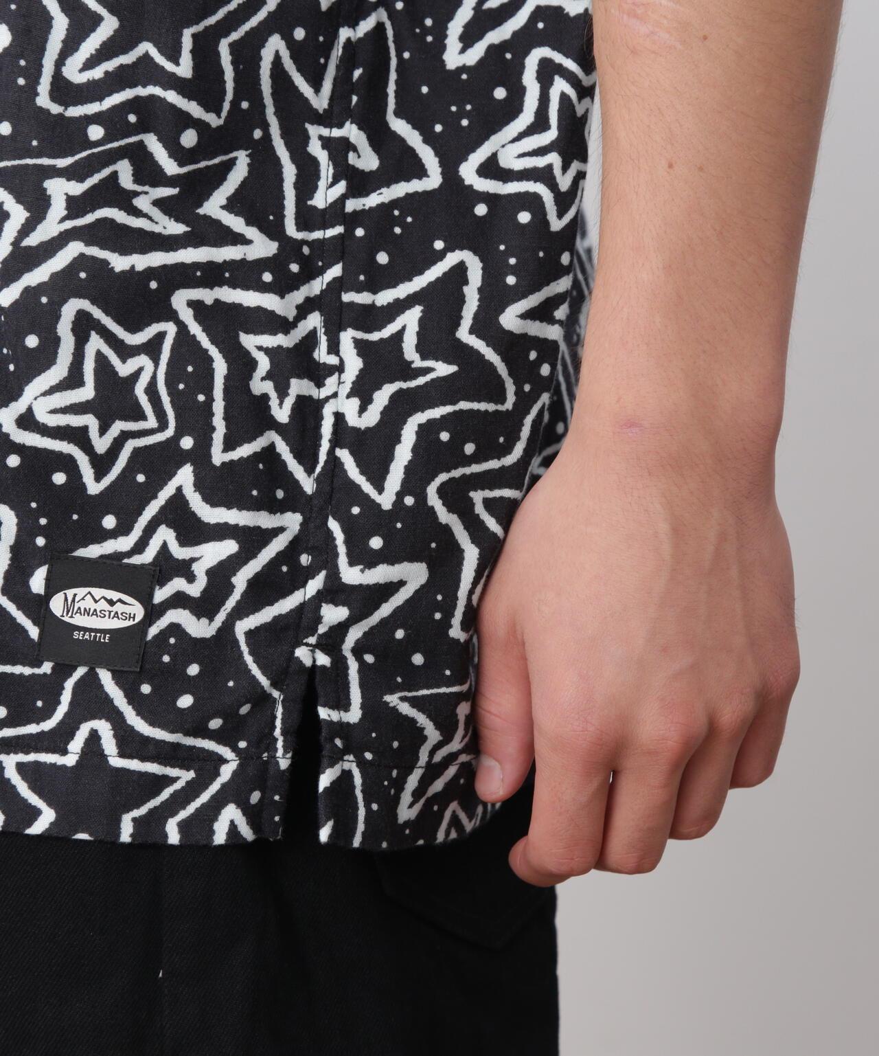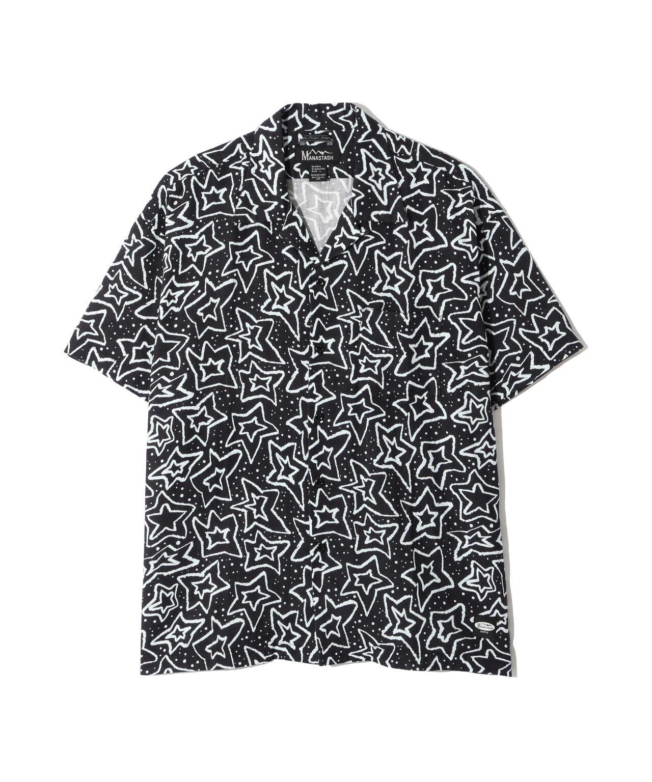 MANASTASH / MANASTASH / GAUZE MANALOHA SHIRT / Gauze Manaloha Shirt / 採用 100% 全棉雙層紗布面料製成。設計為基本款短袖開領襯衫,印有星星圖案和波普藝術風格的 MANASTASH 字樣。NAOKI/ Naoki""SAND""Yamamoto]MANASTASH/MANASTASH <MANASTASH>於 1993 年在美國西雅圖創立。品牌名稱源自北美大陸西海岸自北向南延伸的喀斯喀特山脈。