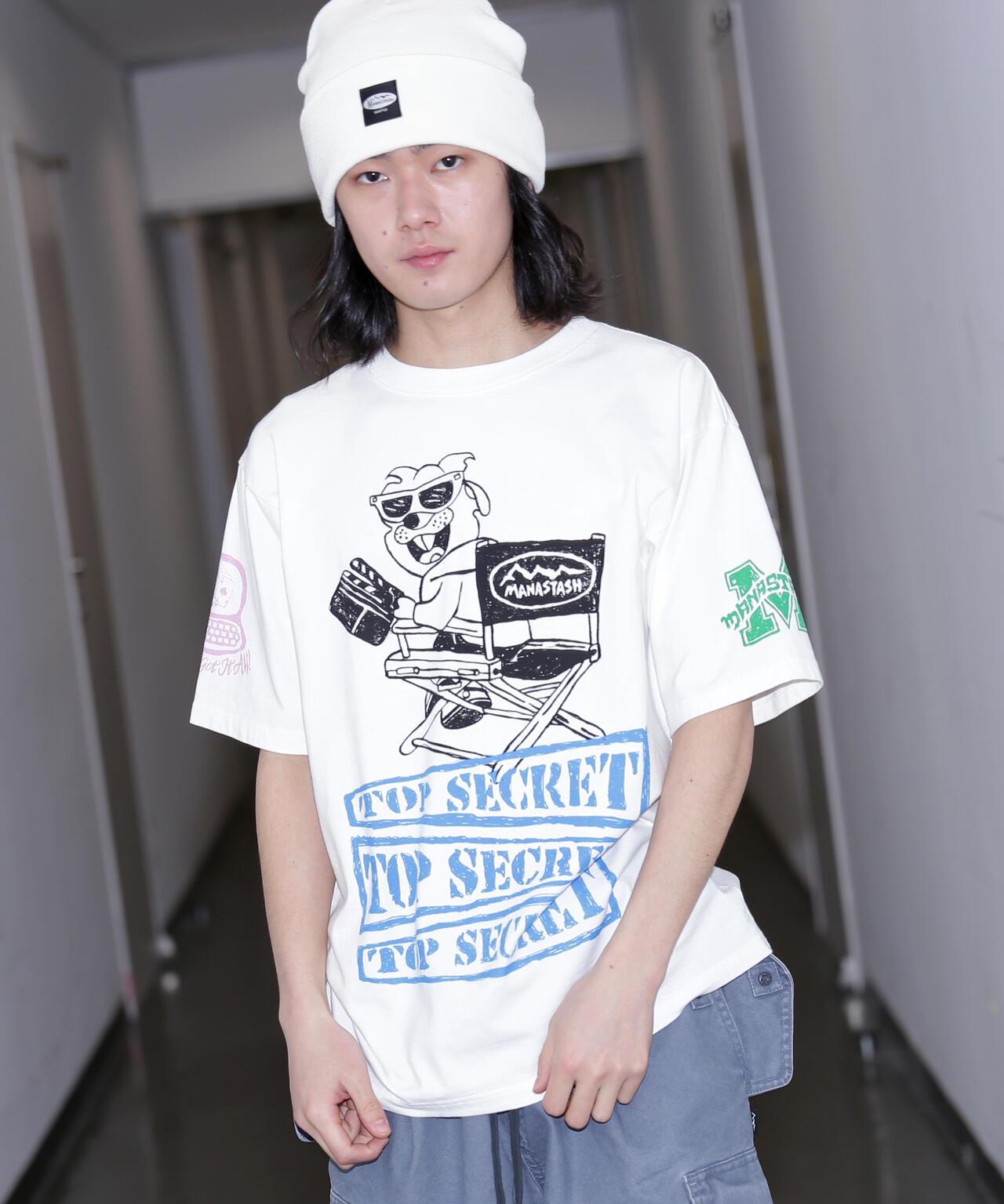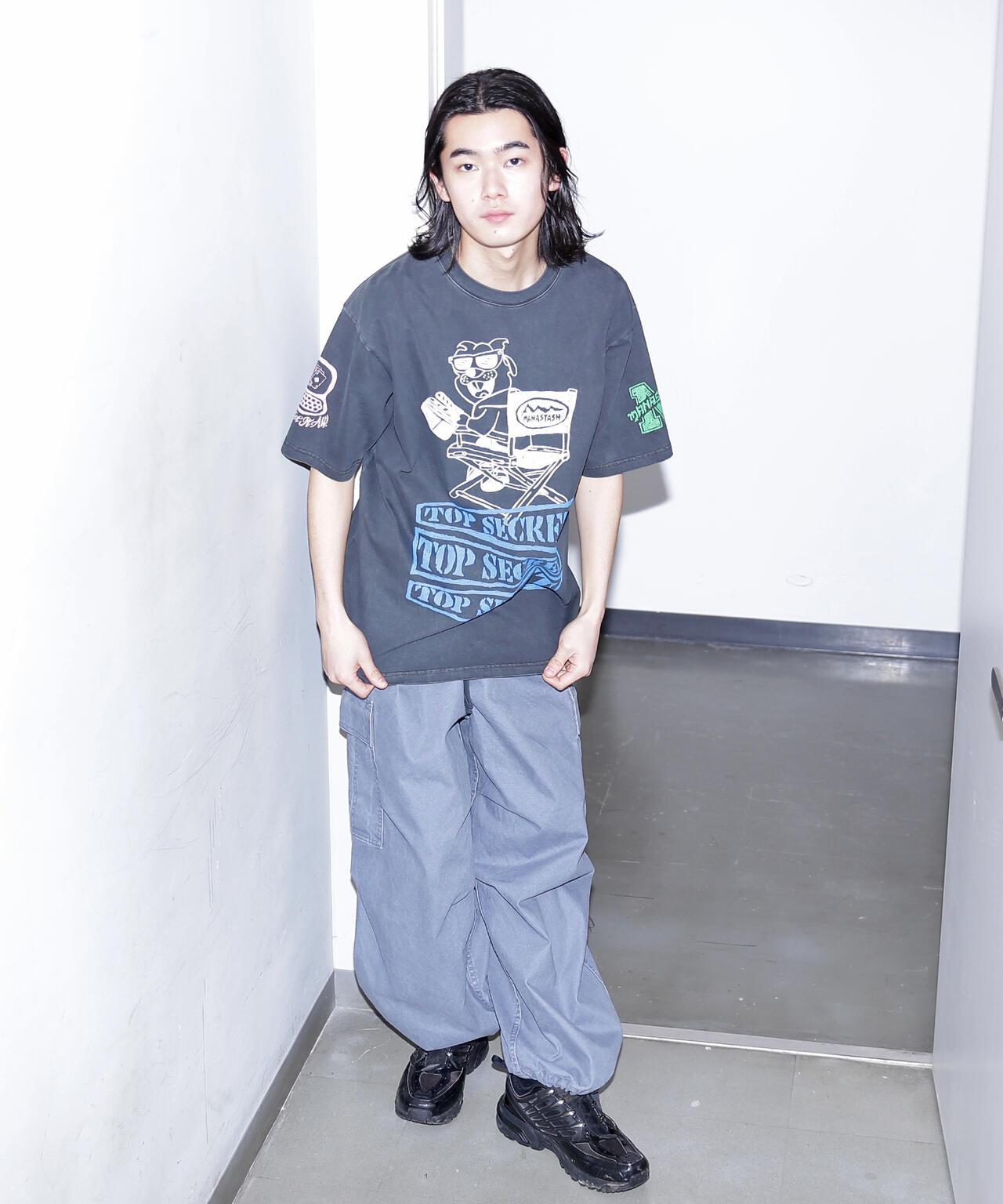 MANASTASH/PUMICE TEE MIXED UP - 重磅純棉 T 恤,採用顏料染色、二手加工和幹觸表面處理,給人一種復古的外觀和感覺。這款奢華的 T 恤四面印有印花,讓人聯想到 80 年代和 90 年代初滑板品牌、樂隊和 T 恤製造商的測試印花。圖案 = [DOKKOI] MANASTASH <MANASTASH>於 1993 年在美國西雅圖成立。馬納斯塔什山高原從卡斯卡特山脈沿北美西海岸由北向南延伸下來,是滑雪、徒步旅行和山地自行車運動的勝地。