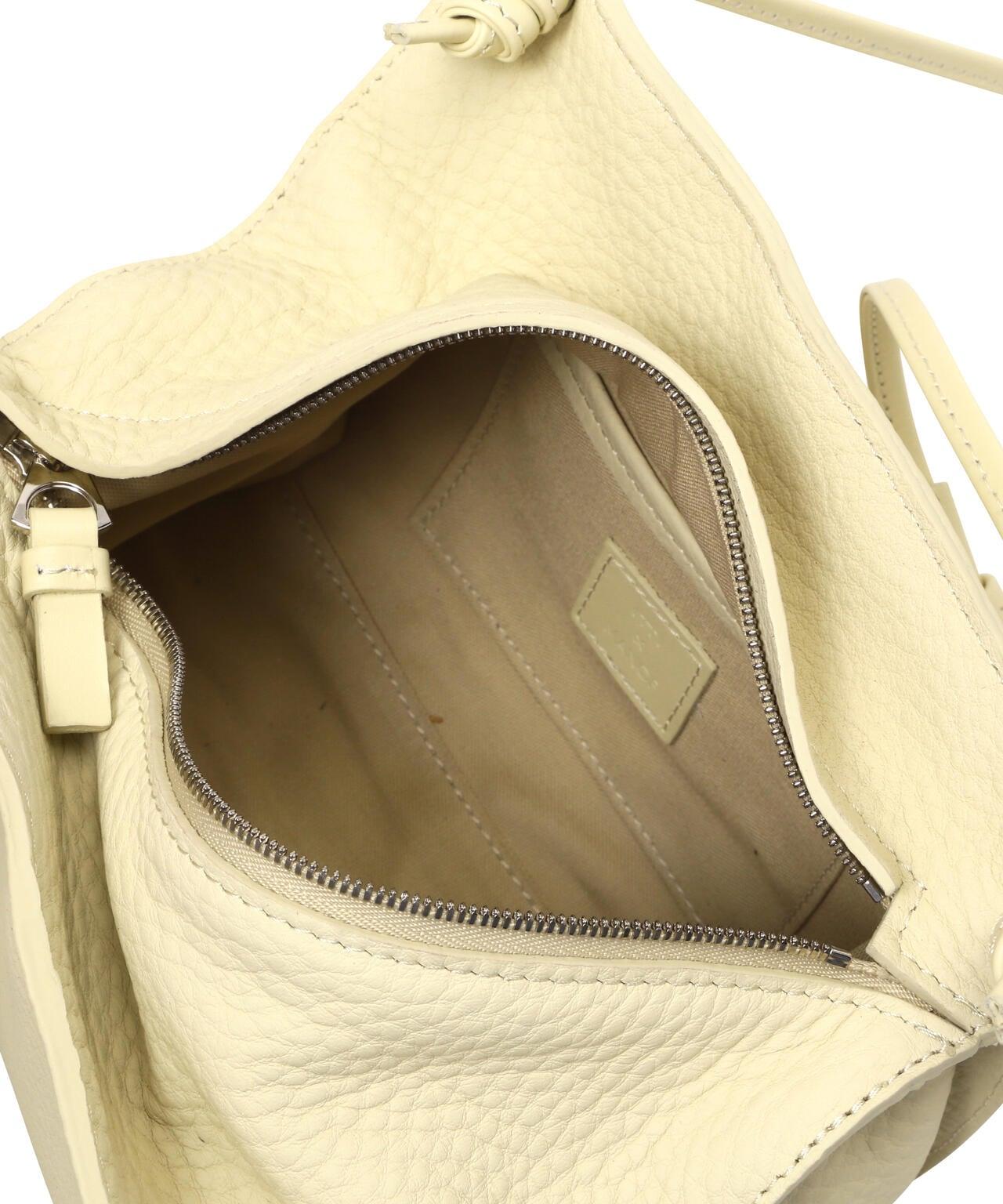 它採用拉鍊開合,設計大膽,配有一條可調節的皮革肩帶,通過一個鴿子孔進行繫帶和固定。