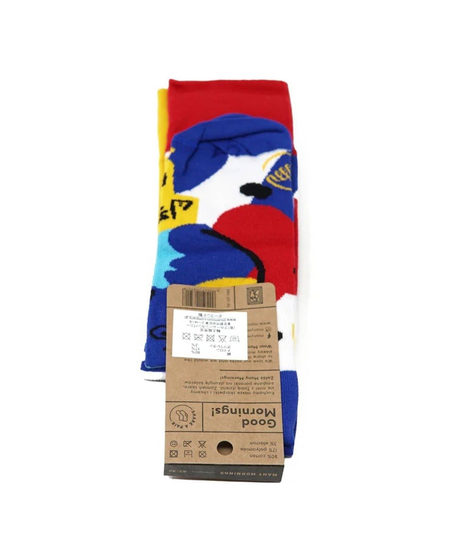 白色、藍色、橙色和紅色的畢加索圖案。立體派圖案襪子