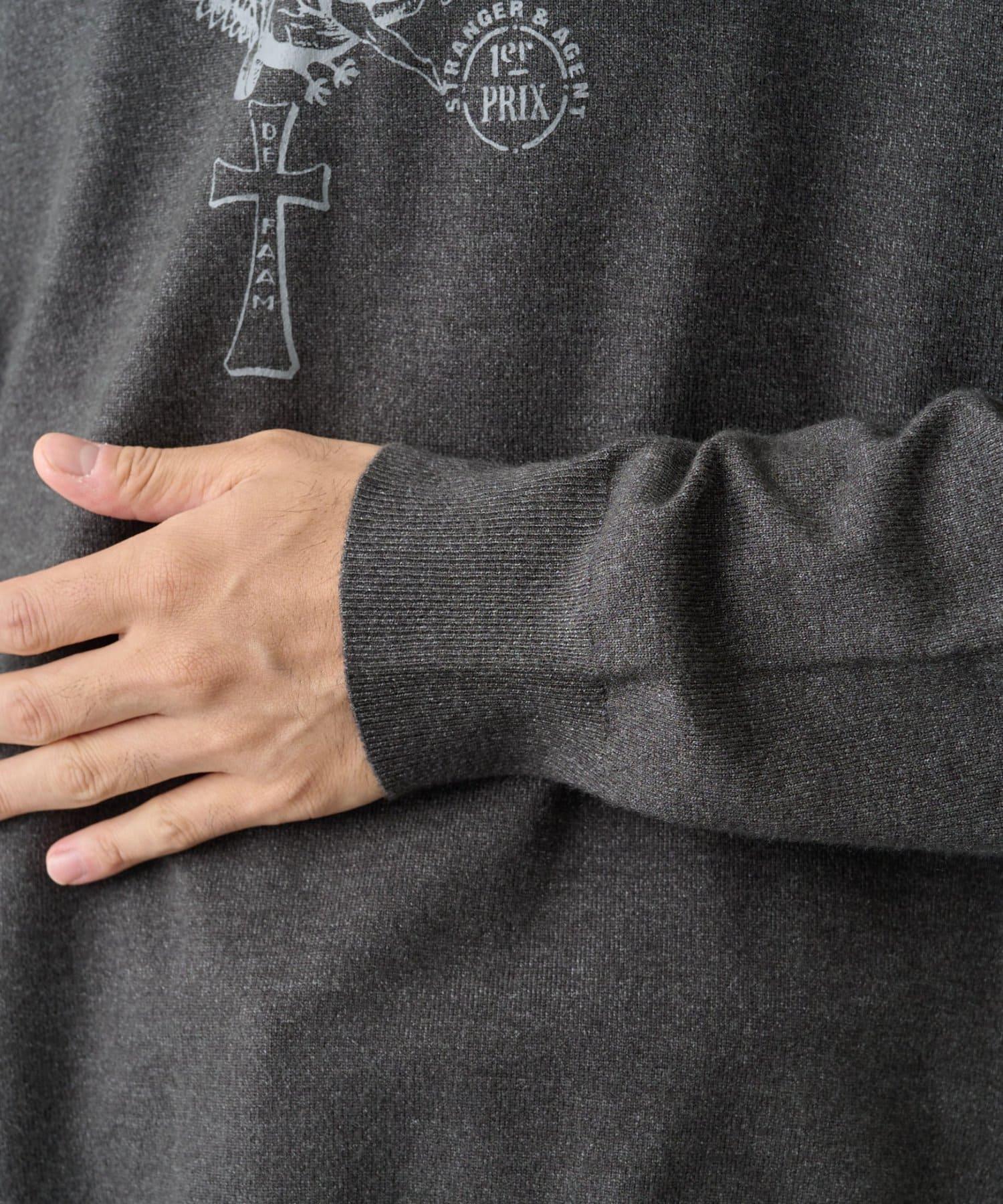 這是一款印花針織衫,正面的徽標設計令人印象深刻。