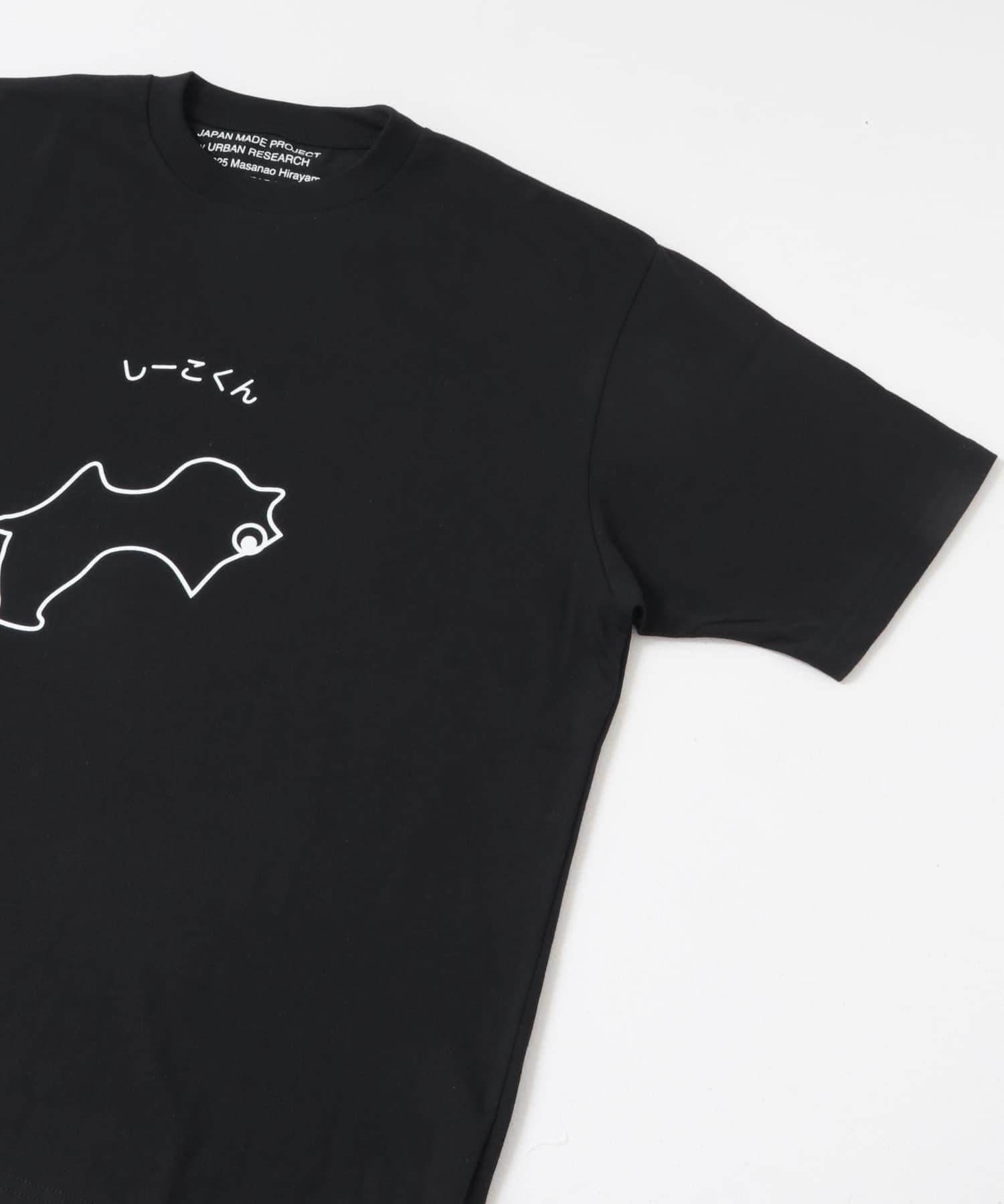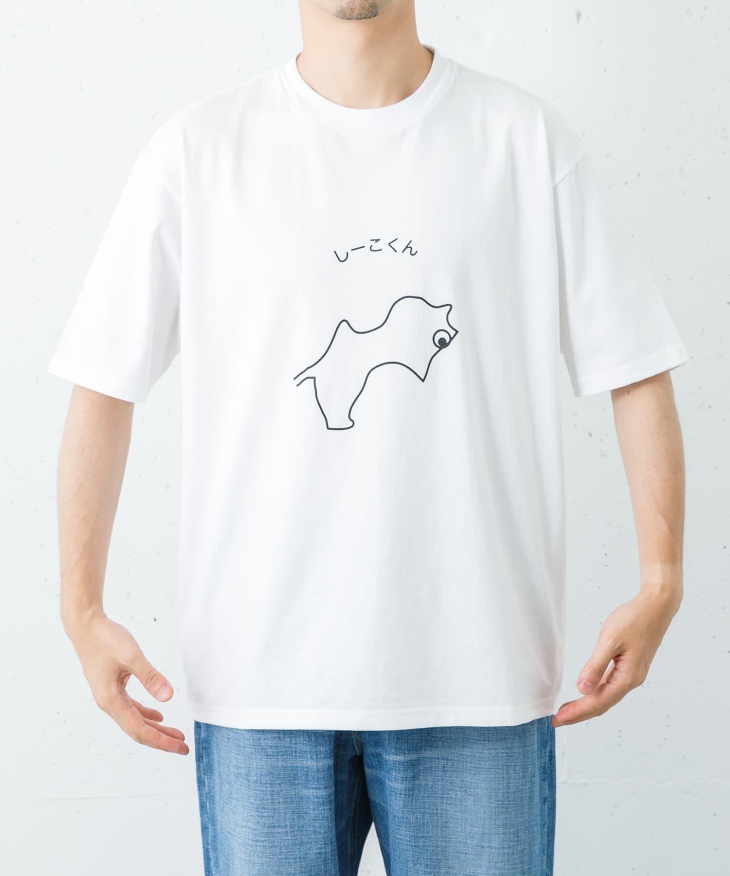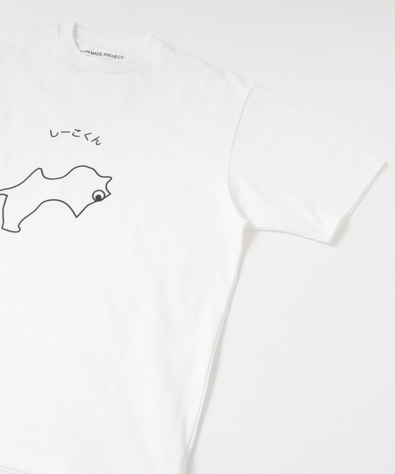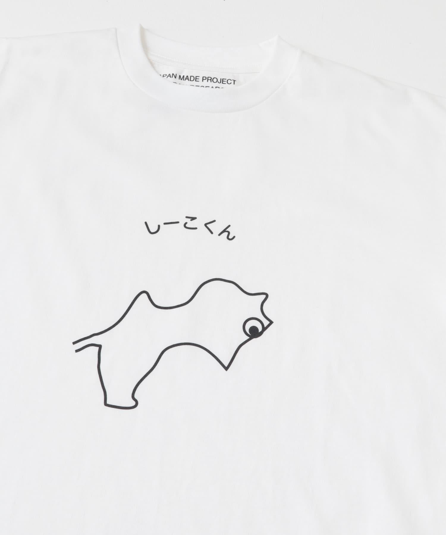 平山作品中經常出現的插圖雖然簡單,但卻能抓住觀者的想象力。這件 T 恤上的 "Shikokun "在極簡的線條中也蘊含著幽默,讓人不禁莞爾一笑,其魅力非一言兩語所能形容。
