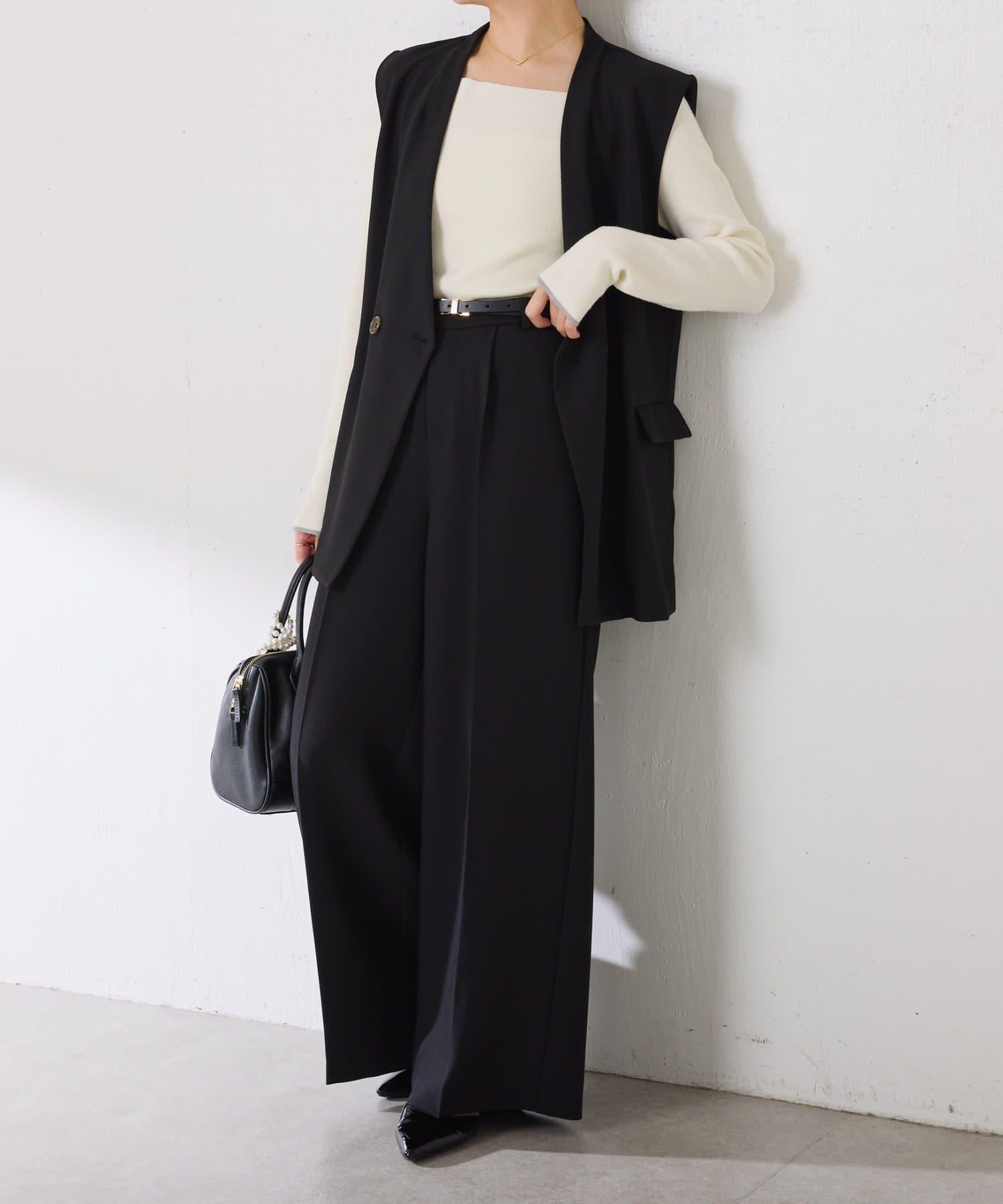 無領設計,可整齊穿著的外套和寬褲套裝。