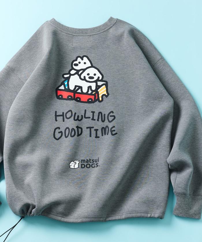 插畫家 matsui 與 FREAK'S STORE 合作推出的新款特別訂製圓領運動衫,以旅行箱中的狗狗為主題。