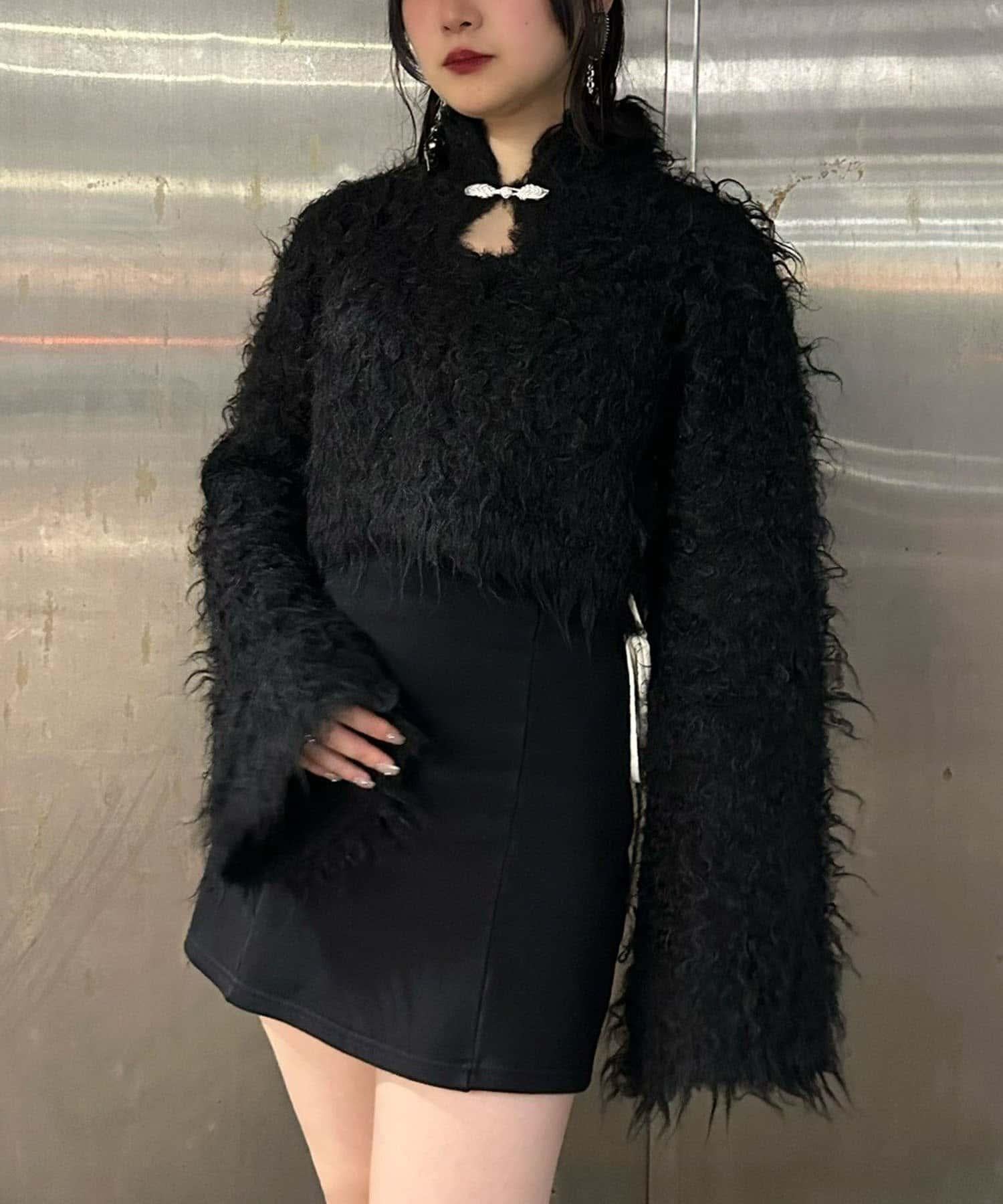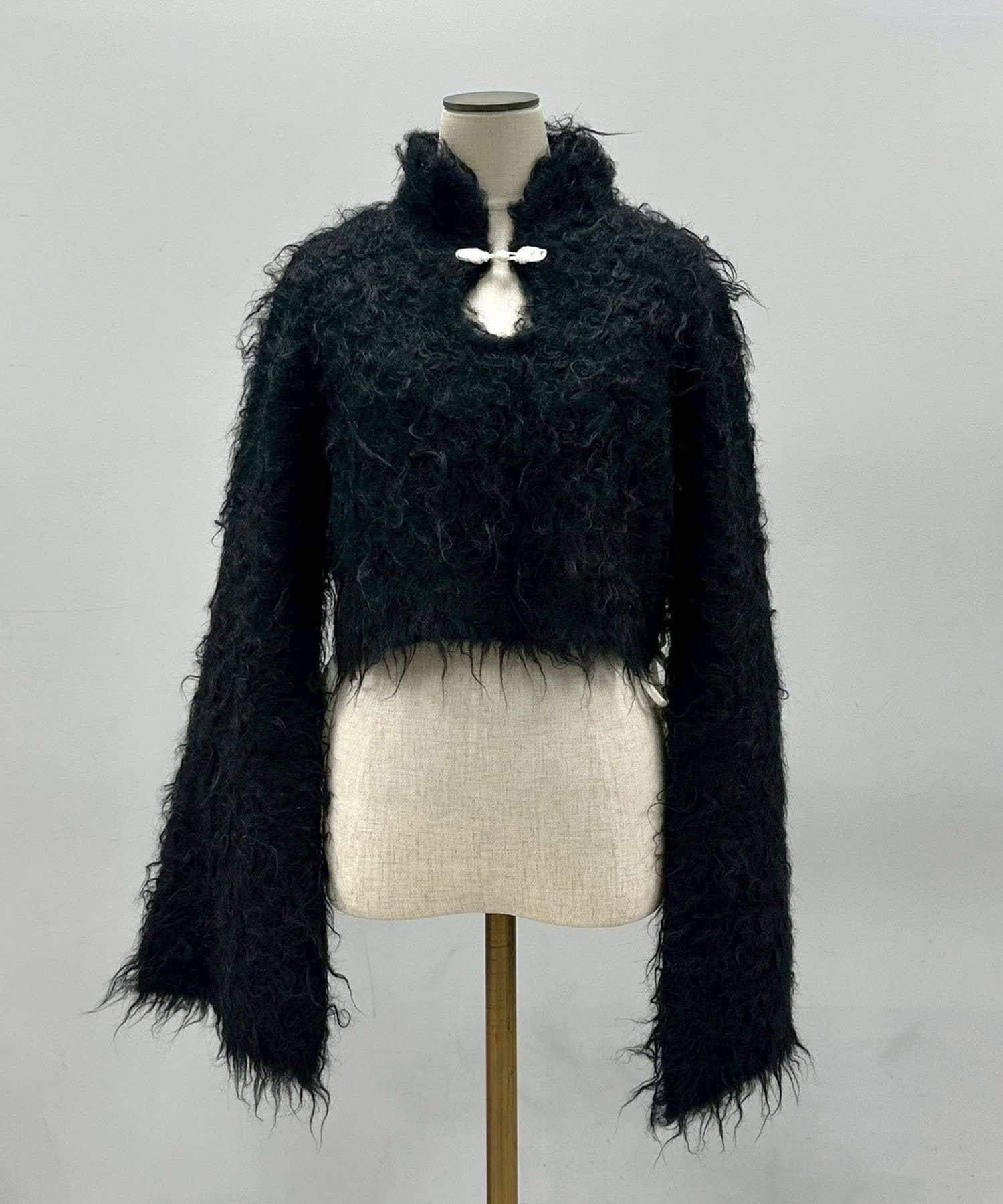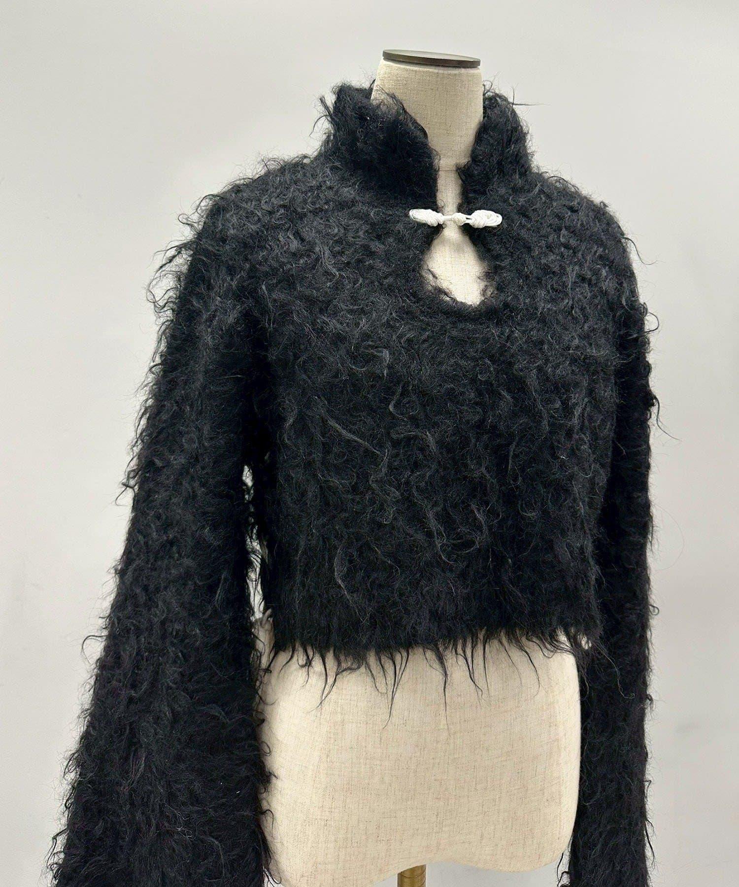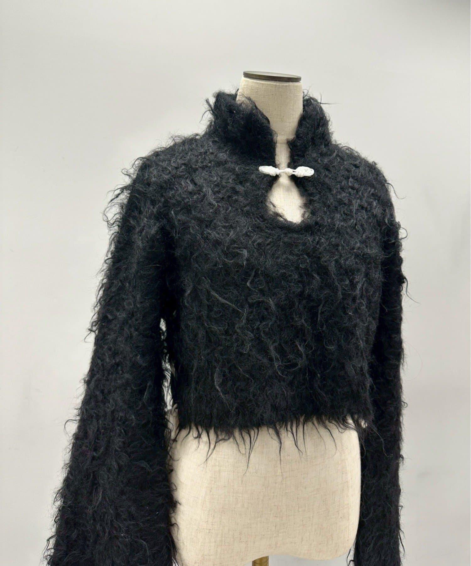毛茸茸的中式長款針織衫是一件👍的單品。