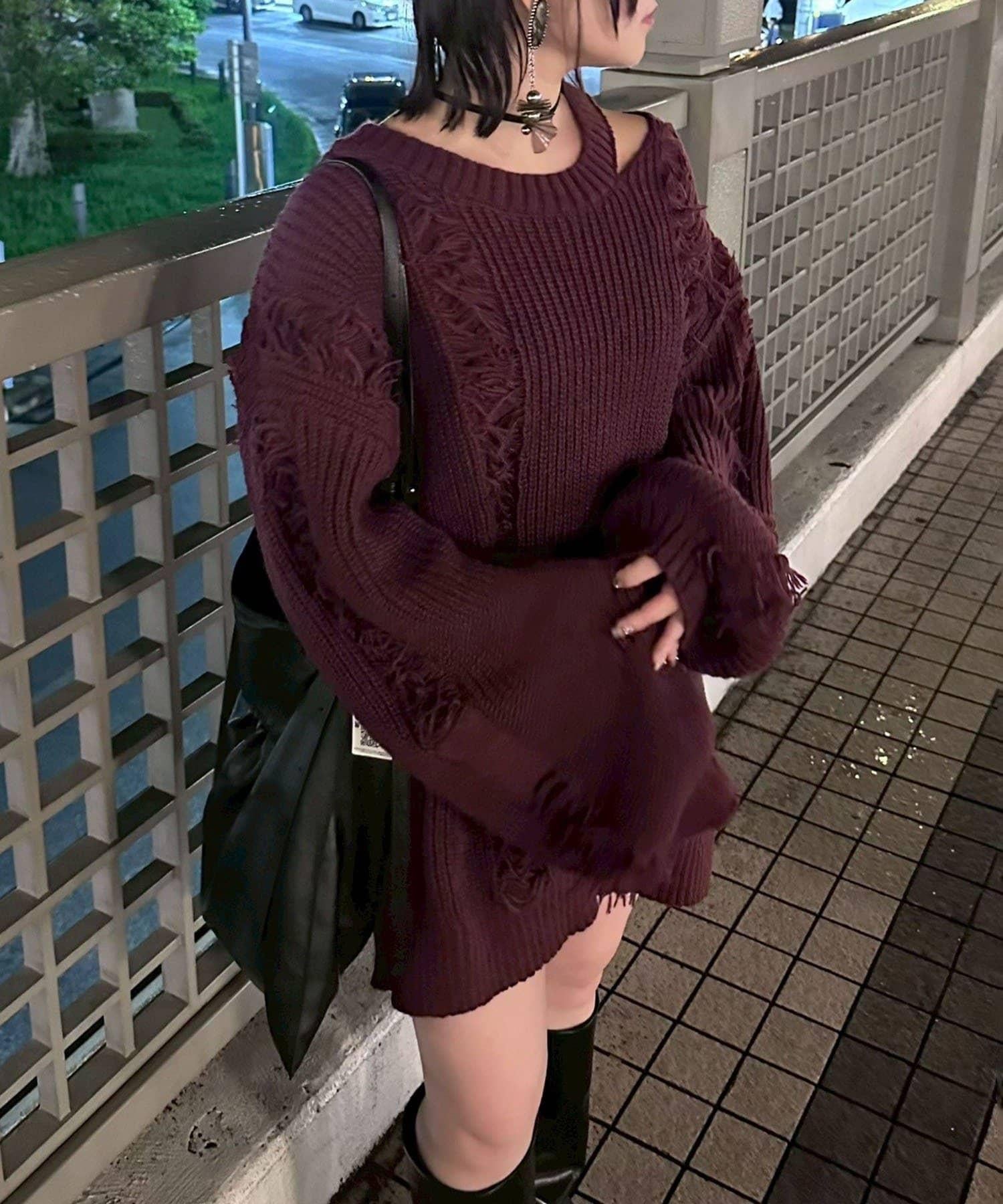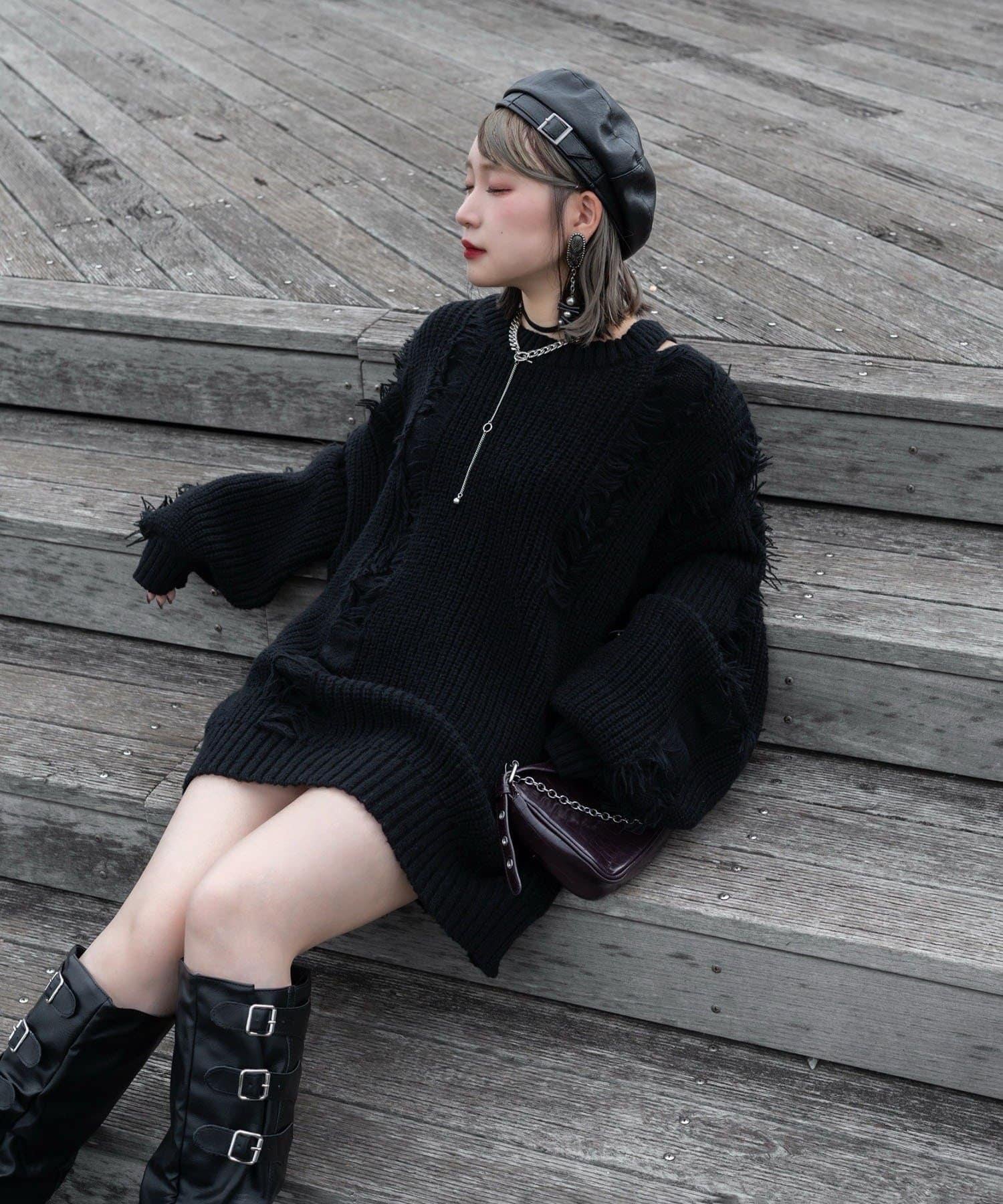 【Mavie..7】破洞流蘇寬鬆針織衫