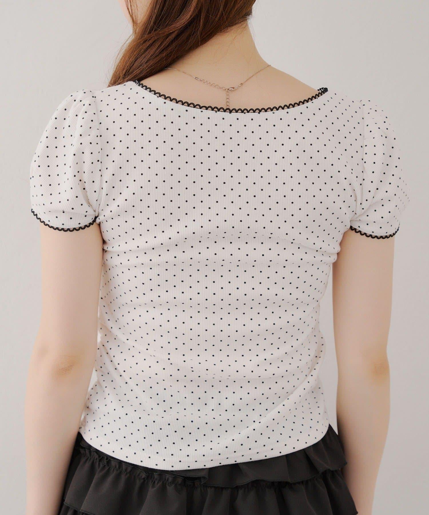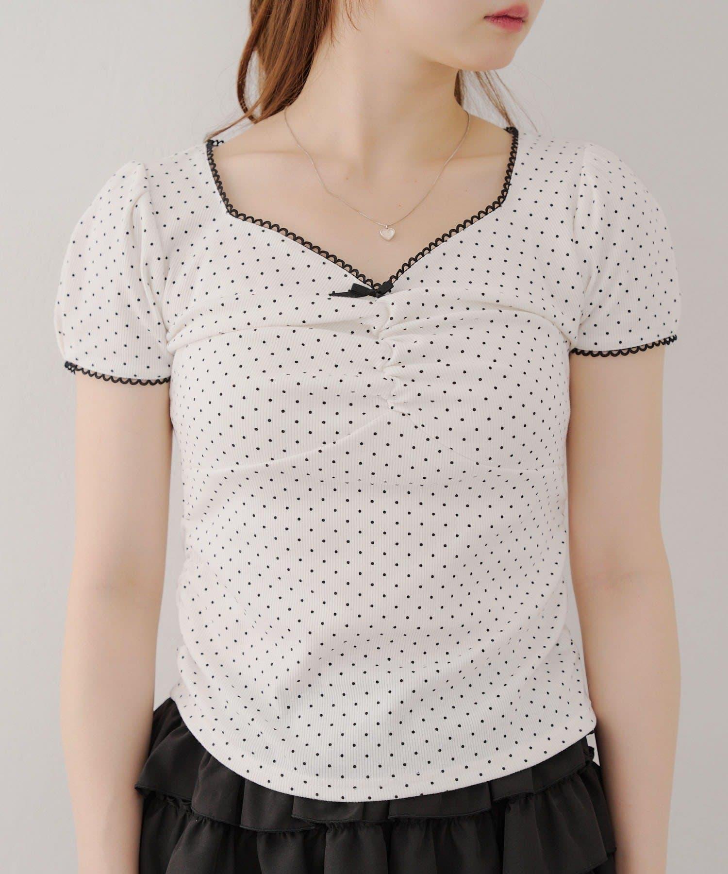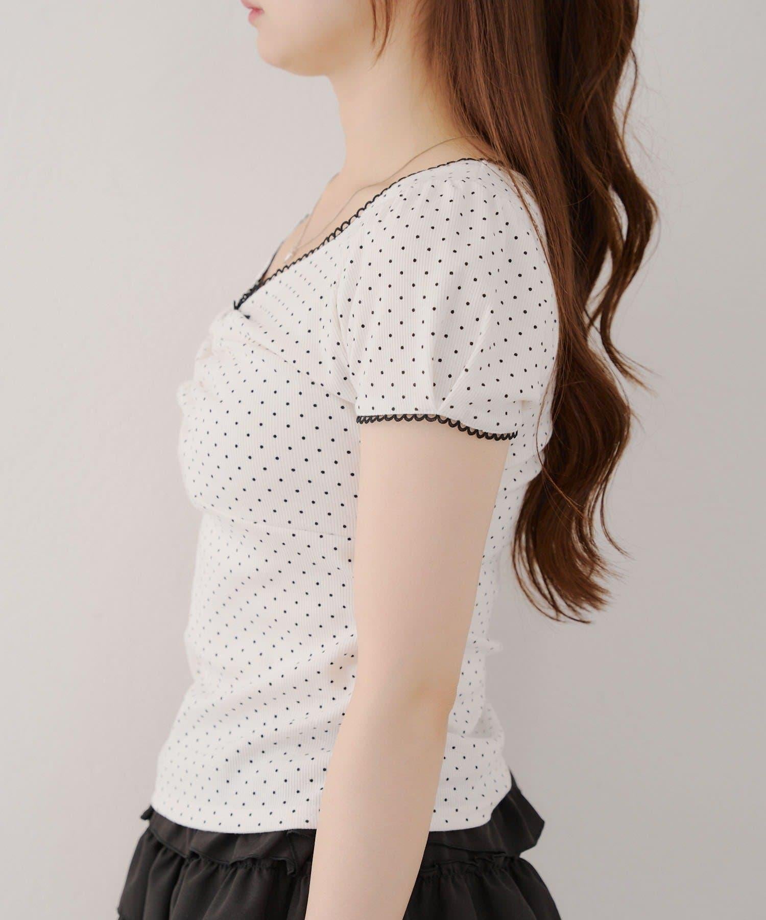 這款 T 恤胸前的蕾絲花邊彰顯女性魅力。