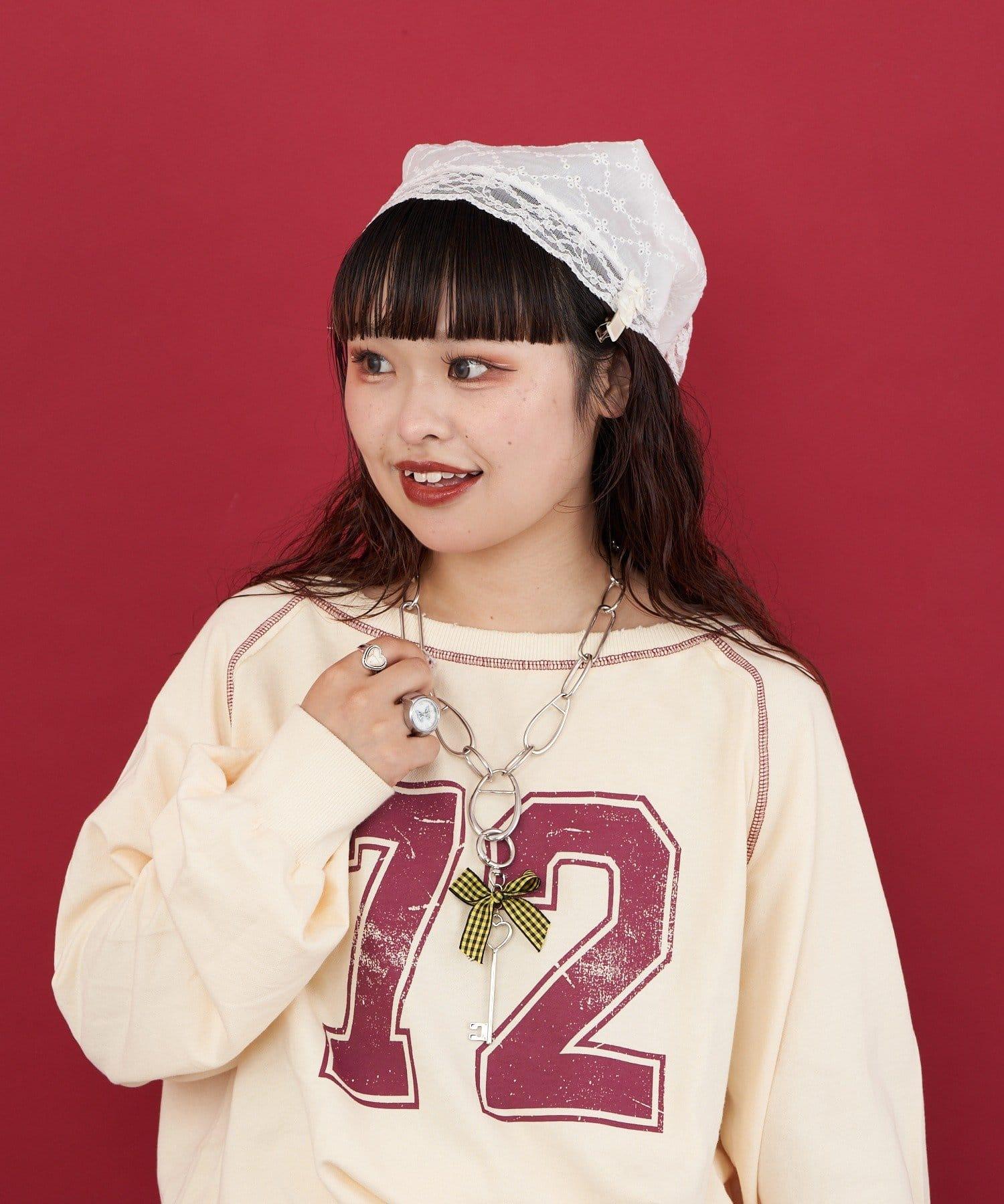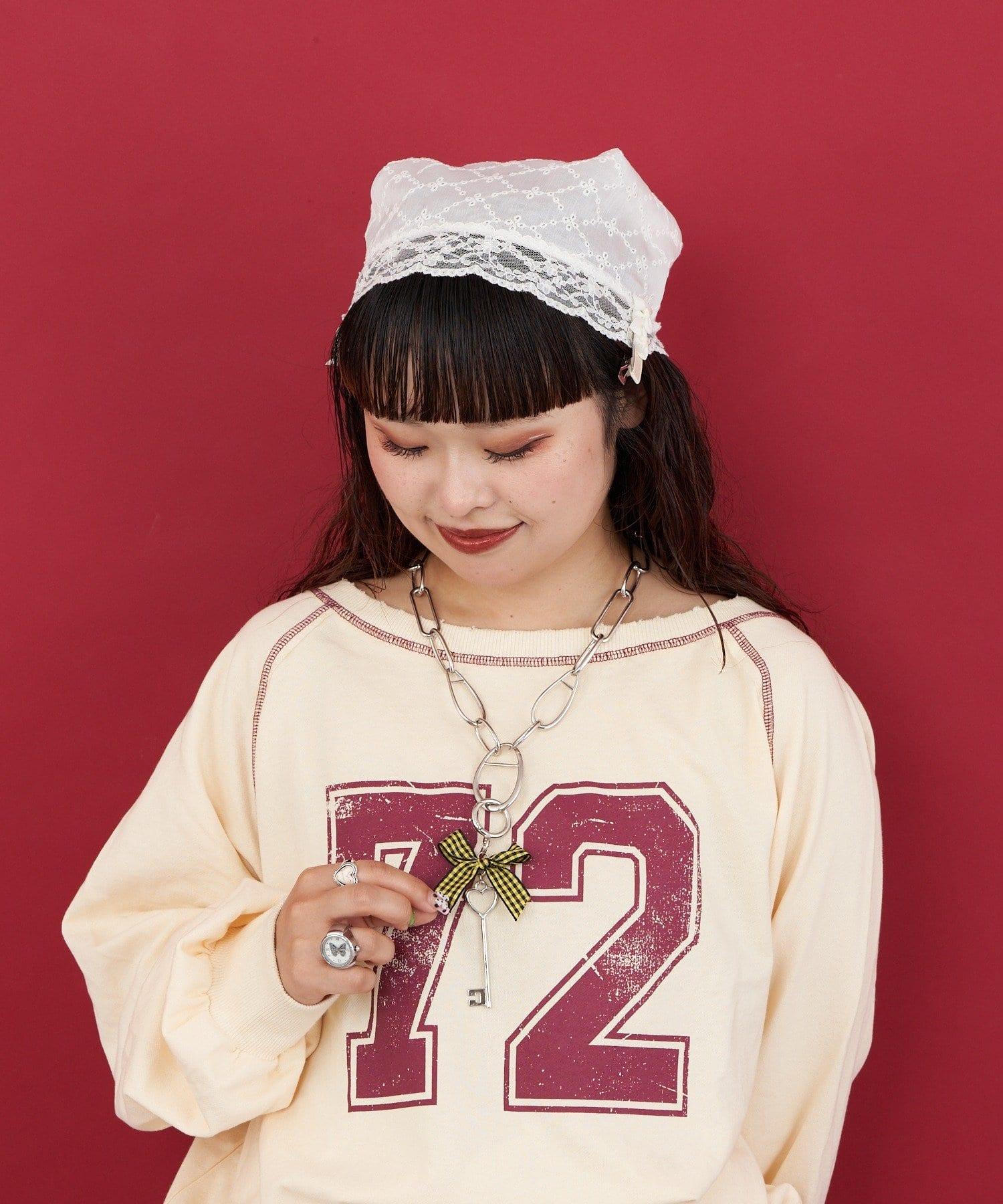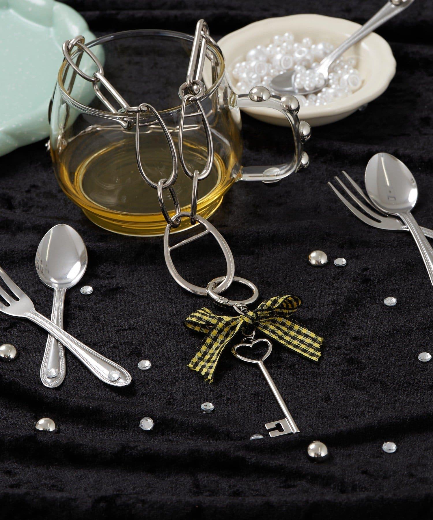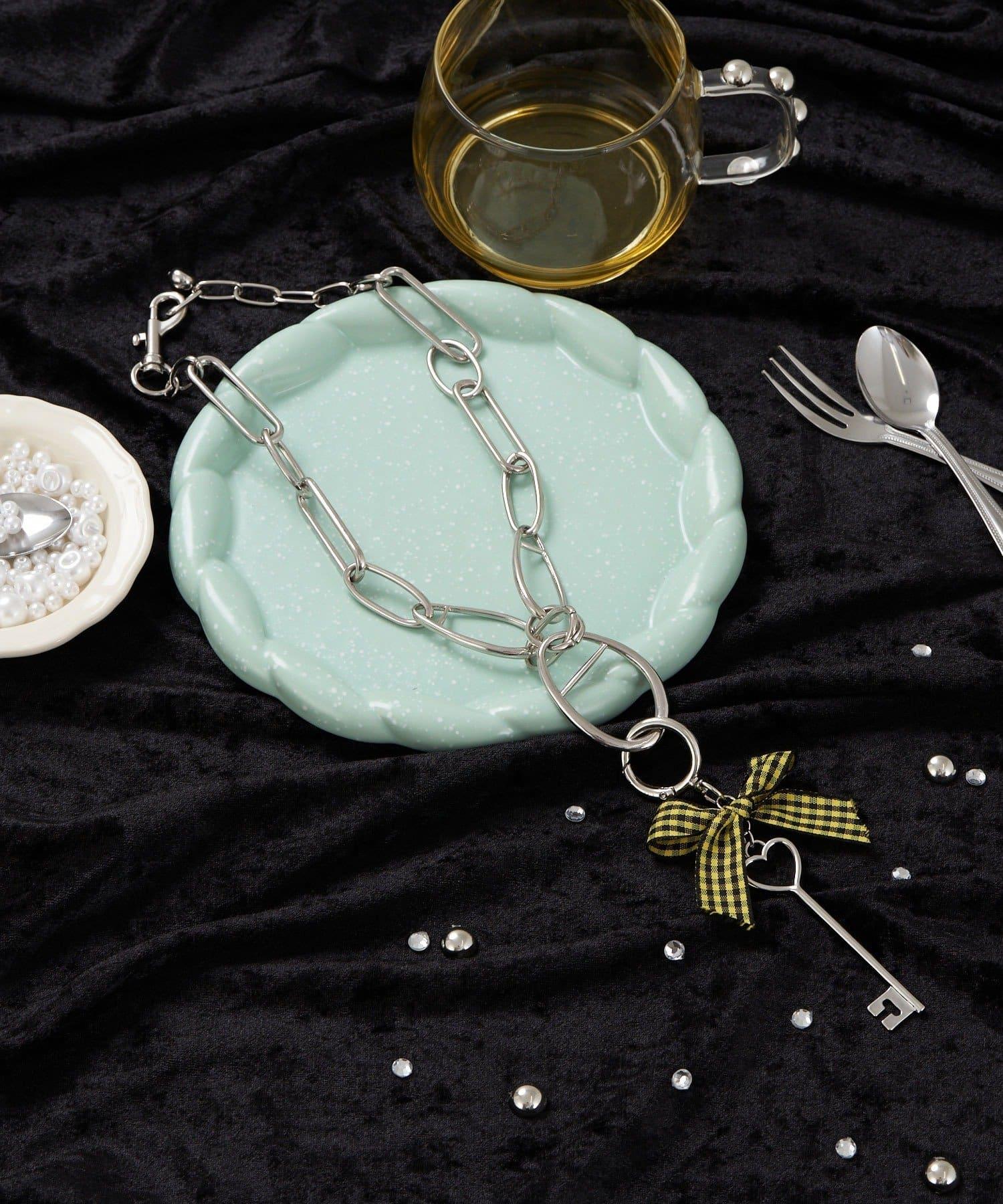 黃色格紋絲帶為心形圖案的古董鑰匙增添了少女氣息。