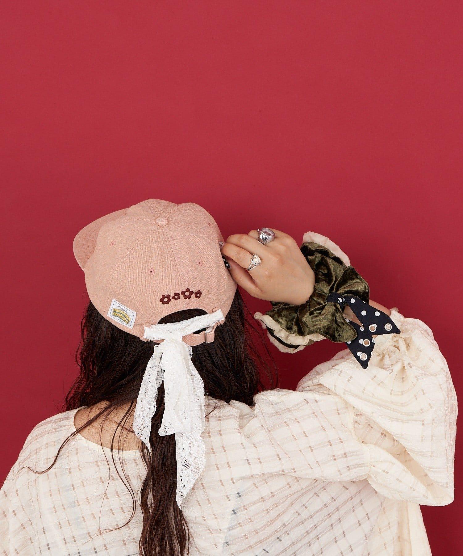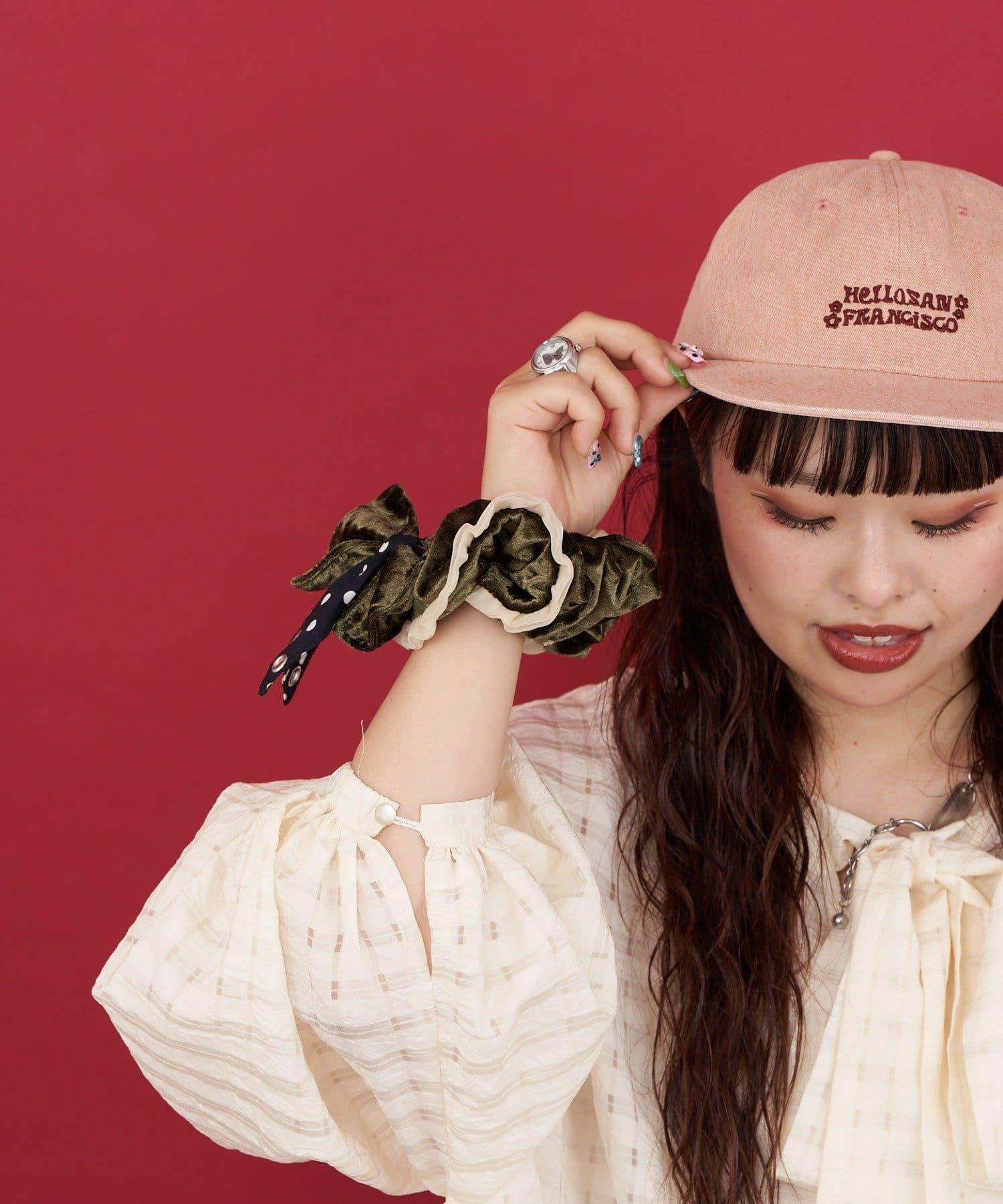 在柔軟的天鵝絨面料上搭配點狀圖案絲帶,設計感十足。