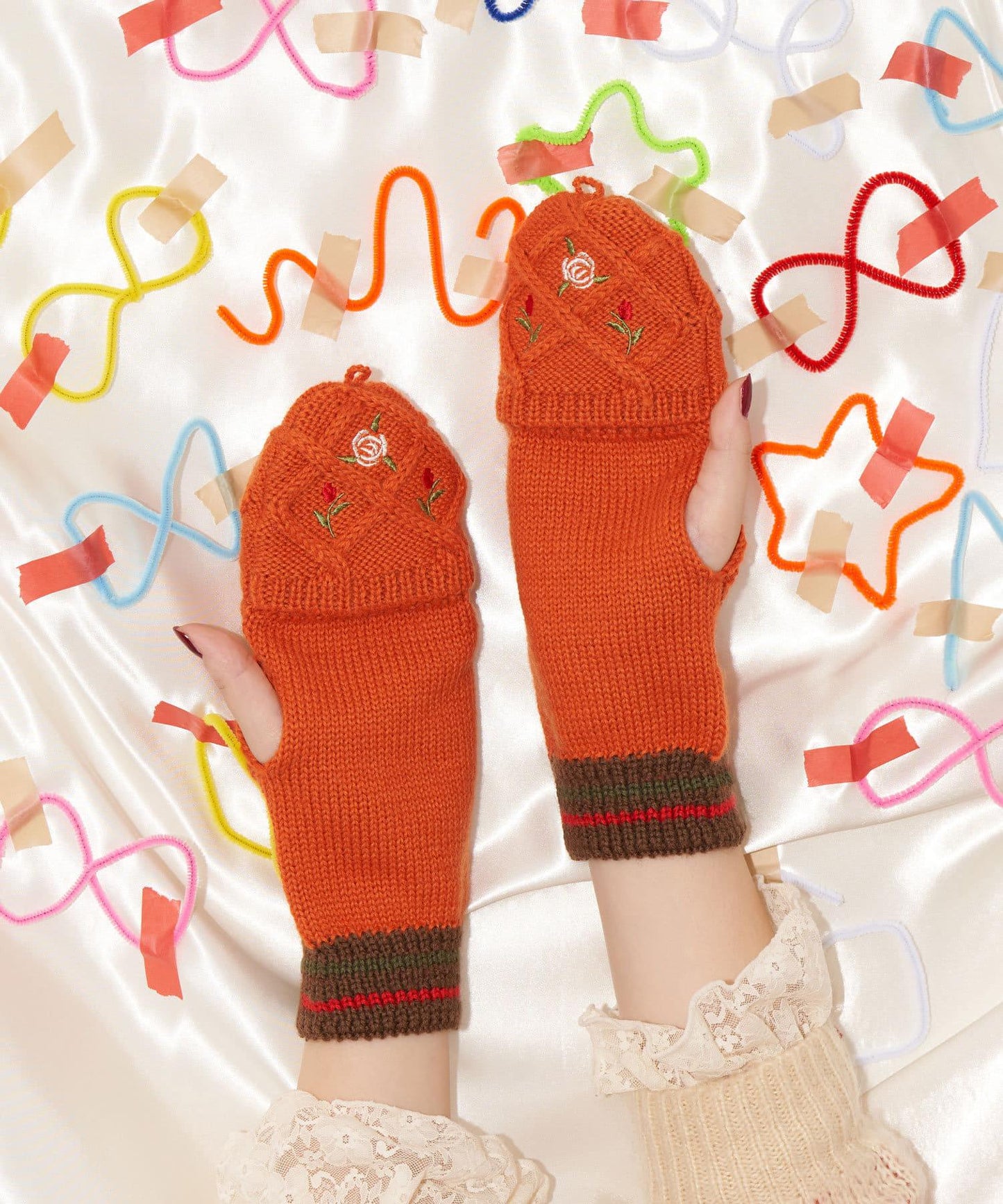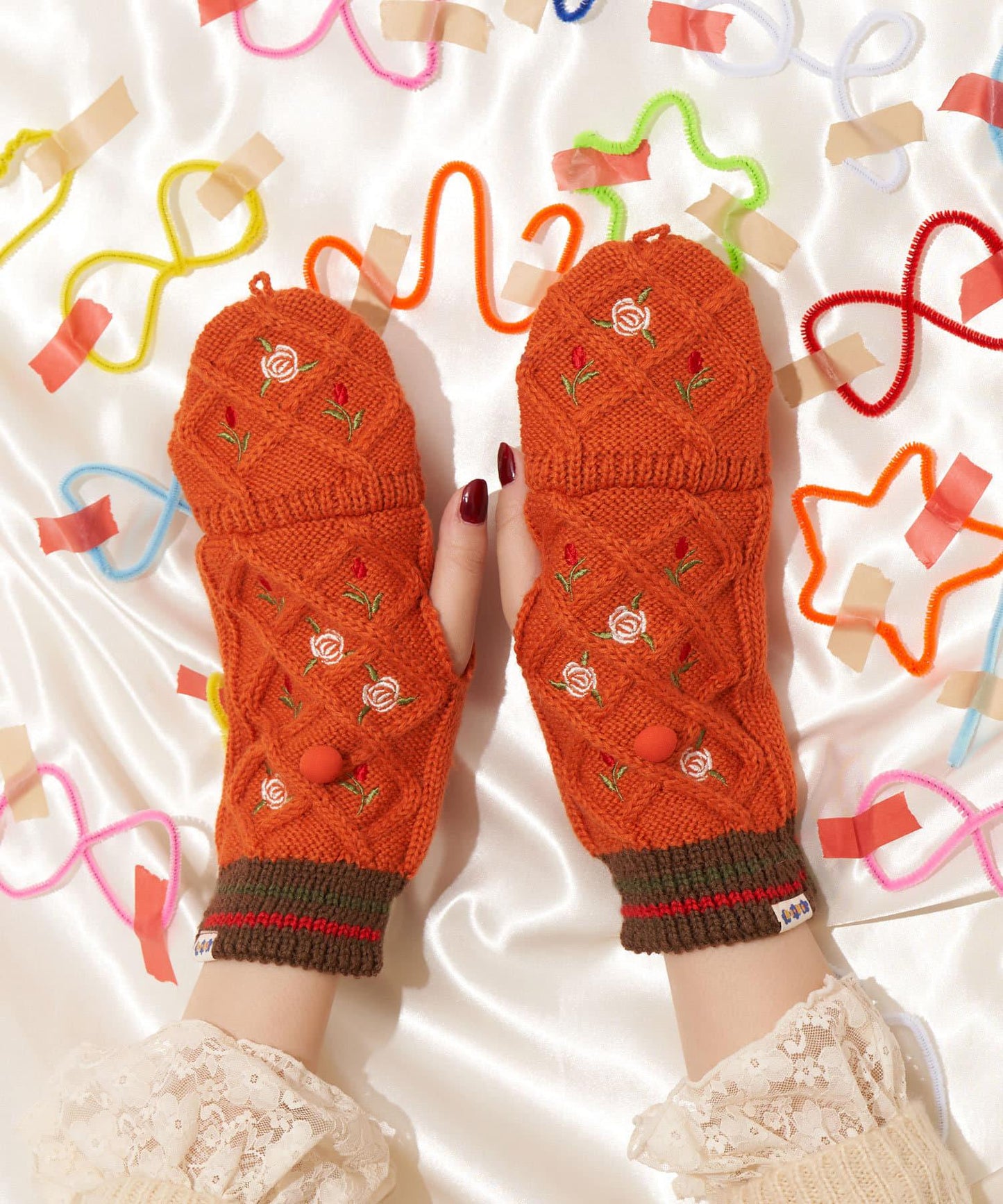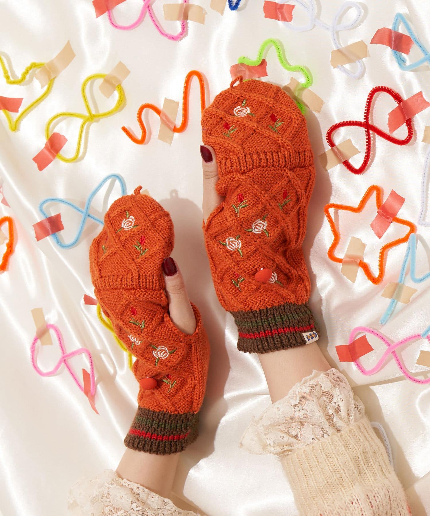 帶有花朵刺繡耳罩和配套圖案的連指手套!