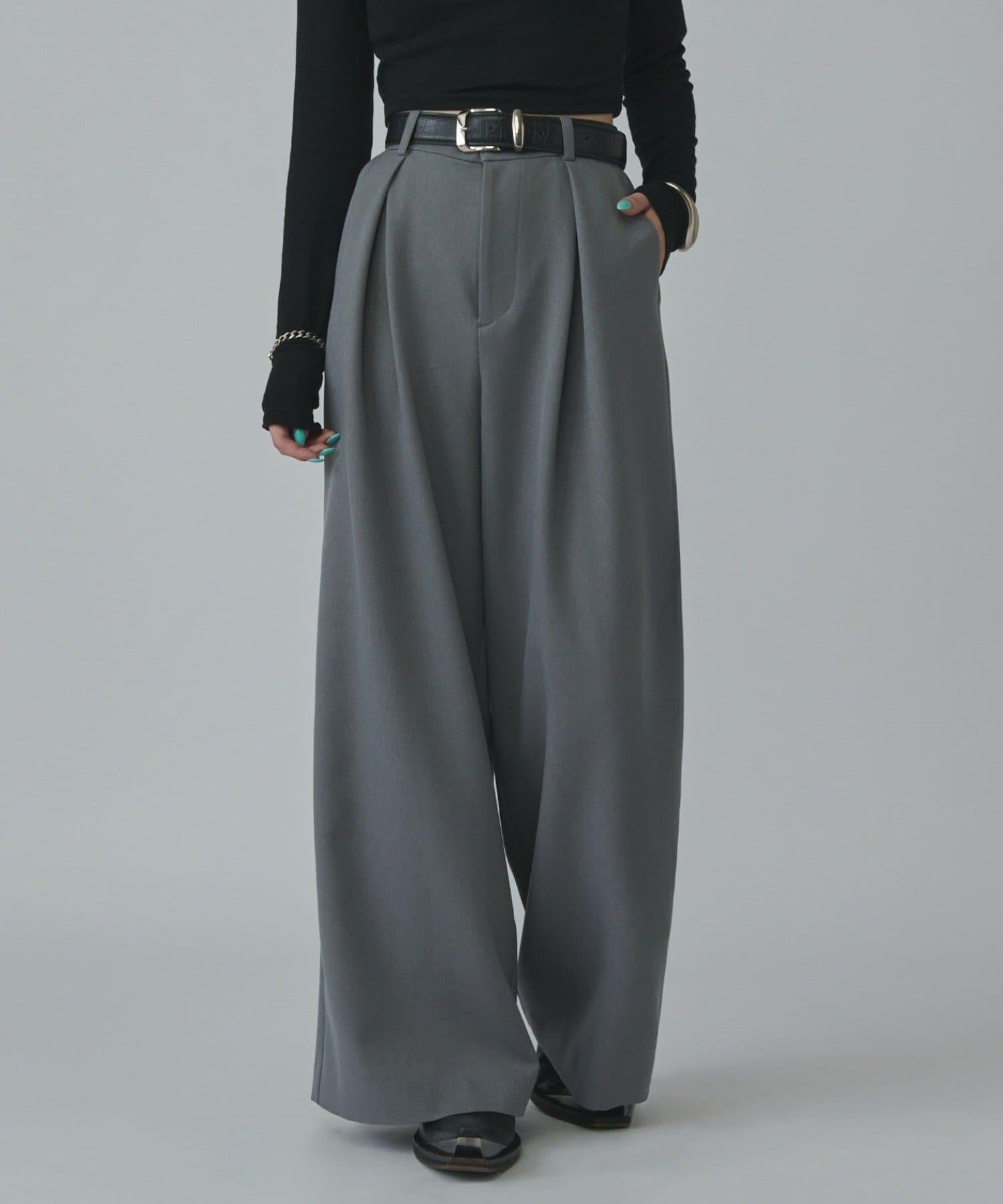 只要穿上就很時髦的褶襉寬褲。
