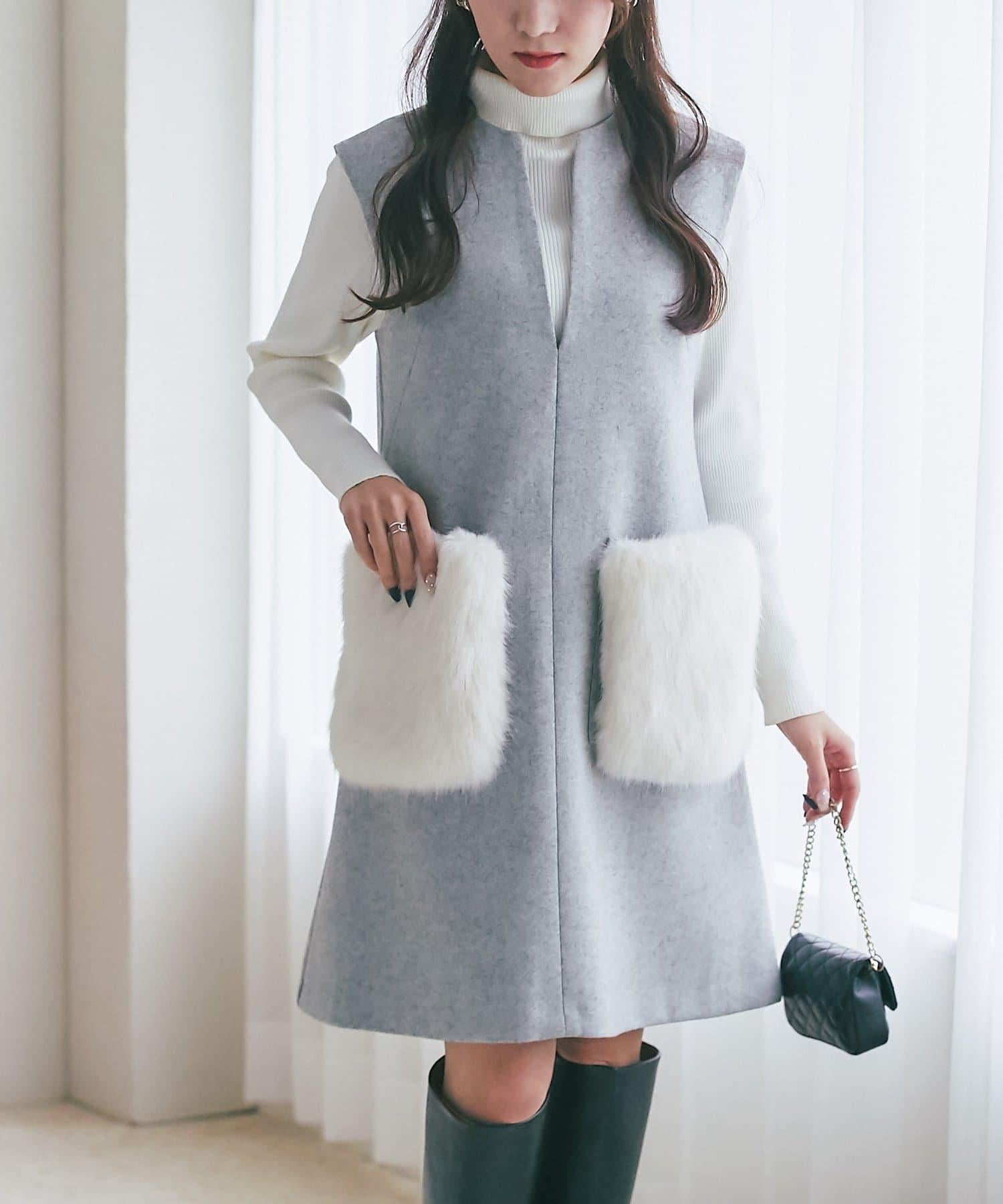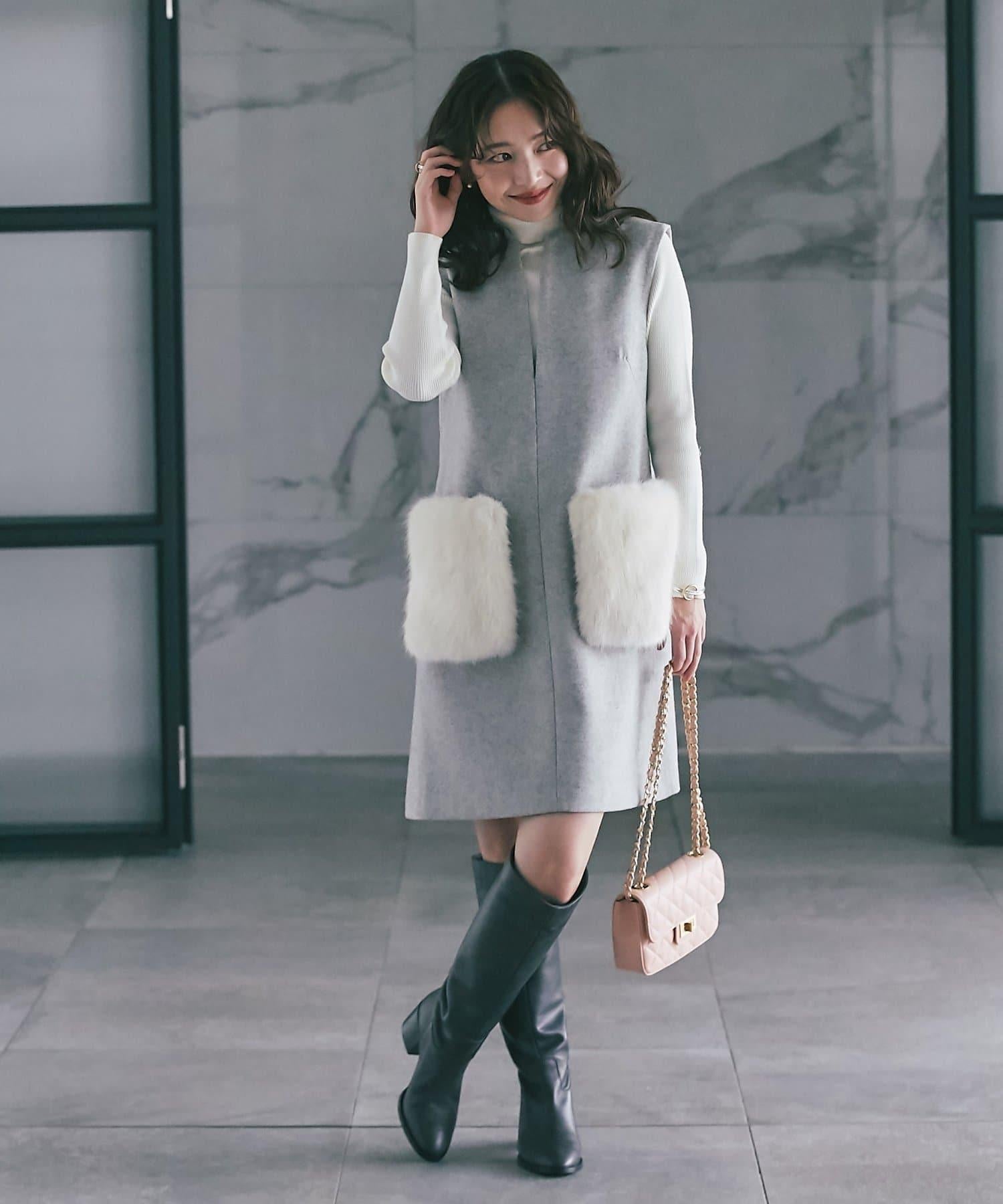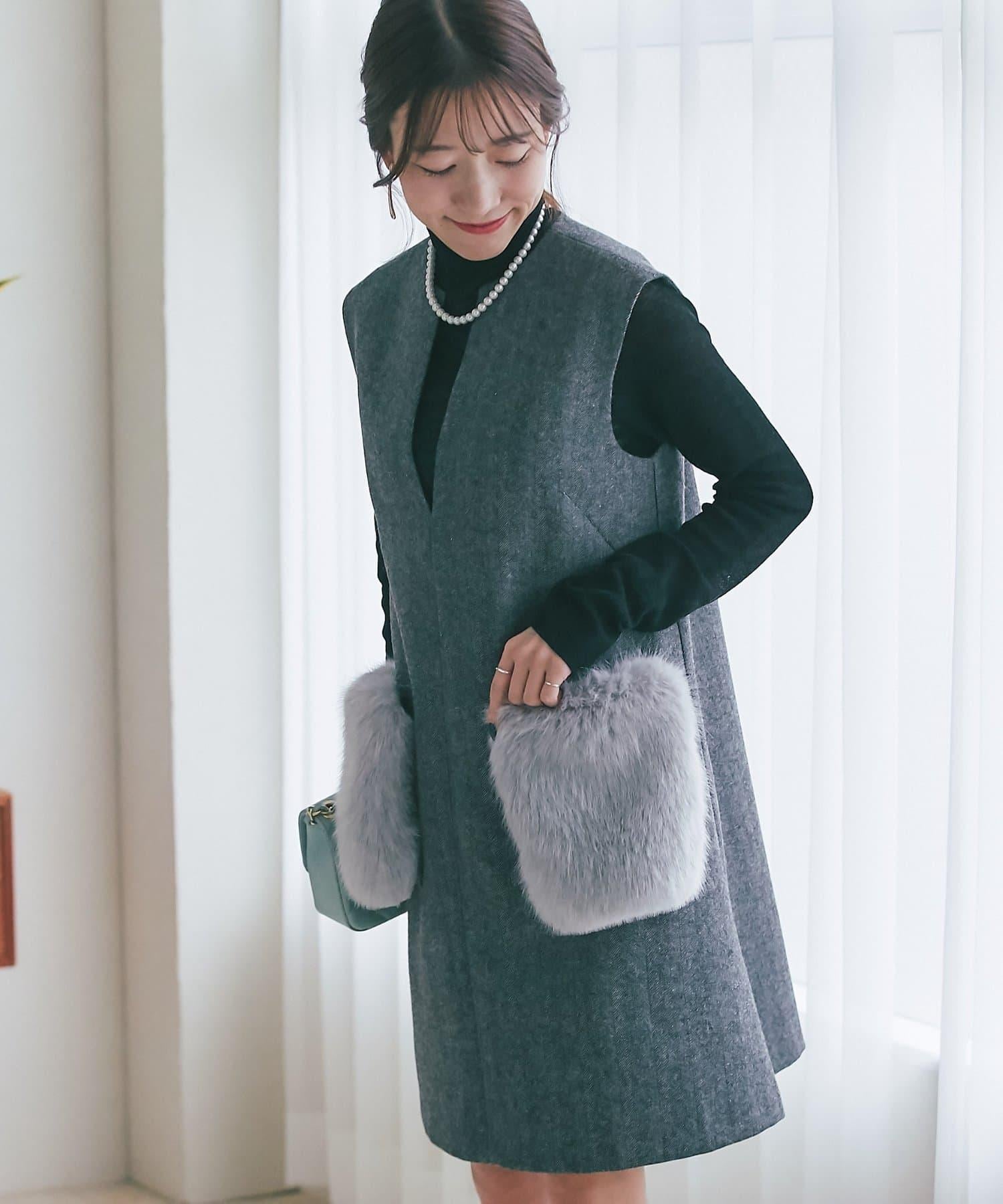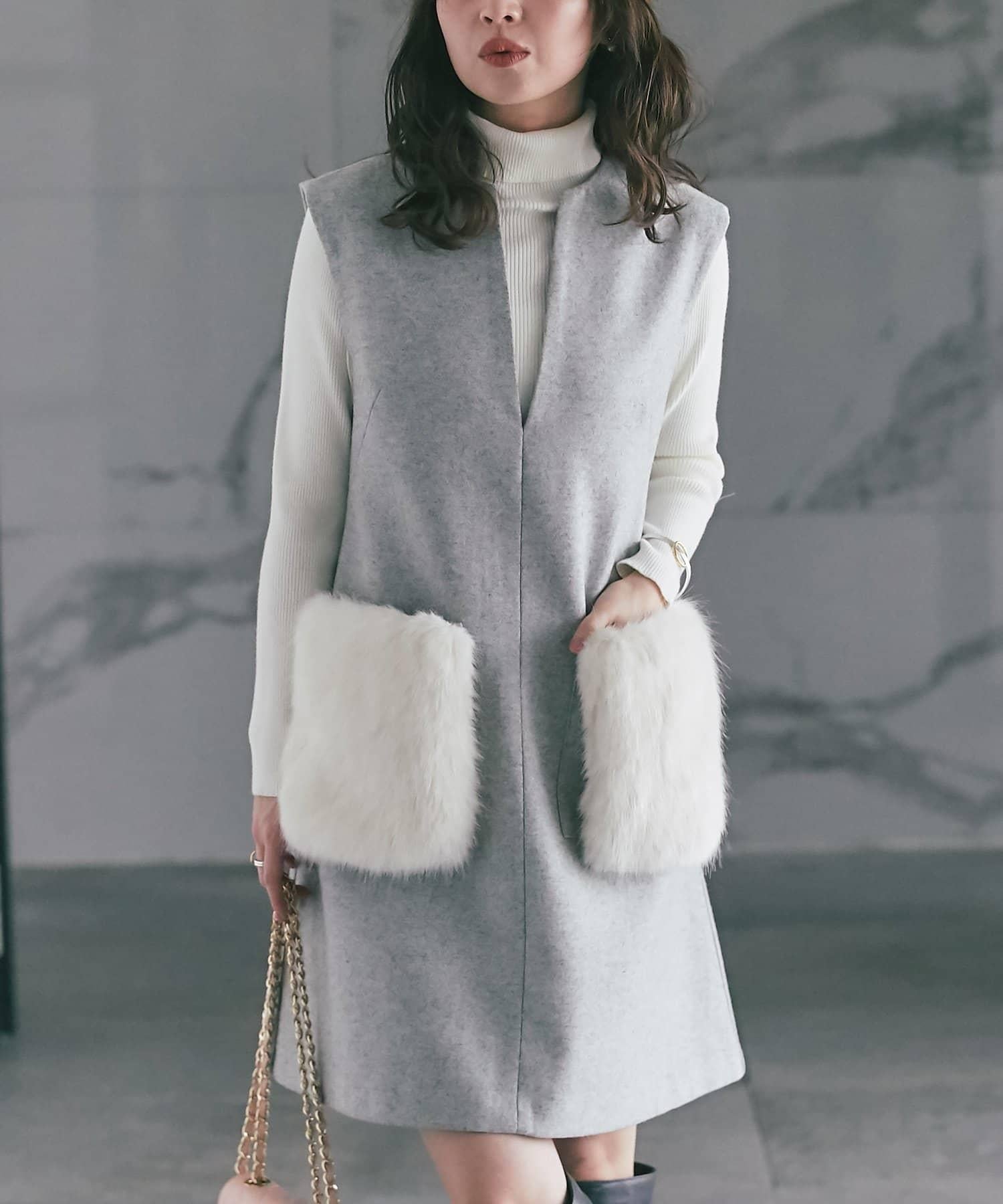 羊毛混紡斜紋軟呢面料和奢華的皮草口袋為您的冬季風格增添了一絲魅力。