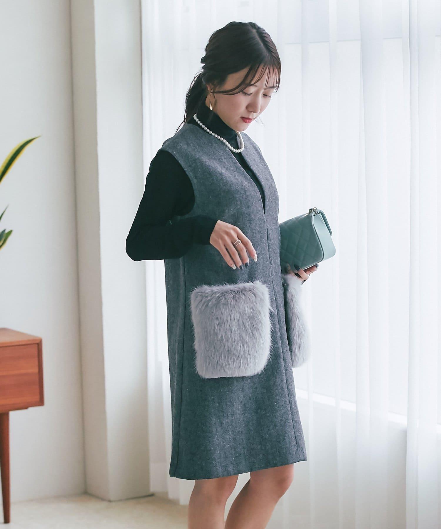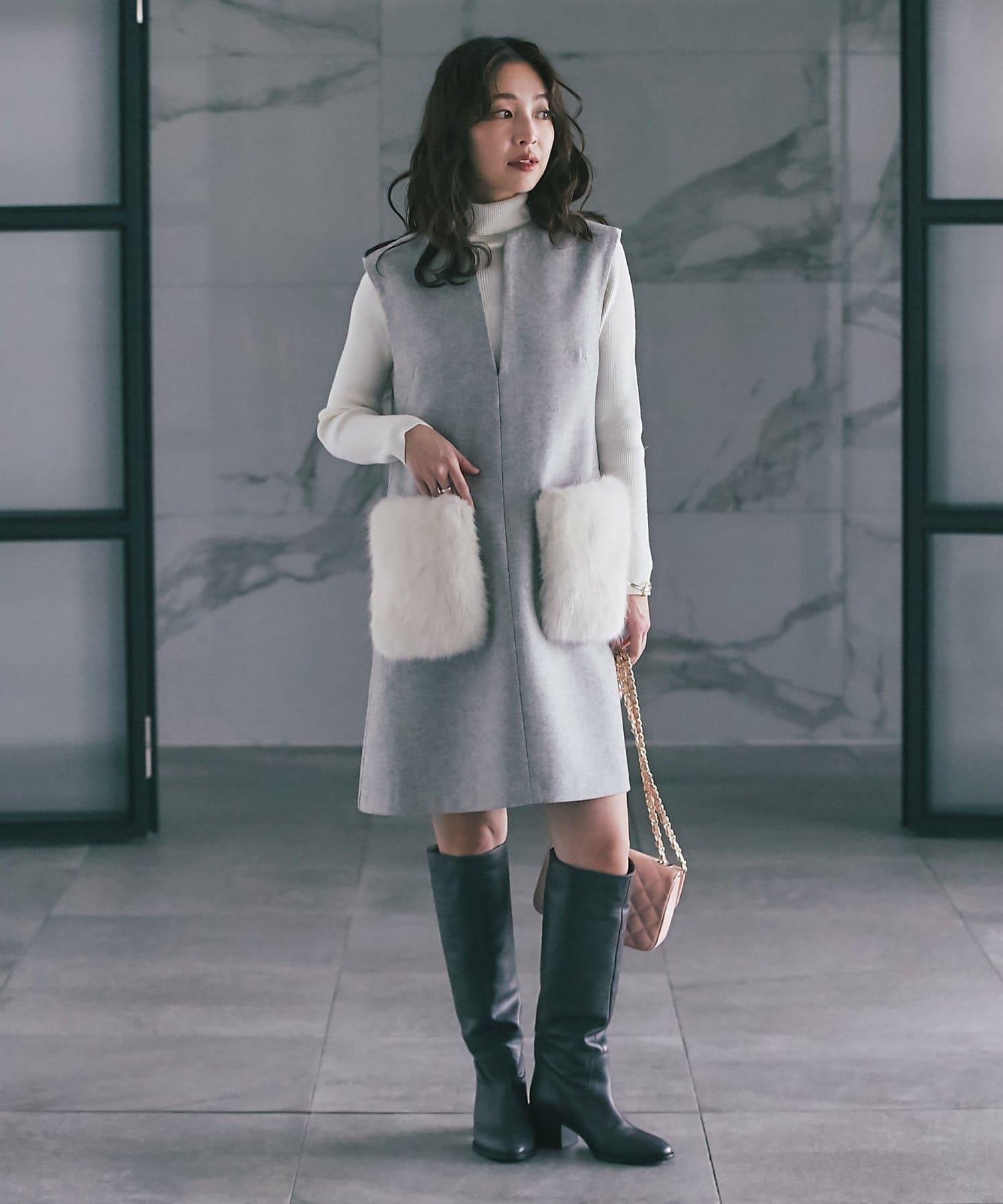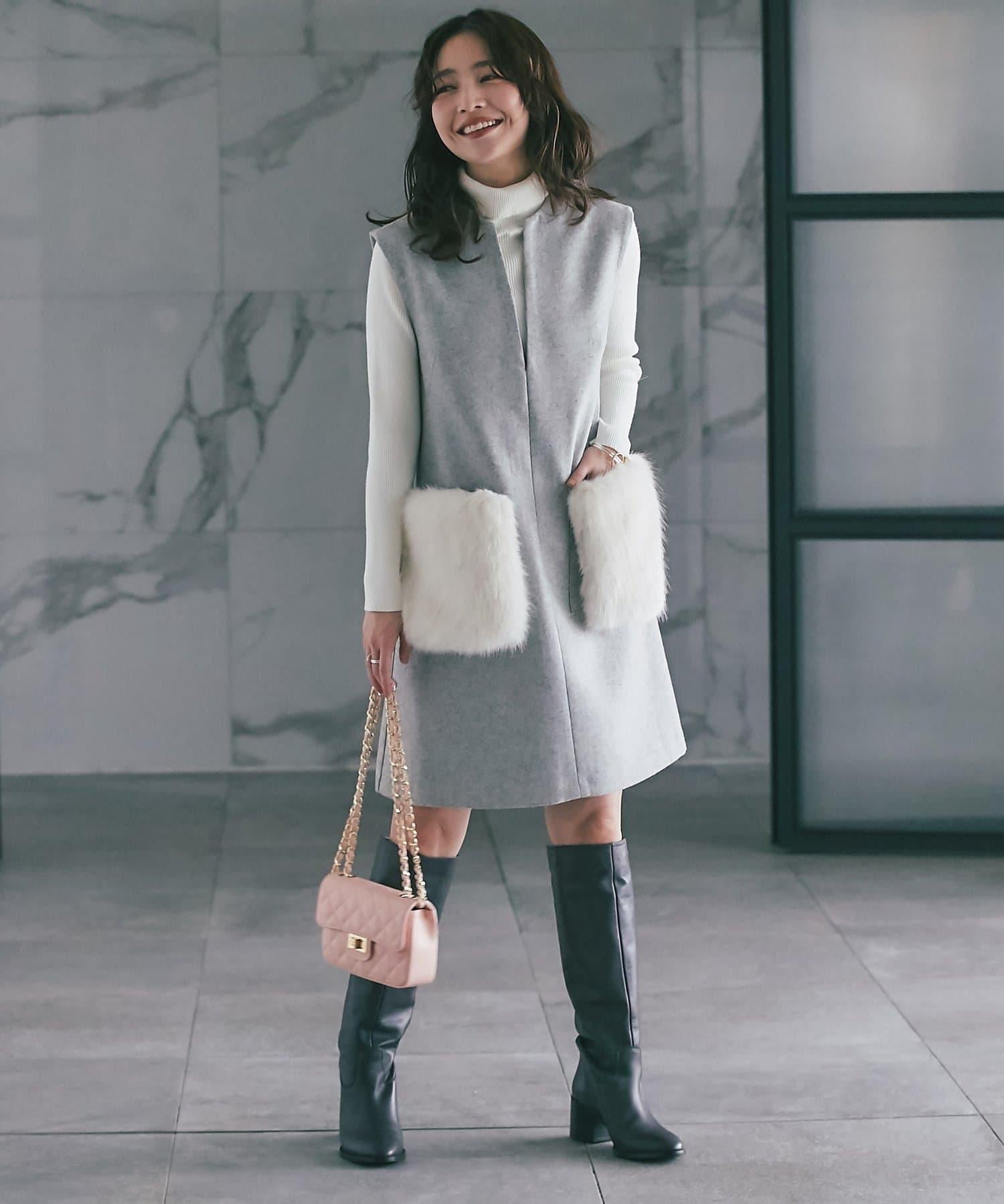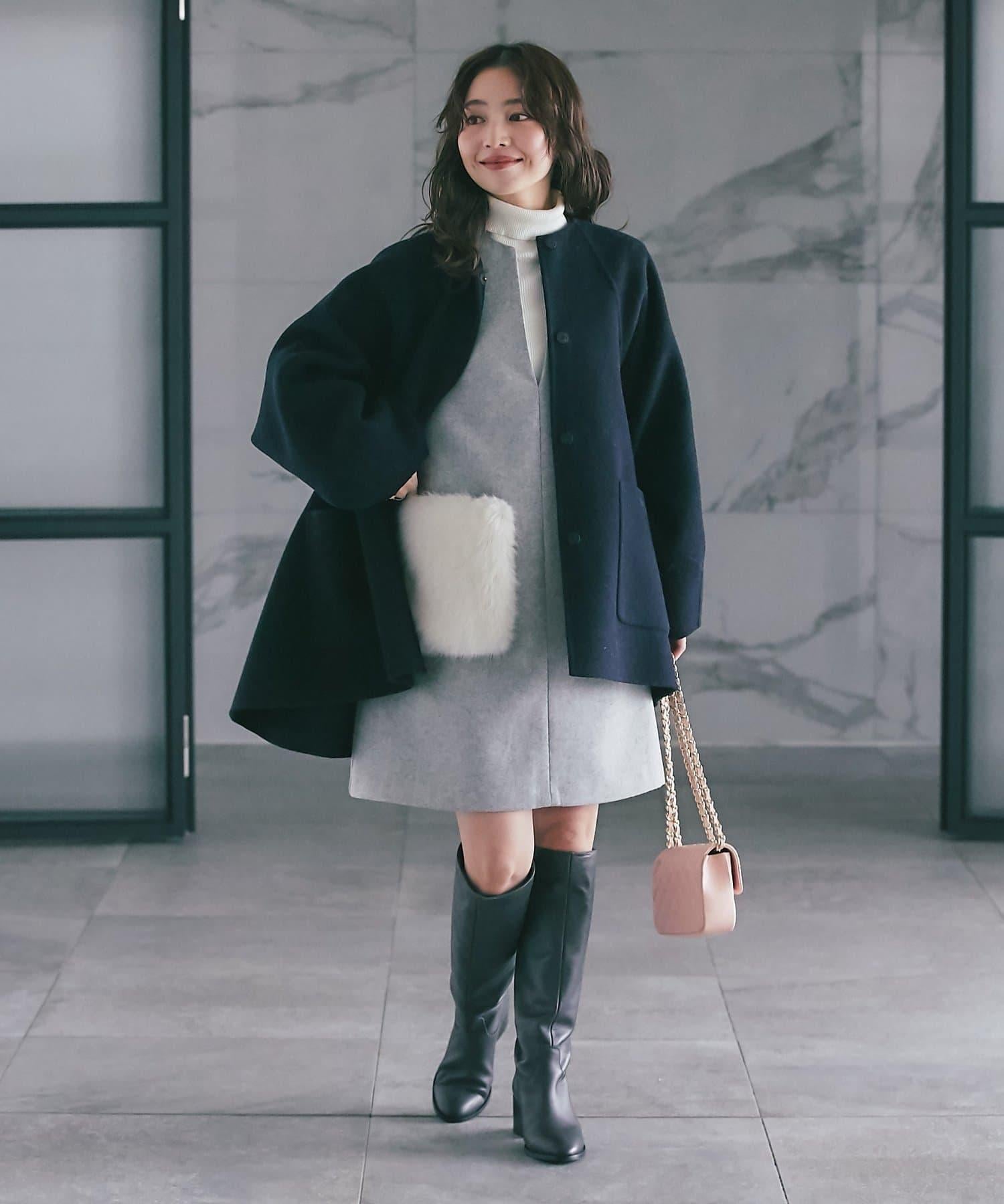 羊毛混紡斜紋軟呢面料和奢華的皮草口袋為您的冬季風格增添了一絲魅力。