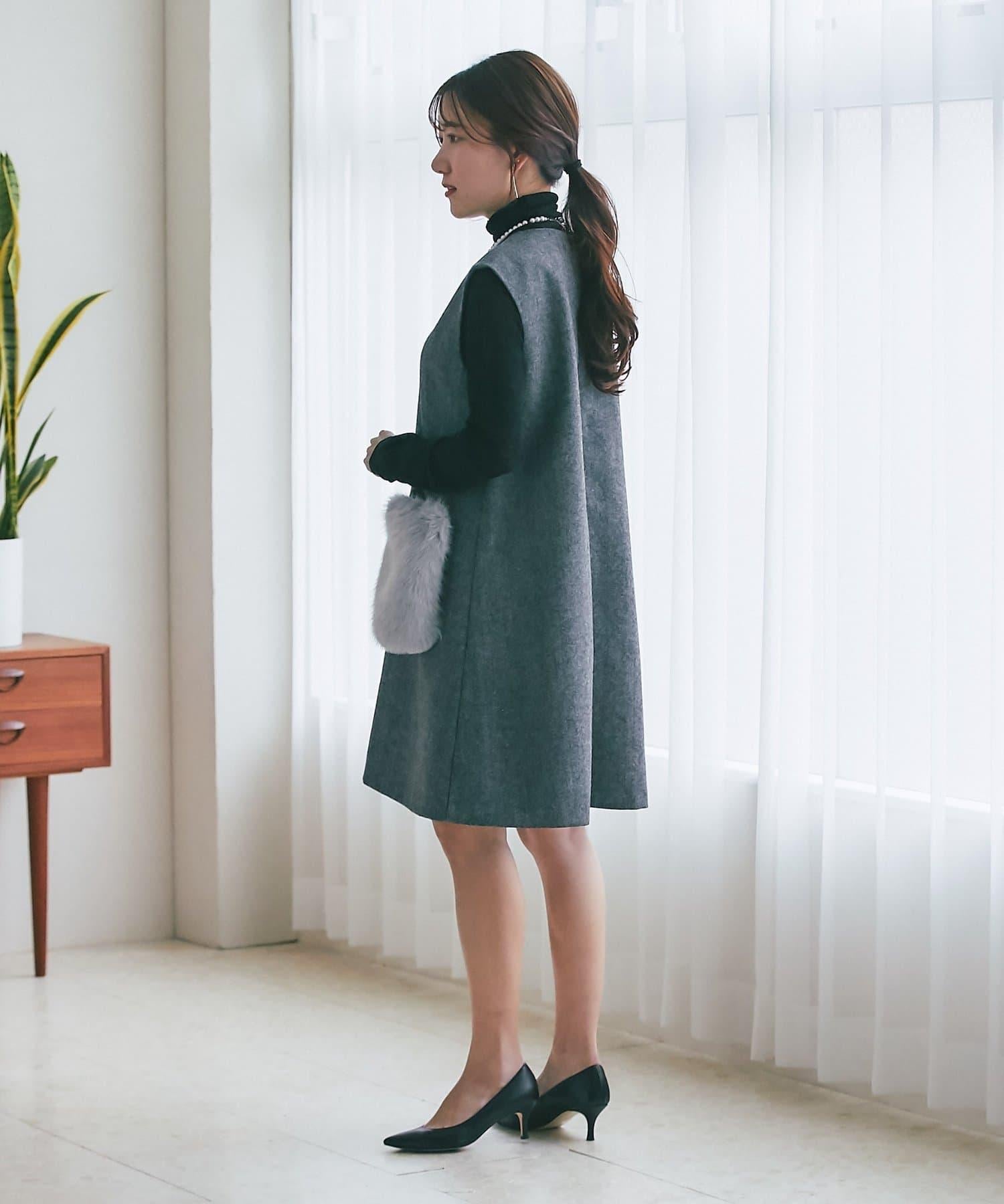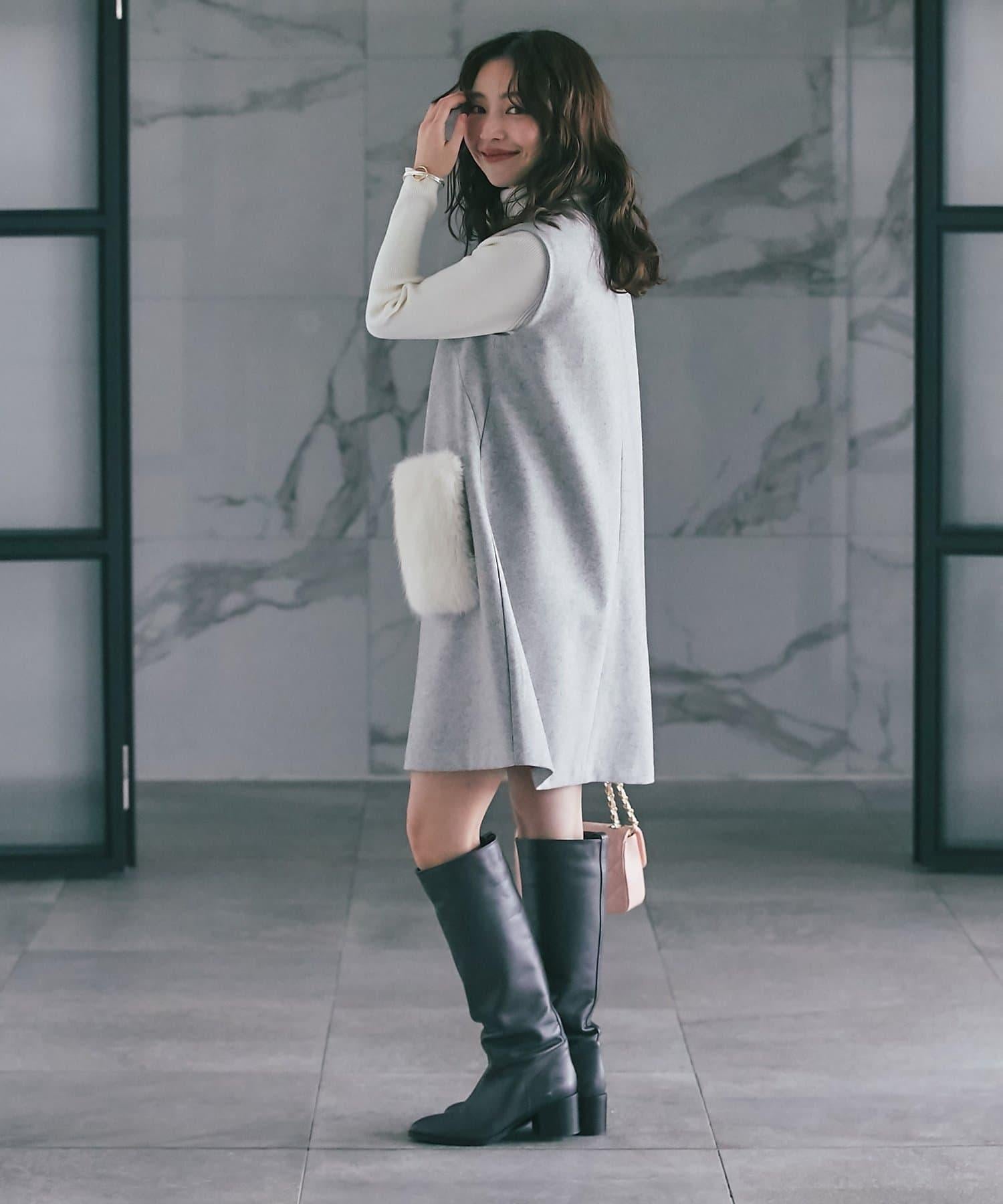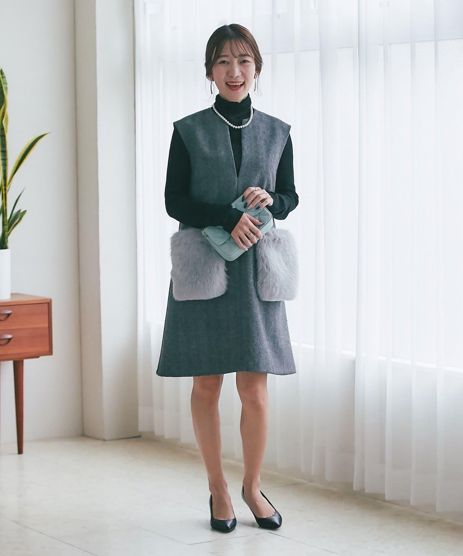 備受喜愛的冬季牛仔連衣裙,配有華麗的人造皮草口袋。