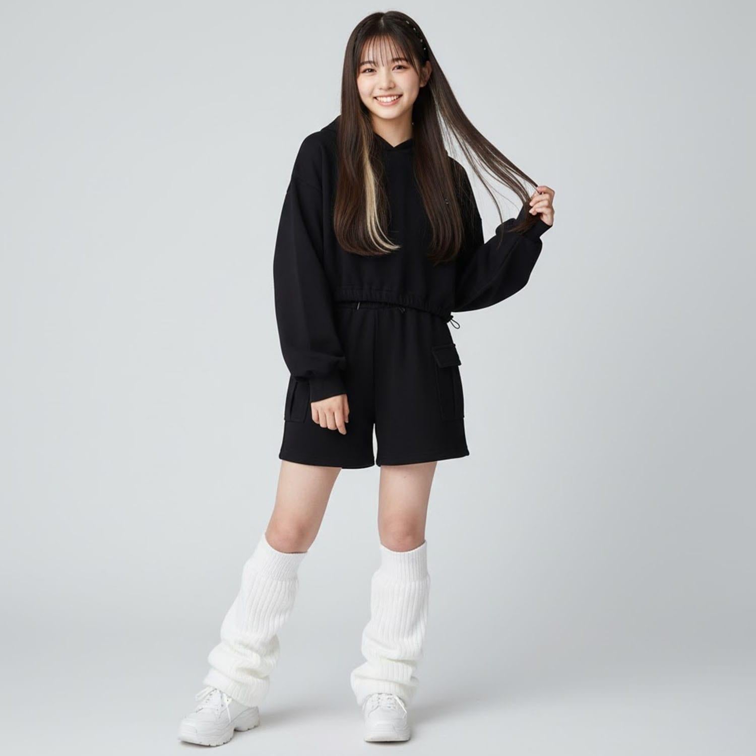 上衣下襬有抽繩,可以繫上改變輪廓。