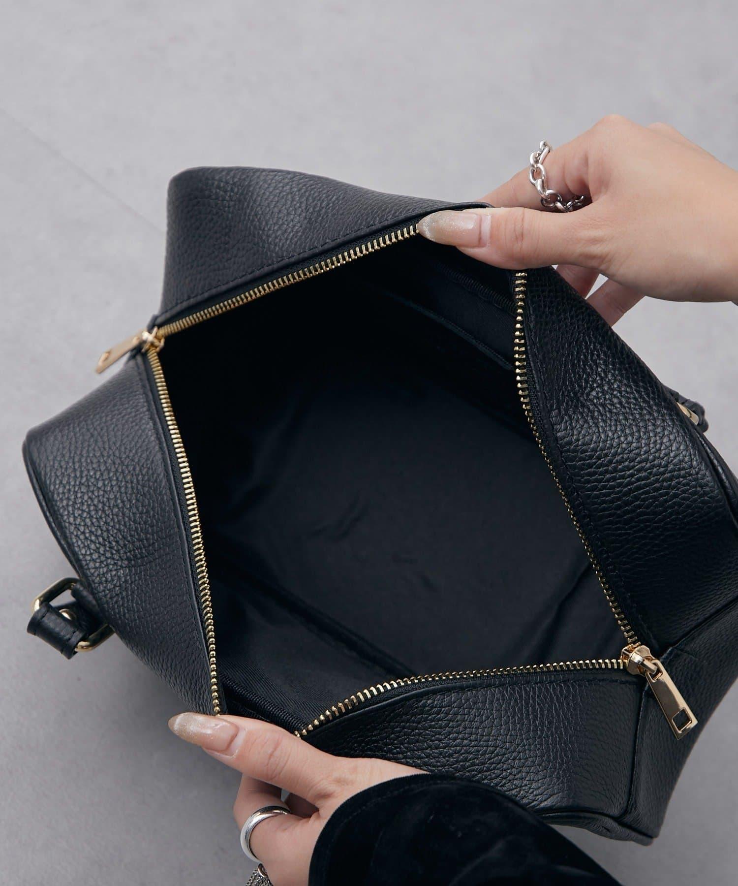 手袋底部有一個鉚釘夾層,雙拉鍊設計方便開合。雙向設計,配有肩帶。