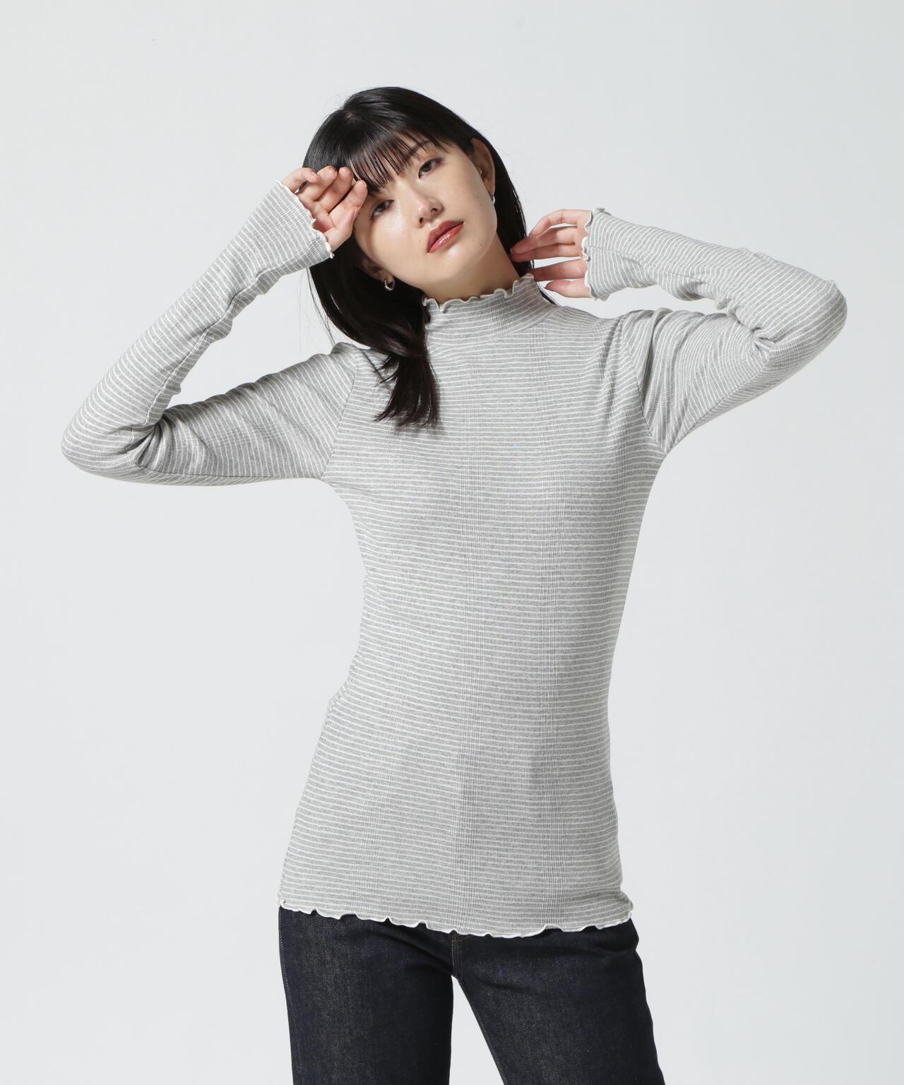 MILLER Prib Turtle LS Tee Turtleneck Turtle neck Tee,採用 MILLER 標誌性的細邊設計。領口、袖口和下襬採用醇厚的縫紉機縫製,使設計具有波浪形的動感。該設計在領口、袖口和下襬處採用醇厚的縫紉機縫製,呈現出波浪形的動感。R.P.miller 是創立於 1907 年的美國工廠針織品牌 MOHTON KNITTING MILLS 的子品牌。MILLER 繼承了父親在美國阿肯色州的布料店,創立了 R.P.MILLER 品牌。