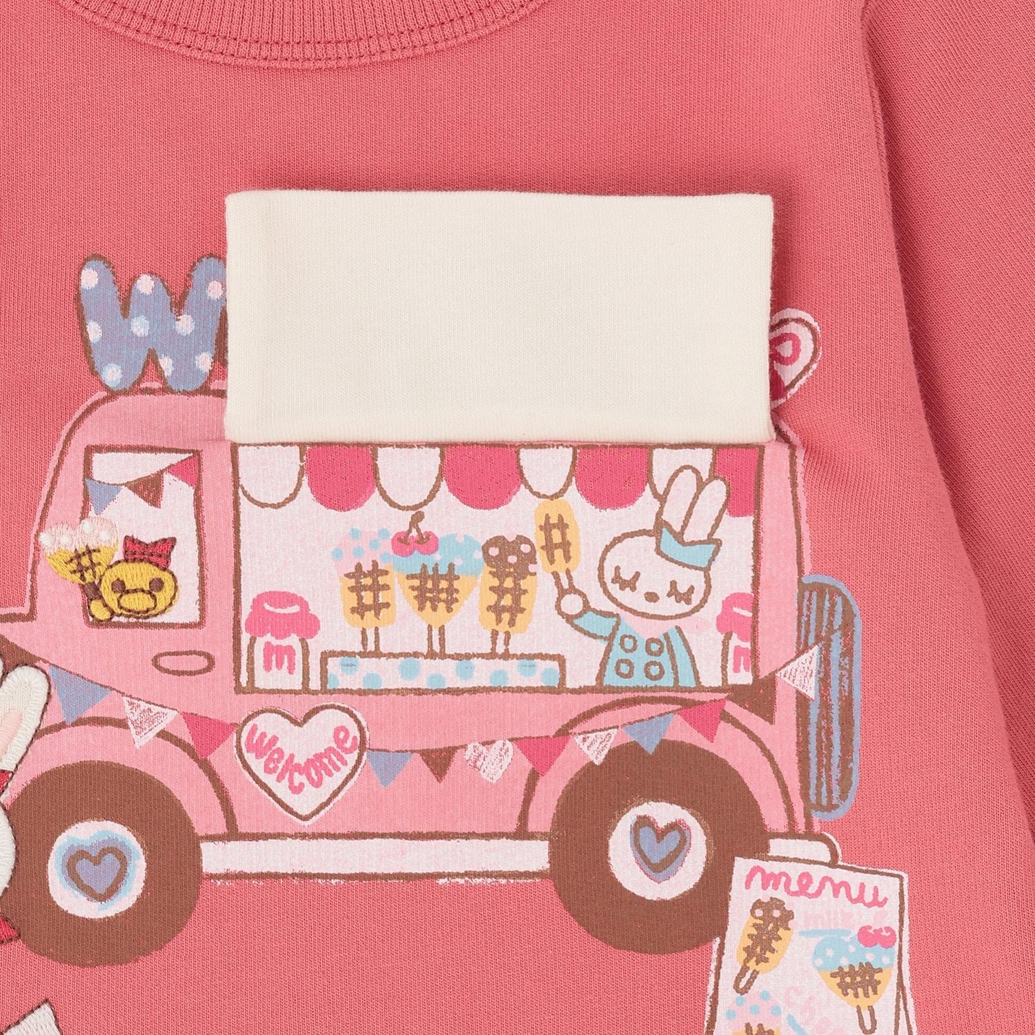 飾有可愛的華夫餅餐車圖案的 Trainers,以貼花和刺繡的方式展現了咪咪和皮歐的形象。餐車的遮篷可以用手打開。80 厘米和 90 厘米有一個左肩開口,方便穿脫。