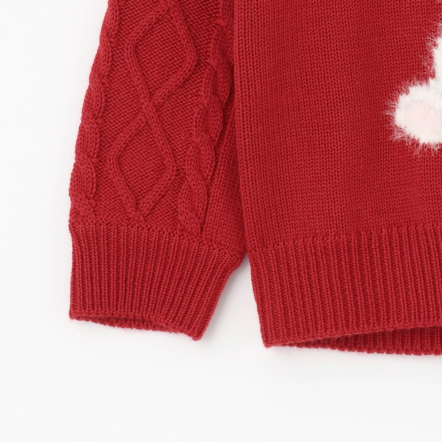 咪咪部分採用蓬鬆的紗線表現,袖子則採用電纜編織,非常保暖。