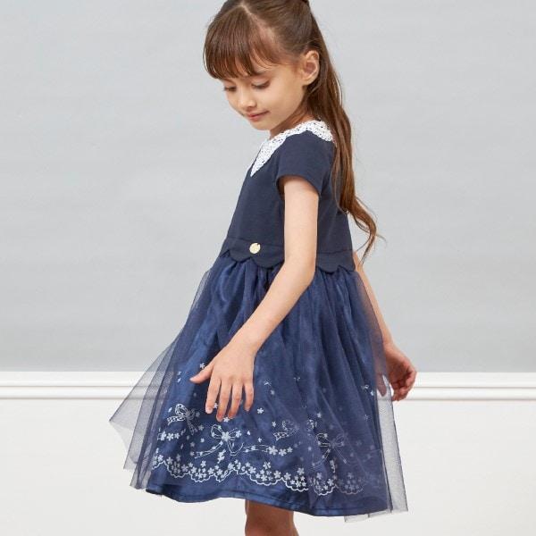 mimi&蝴蝶結刺繡短袖連衣裙(90~130)