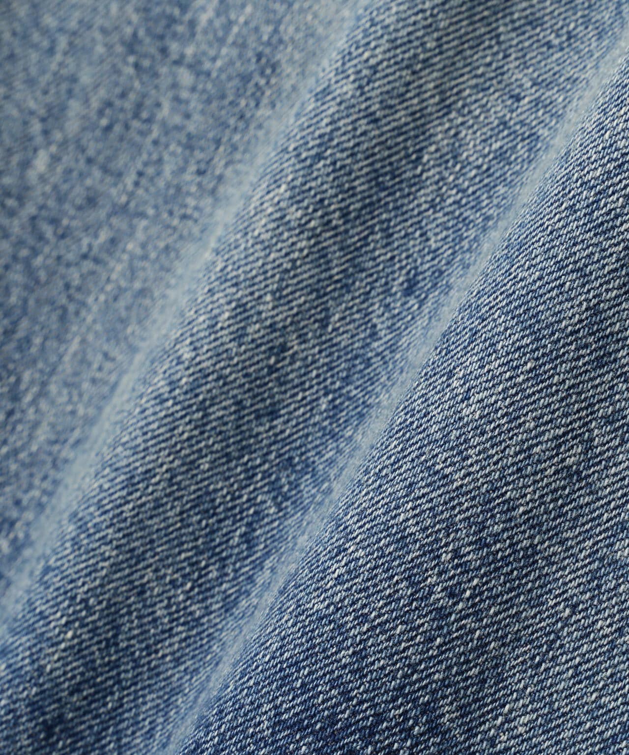 靛藍邊牛仔布再現了 20 世紀 40 年代的復古牛仔布,外層面料採用原機加工狀態,未經打孔(防縮)處理。