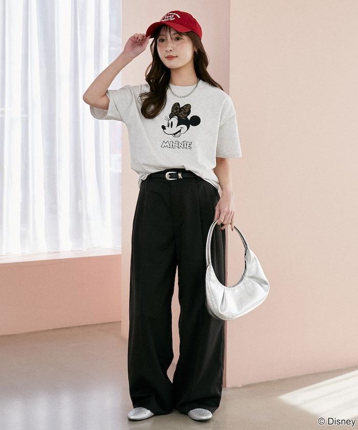 Minnie Mouse/ミニーマウス 豹紋拼接T恤