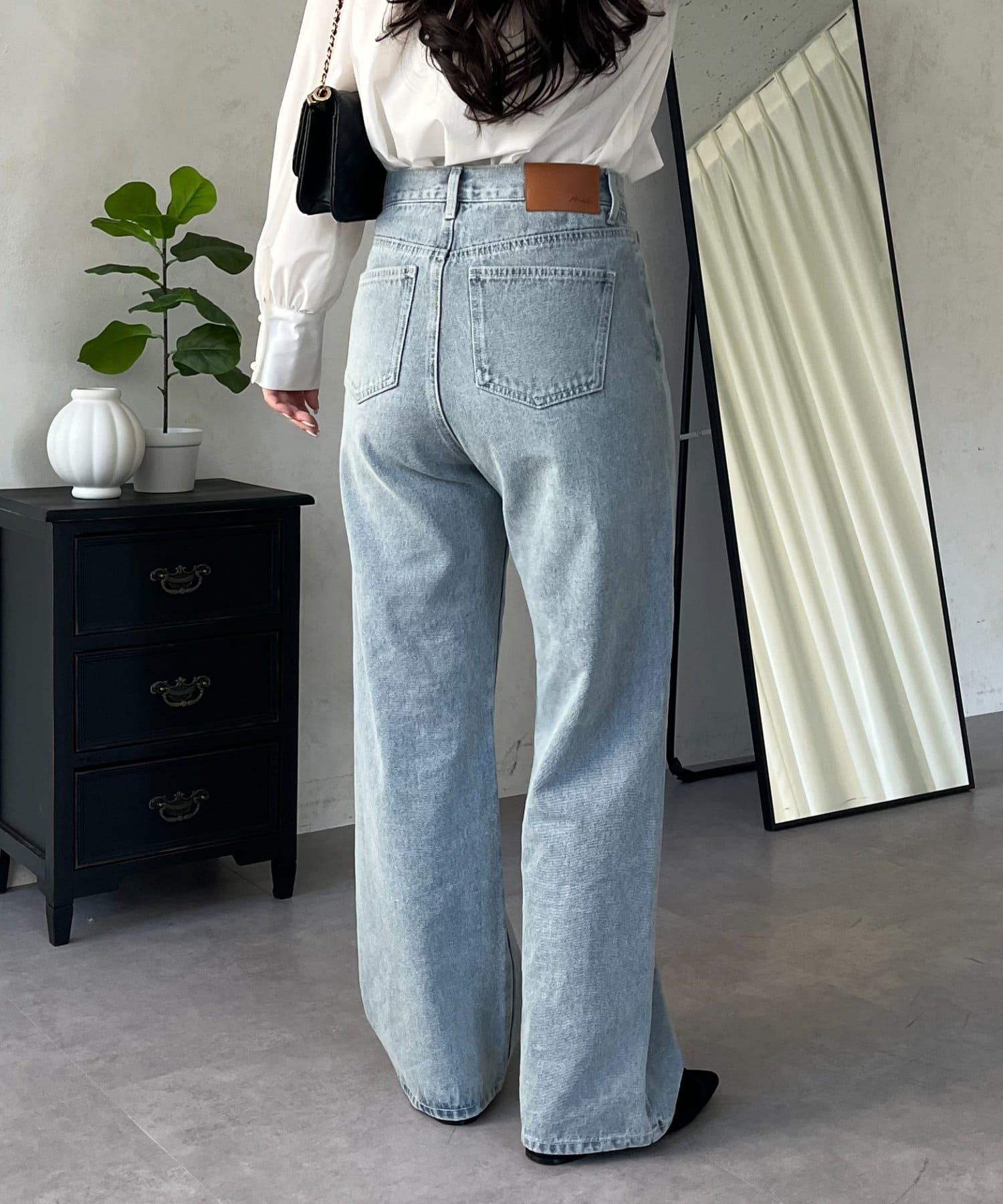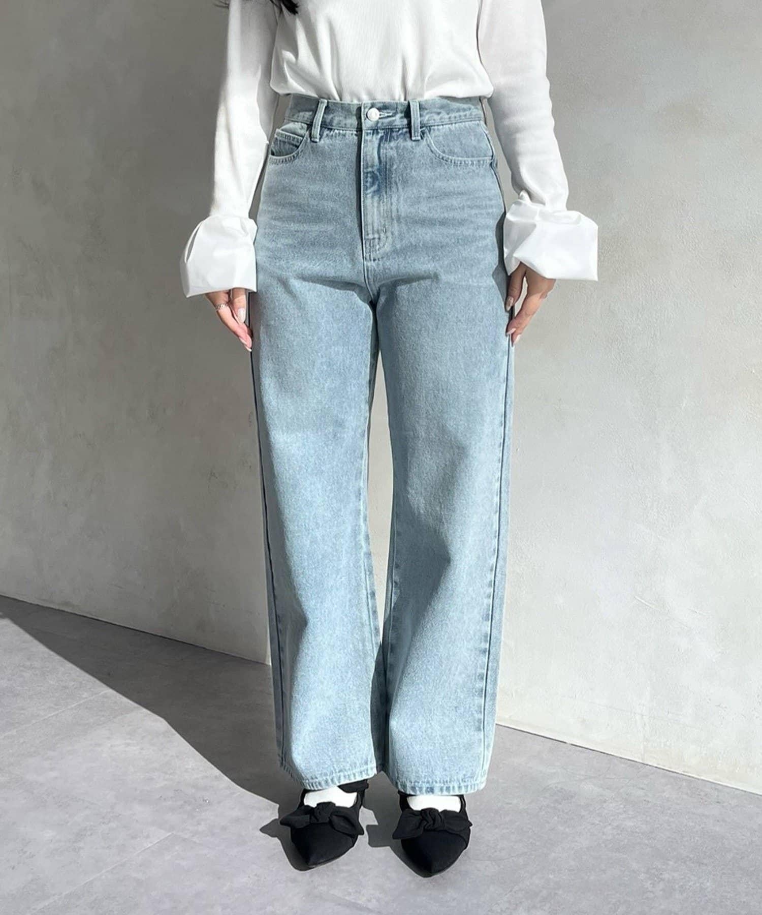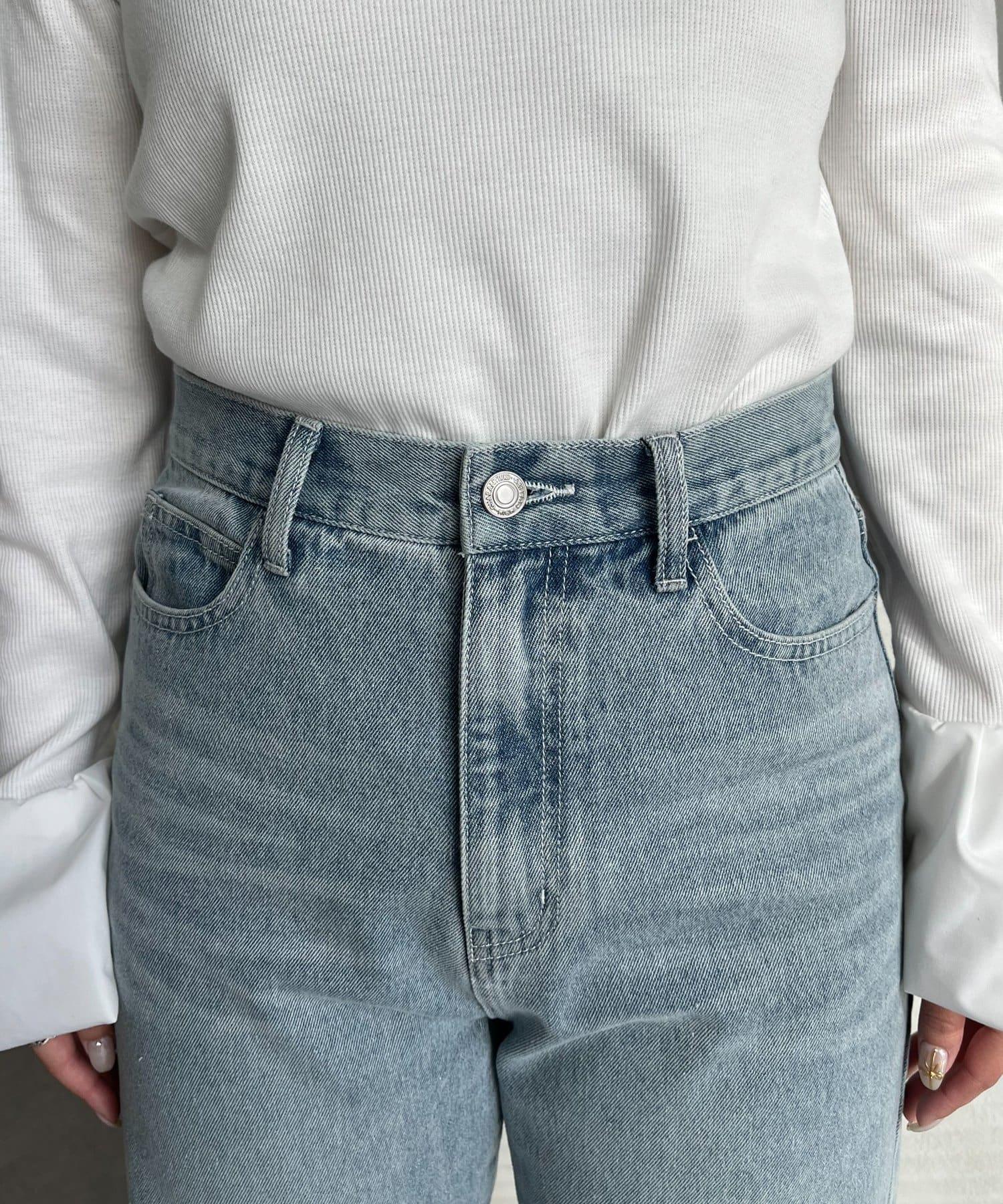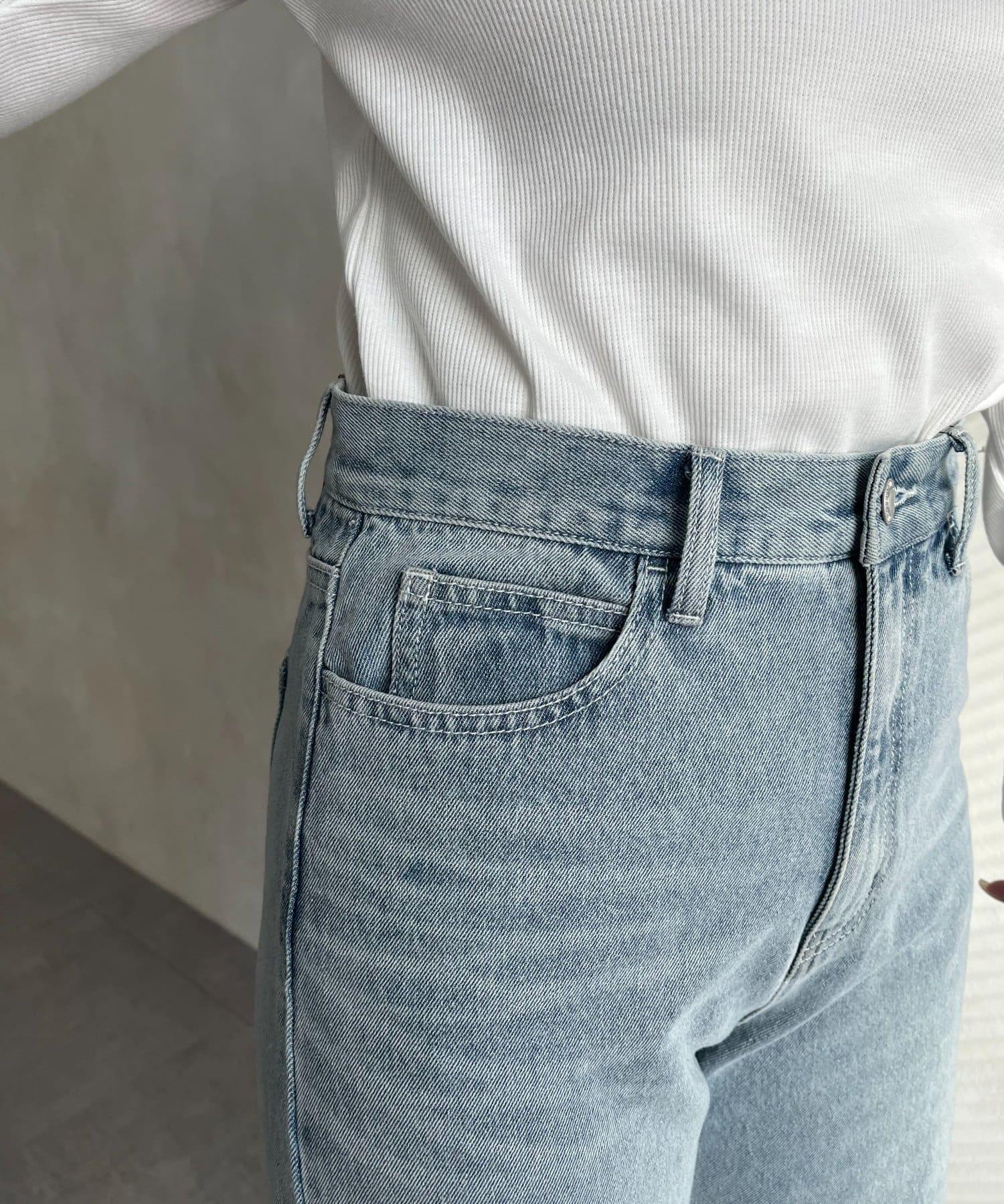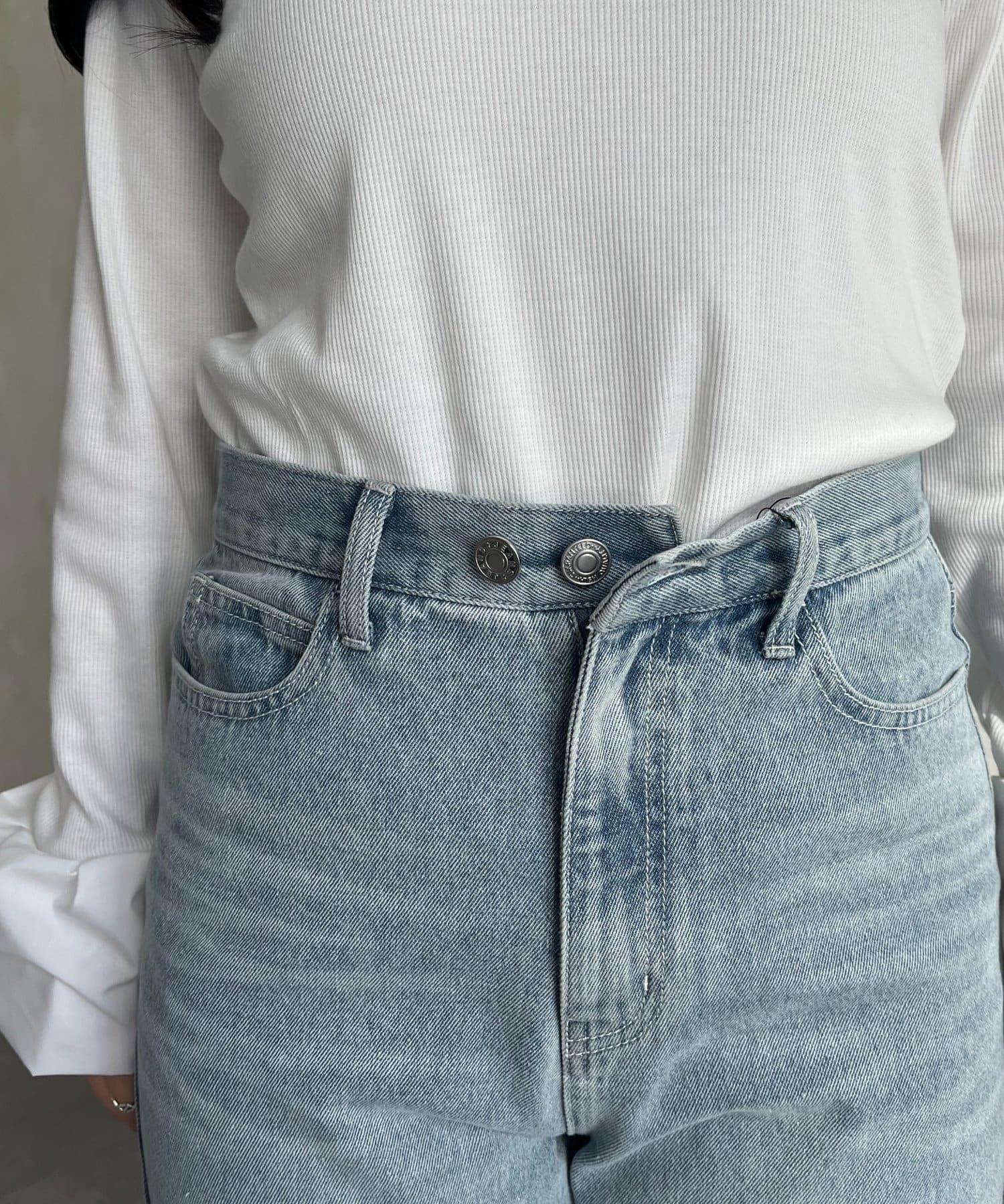 MIO 可調節按鈕直筒牛仔面料牛仔褲