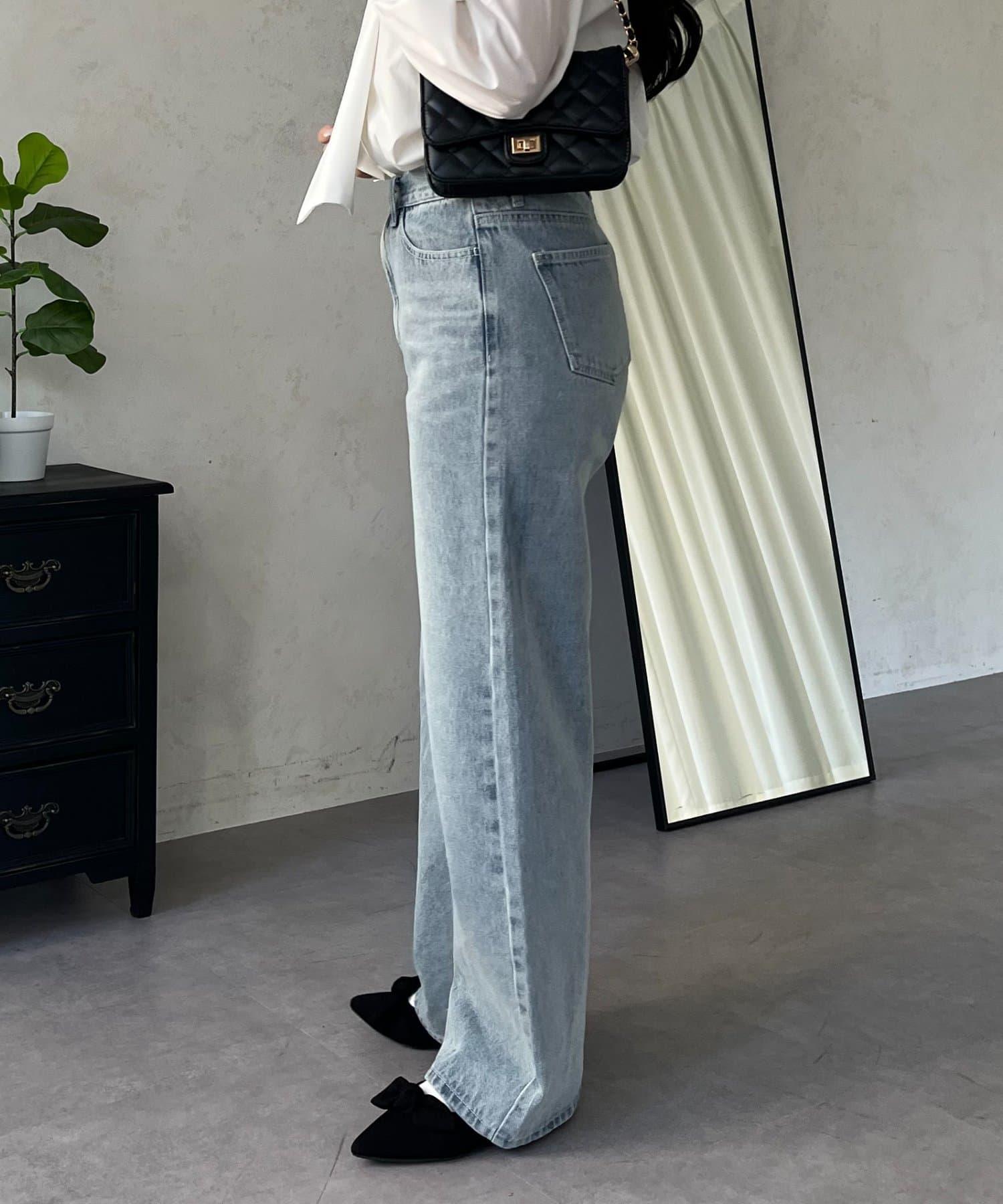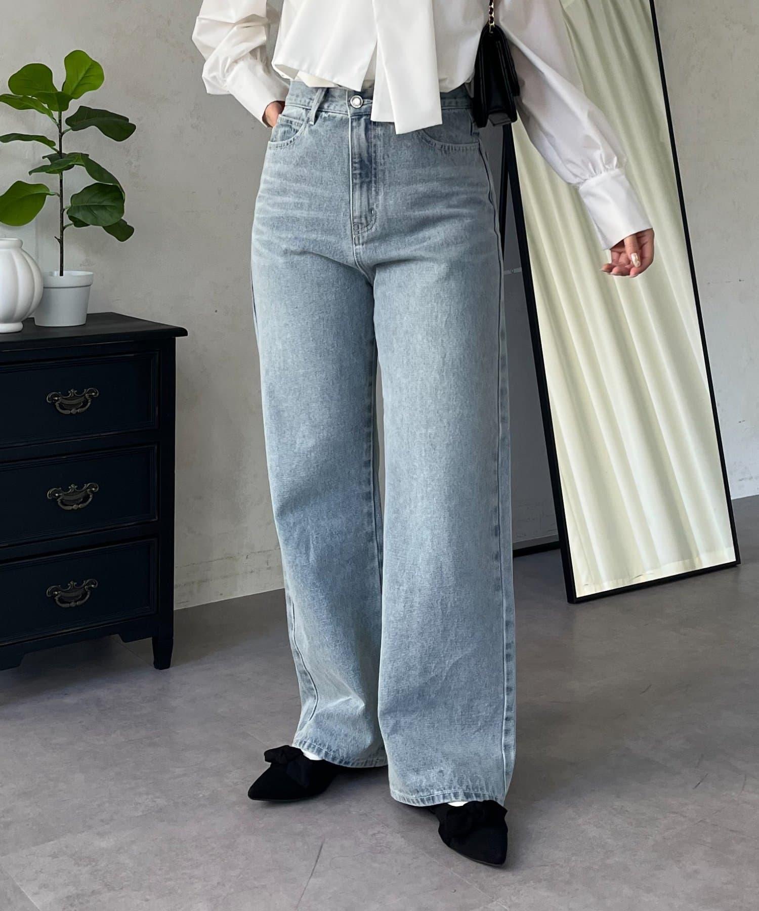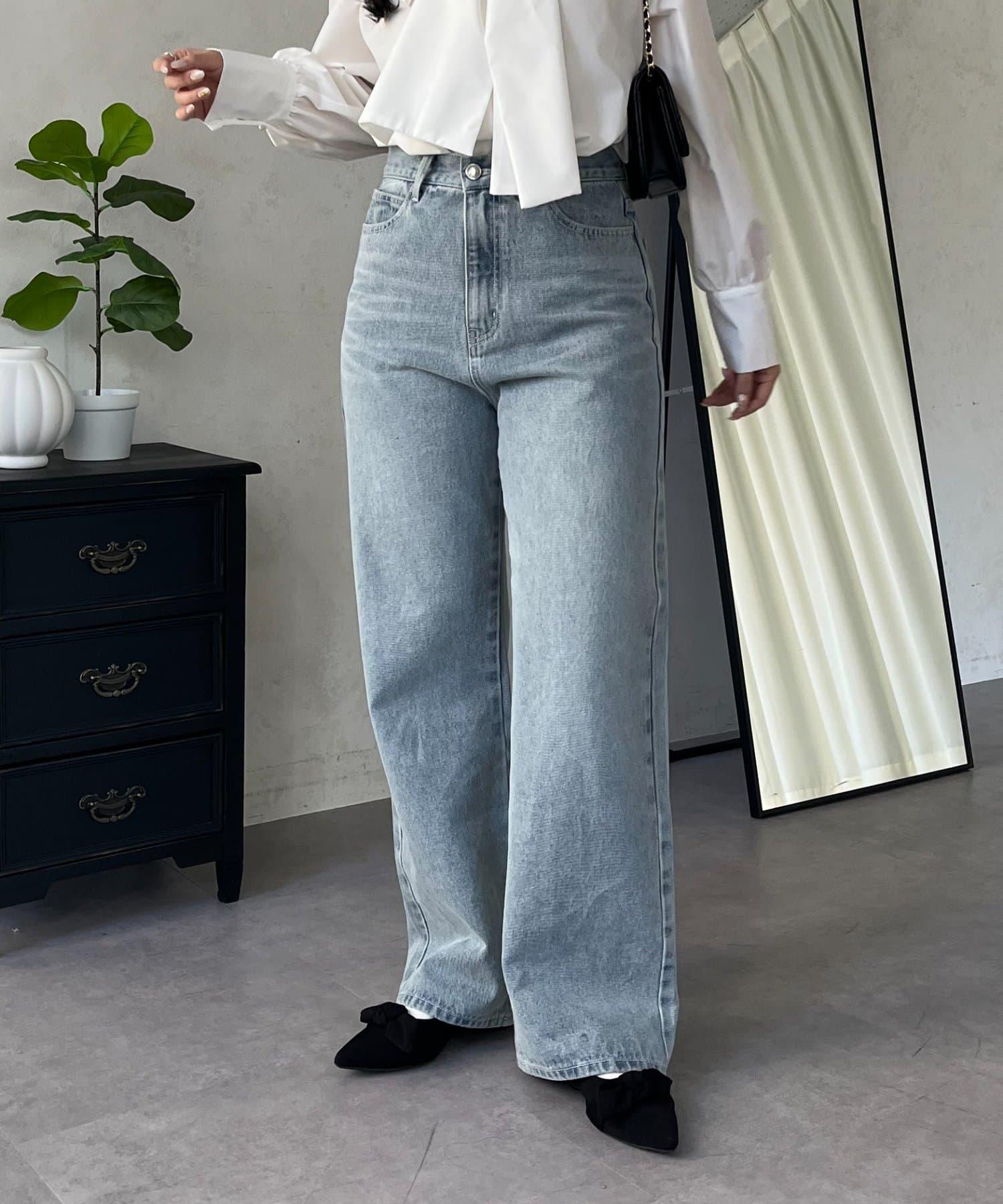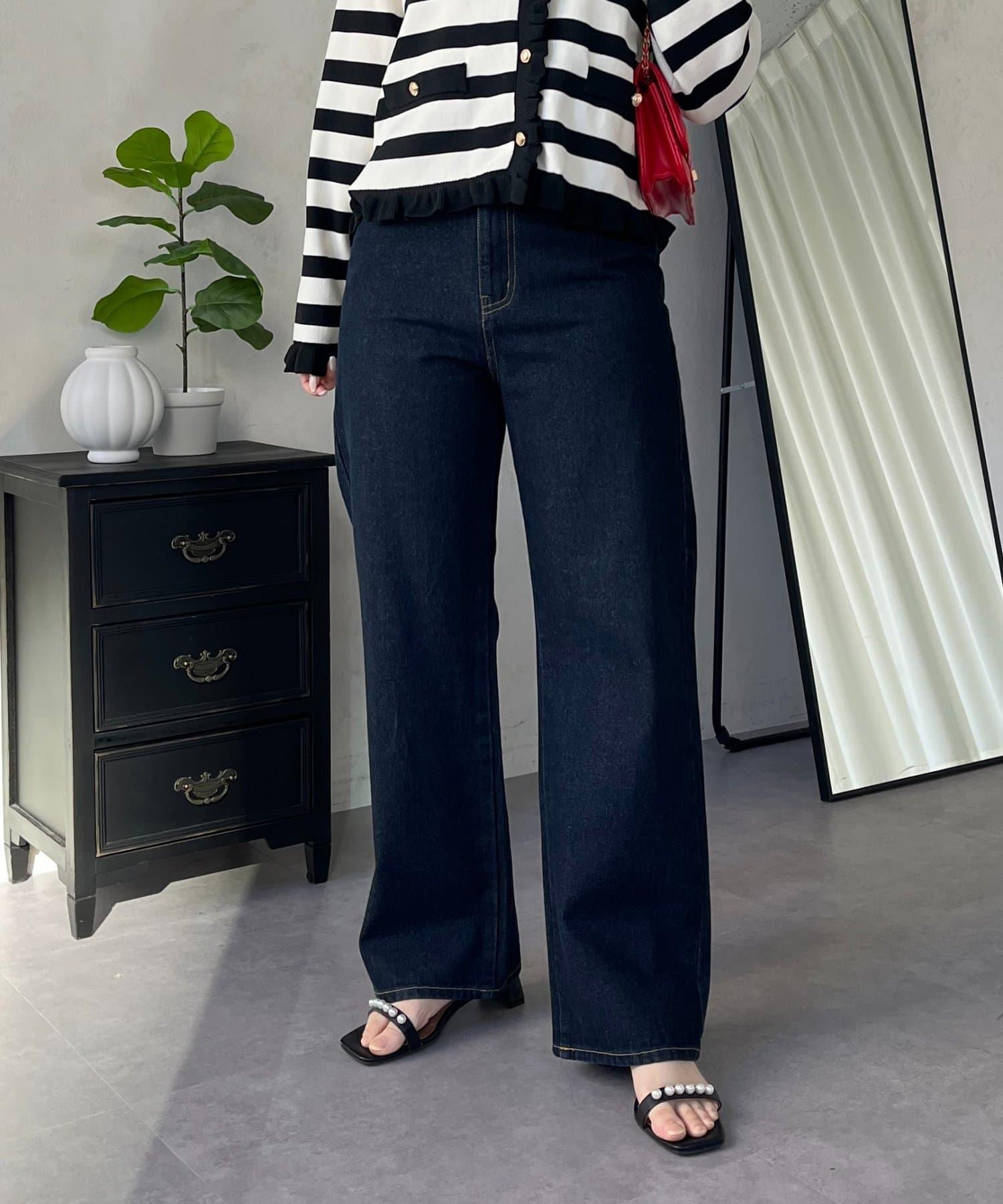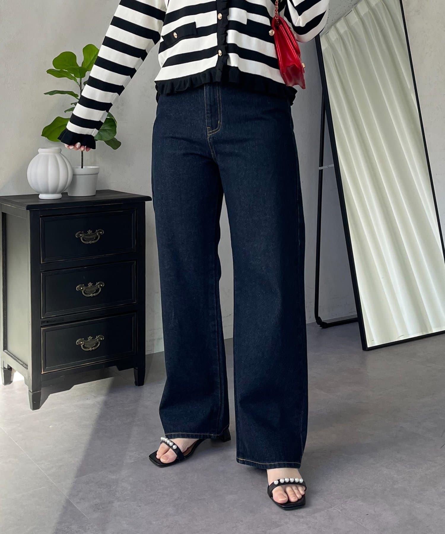 MIO 可調節按鈕直筒牛仔面料牛仔褲