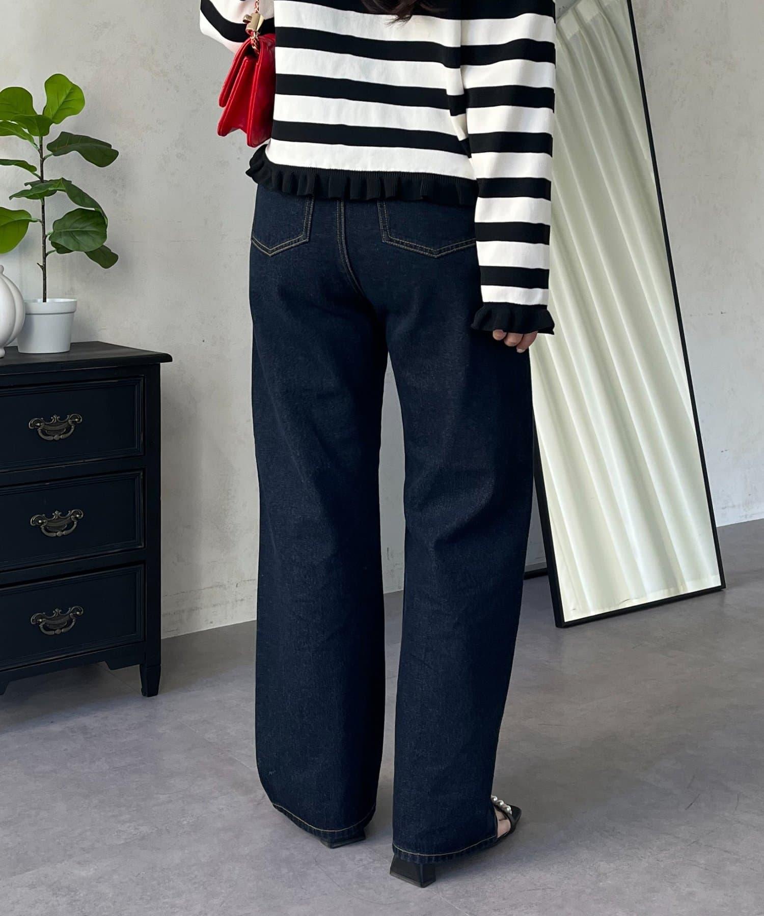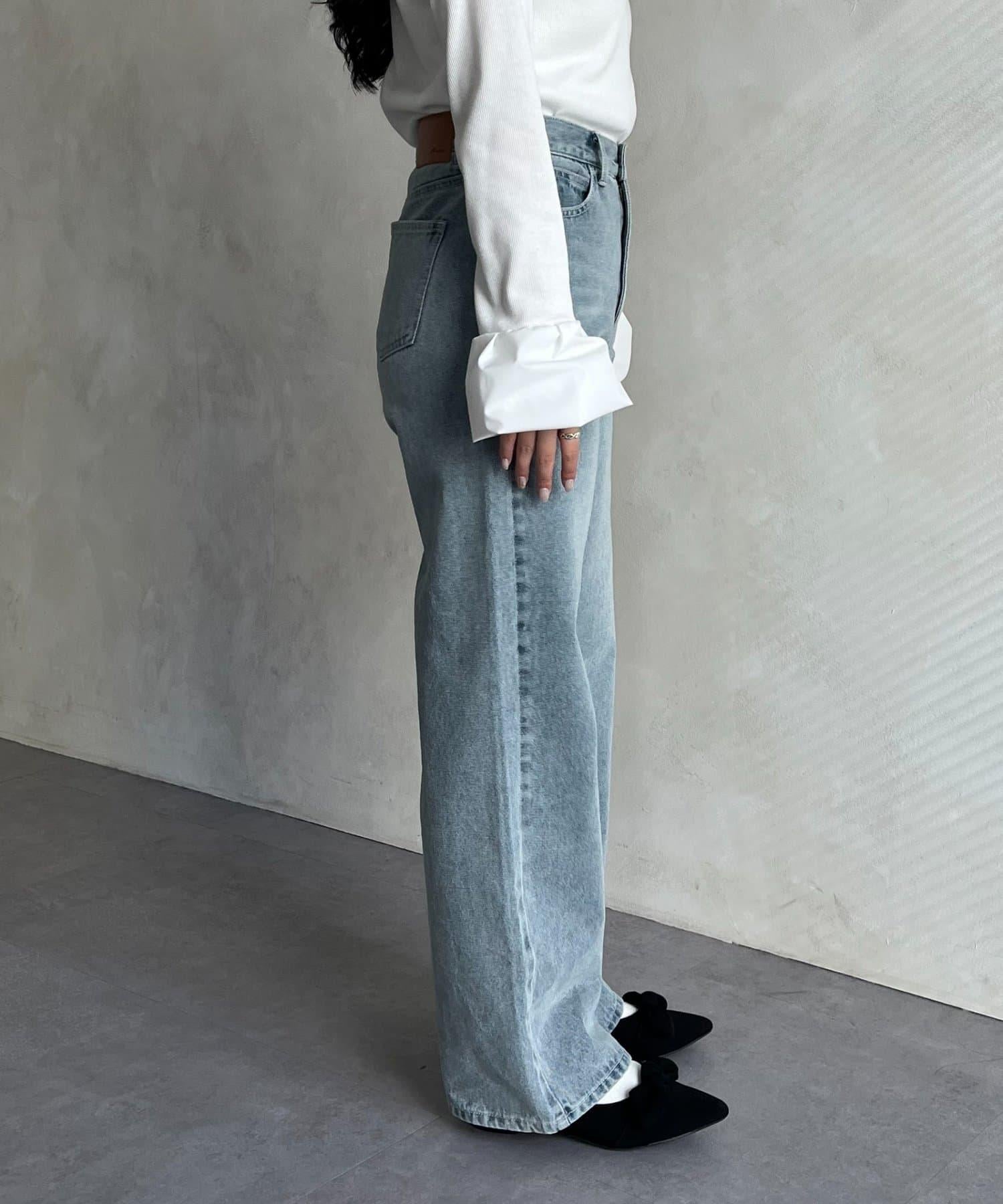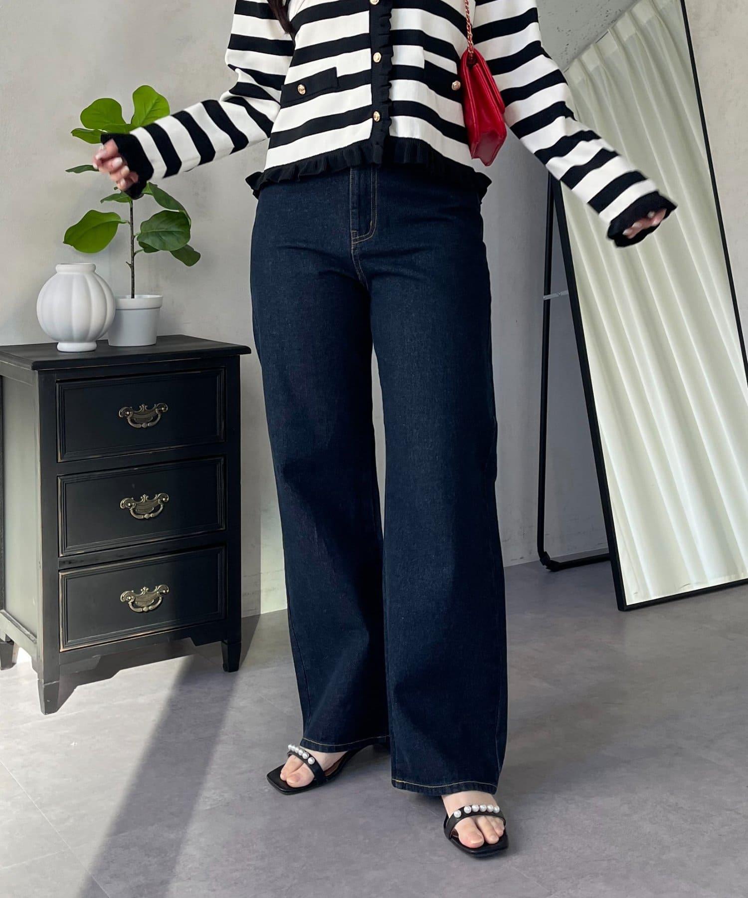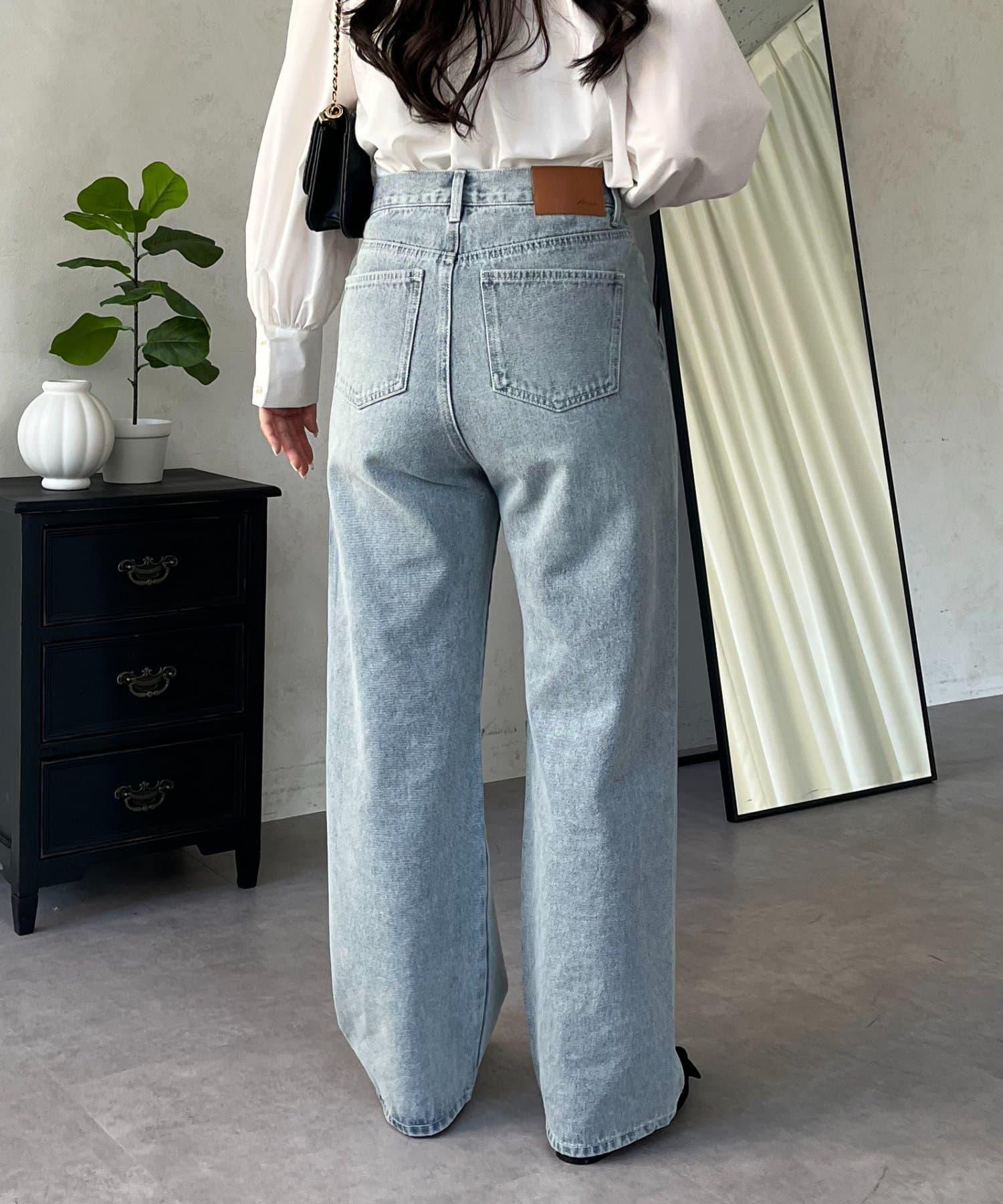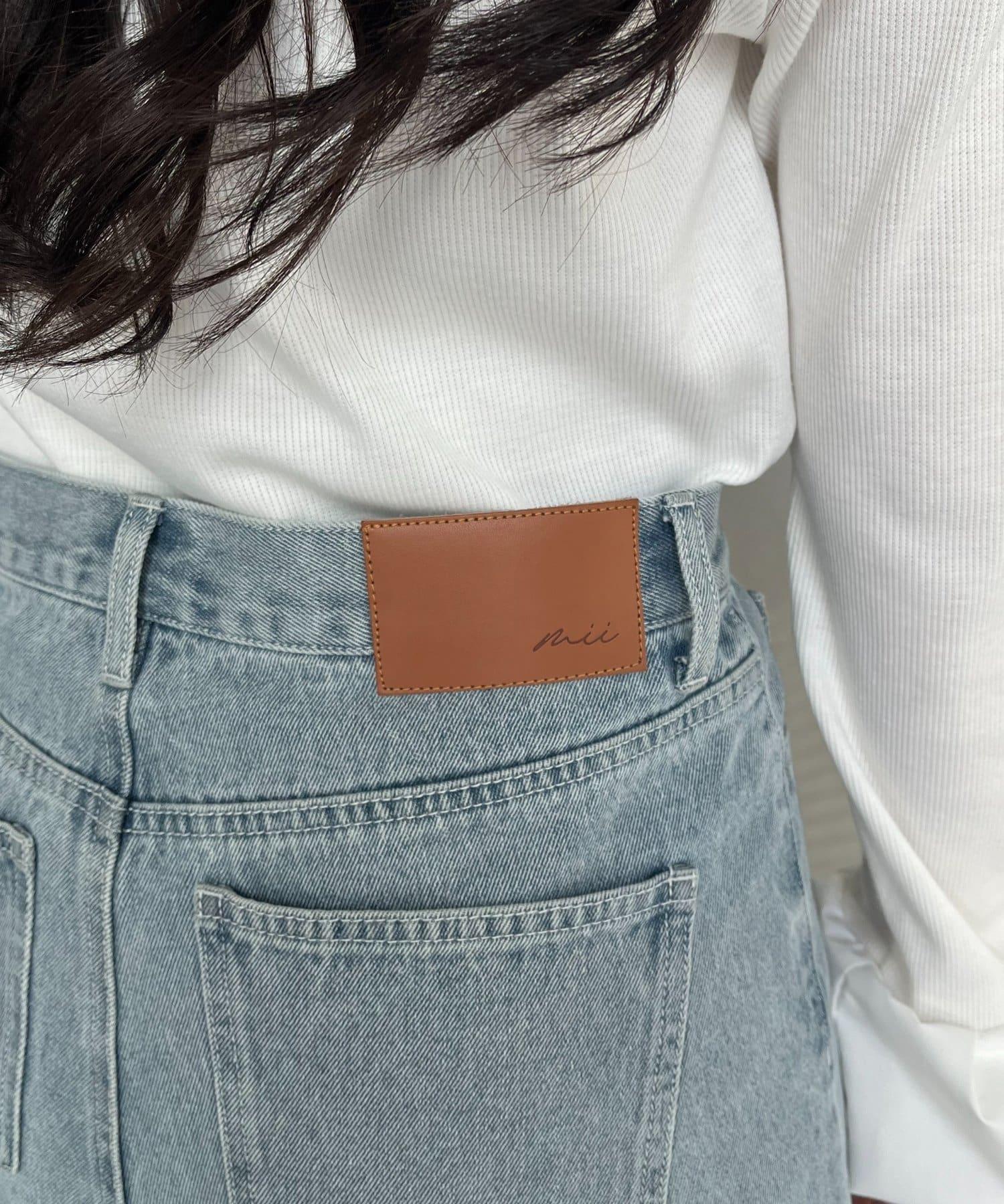 MIO 可調節按鈕直筒牛仔面料牛仔褲