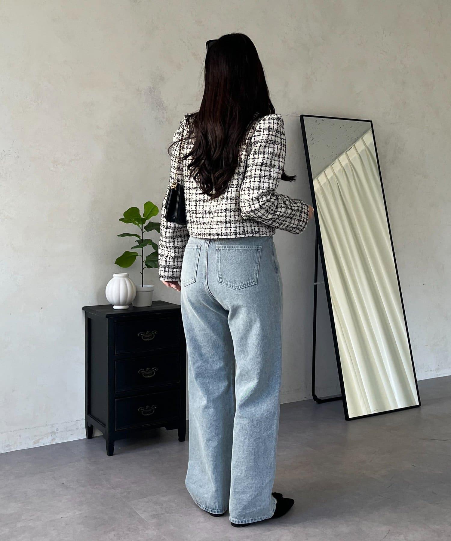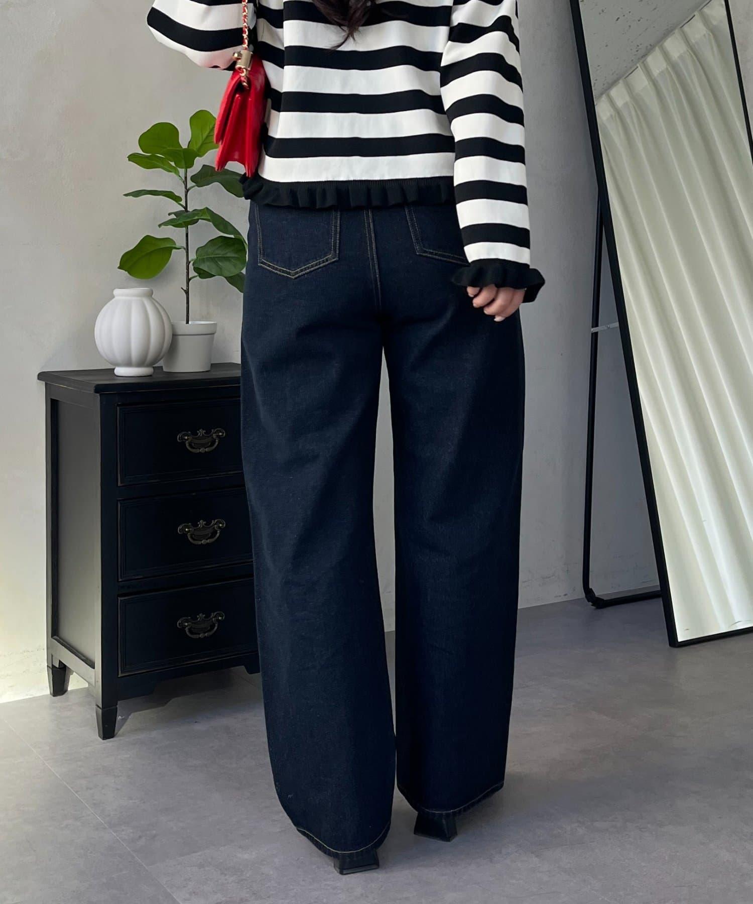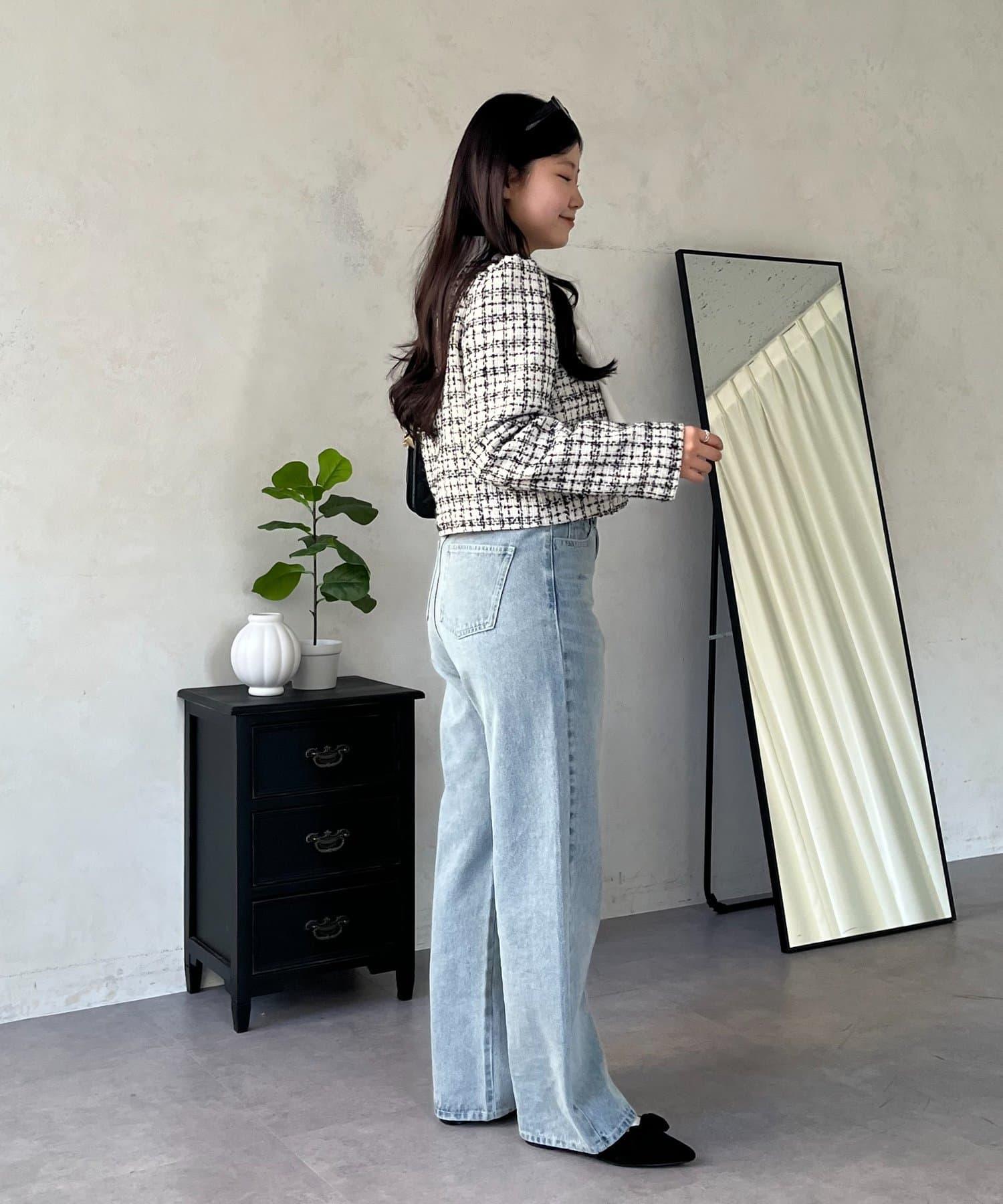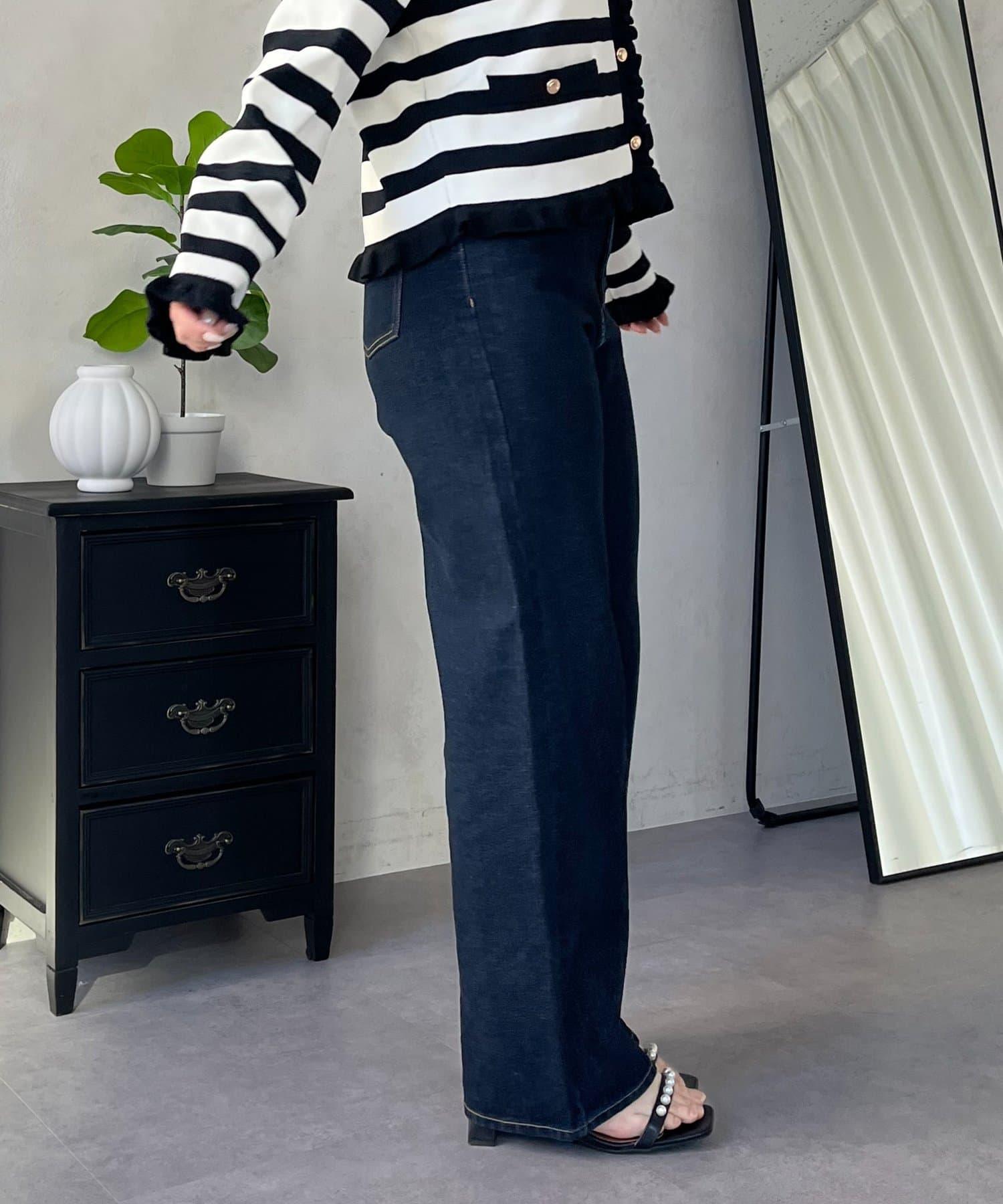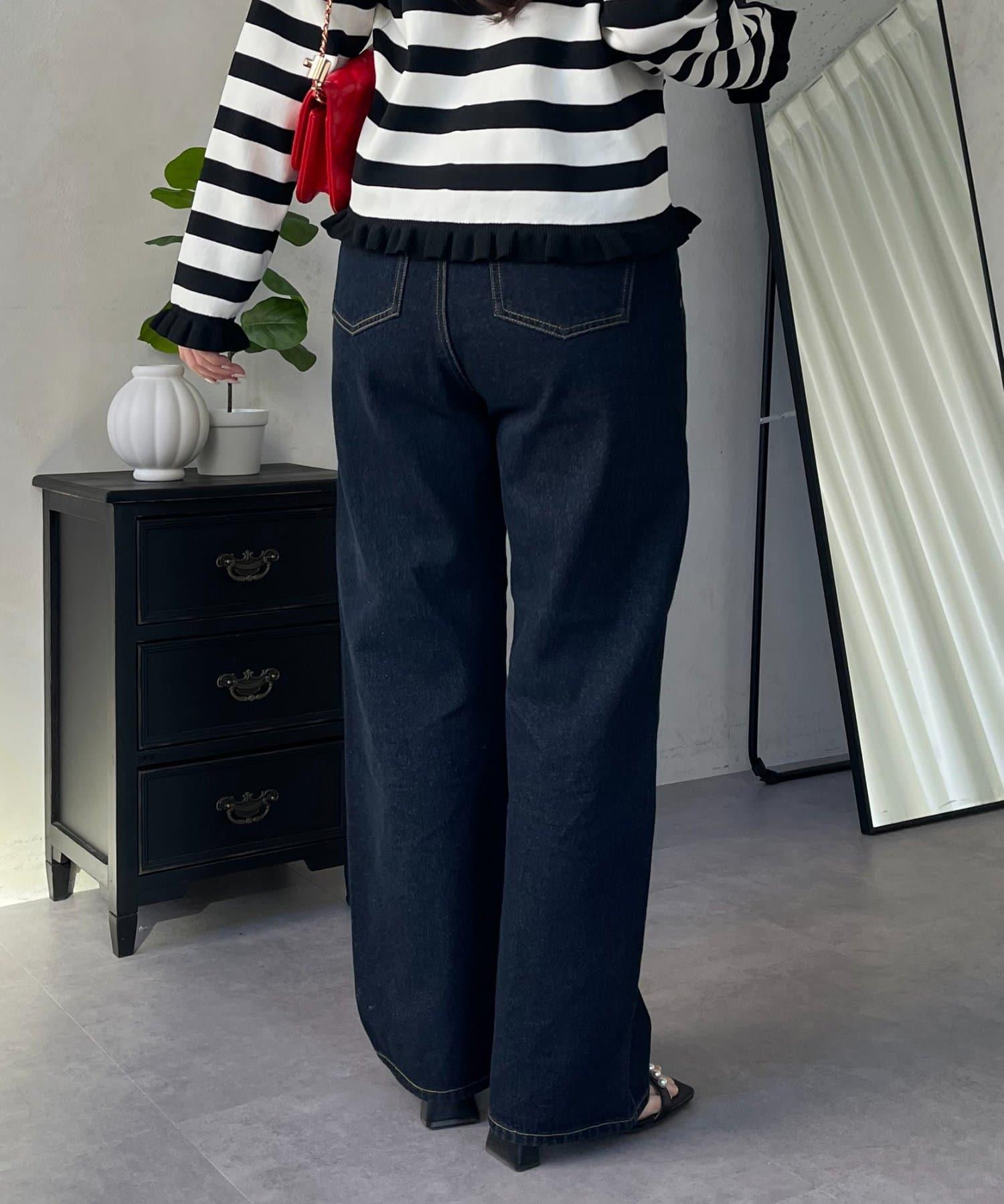 MIO 可調節按鈕直筒牛仔面料牛仔褲