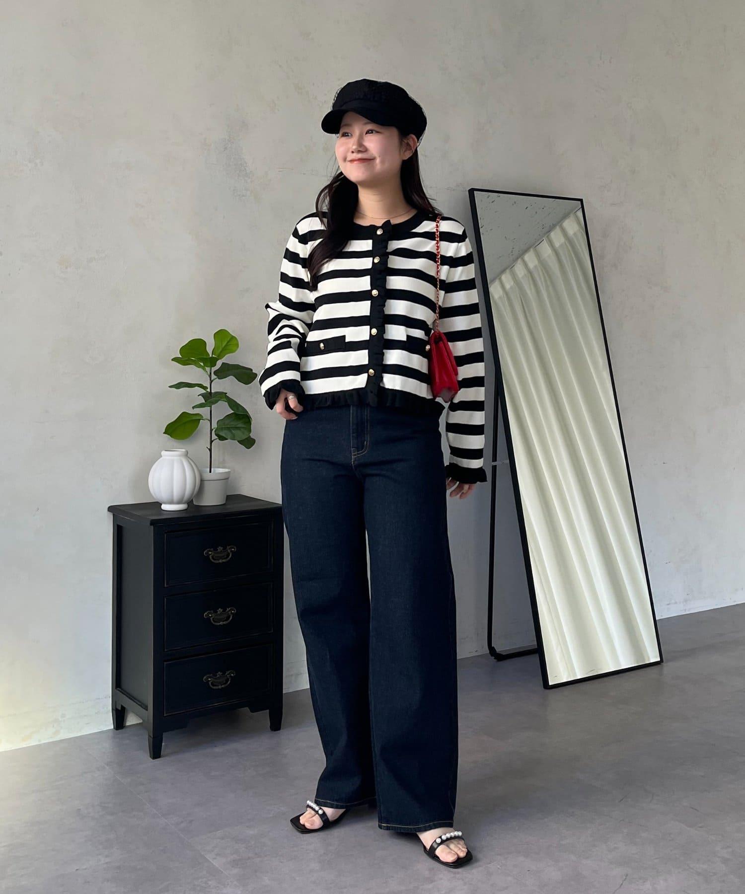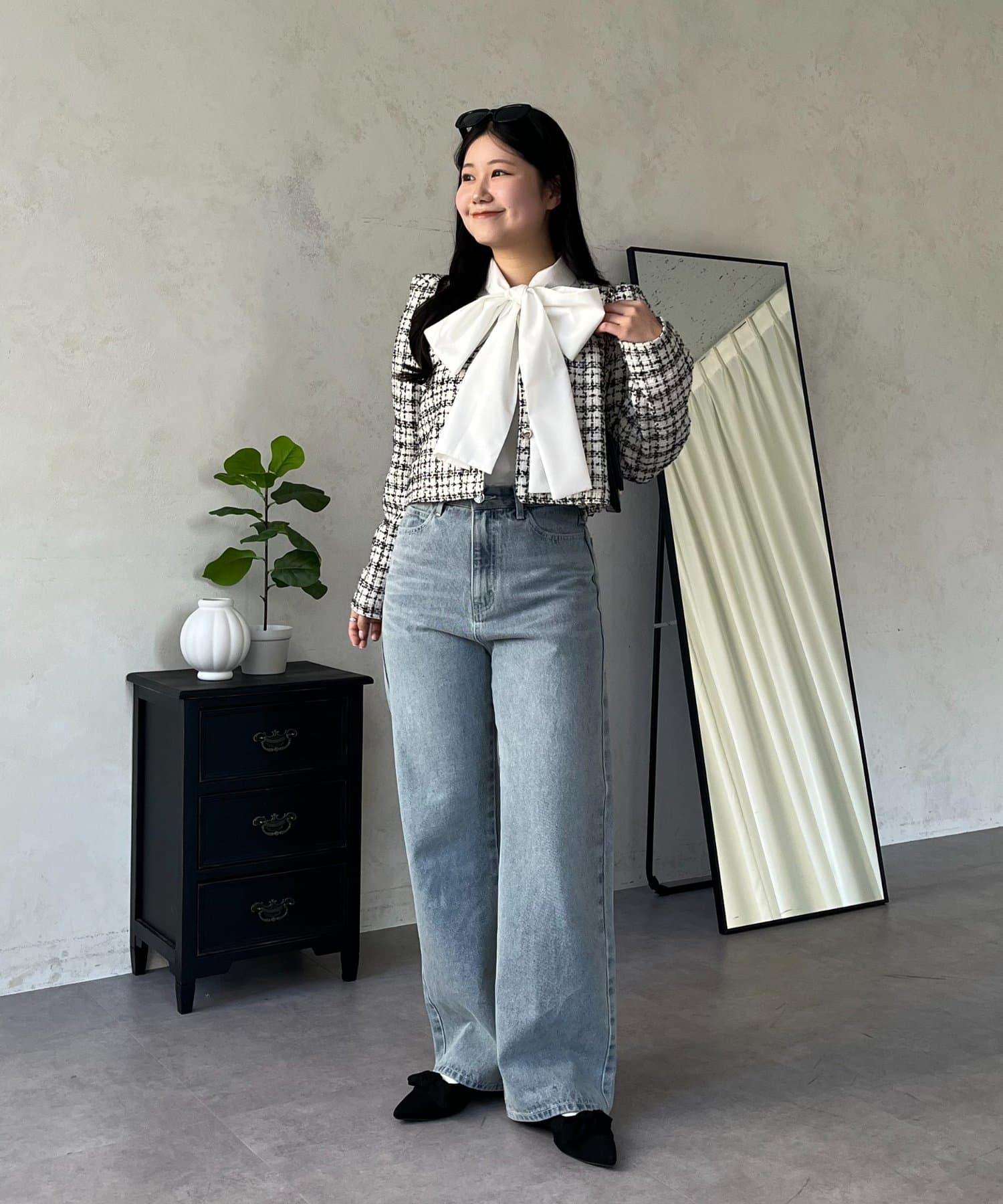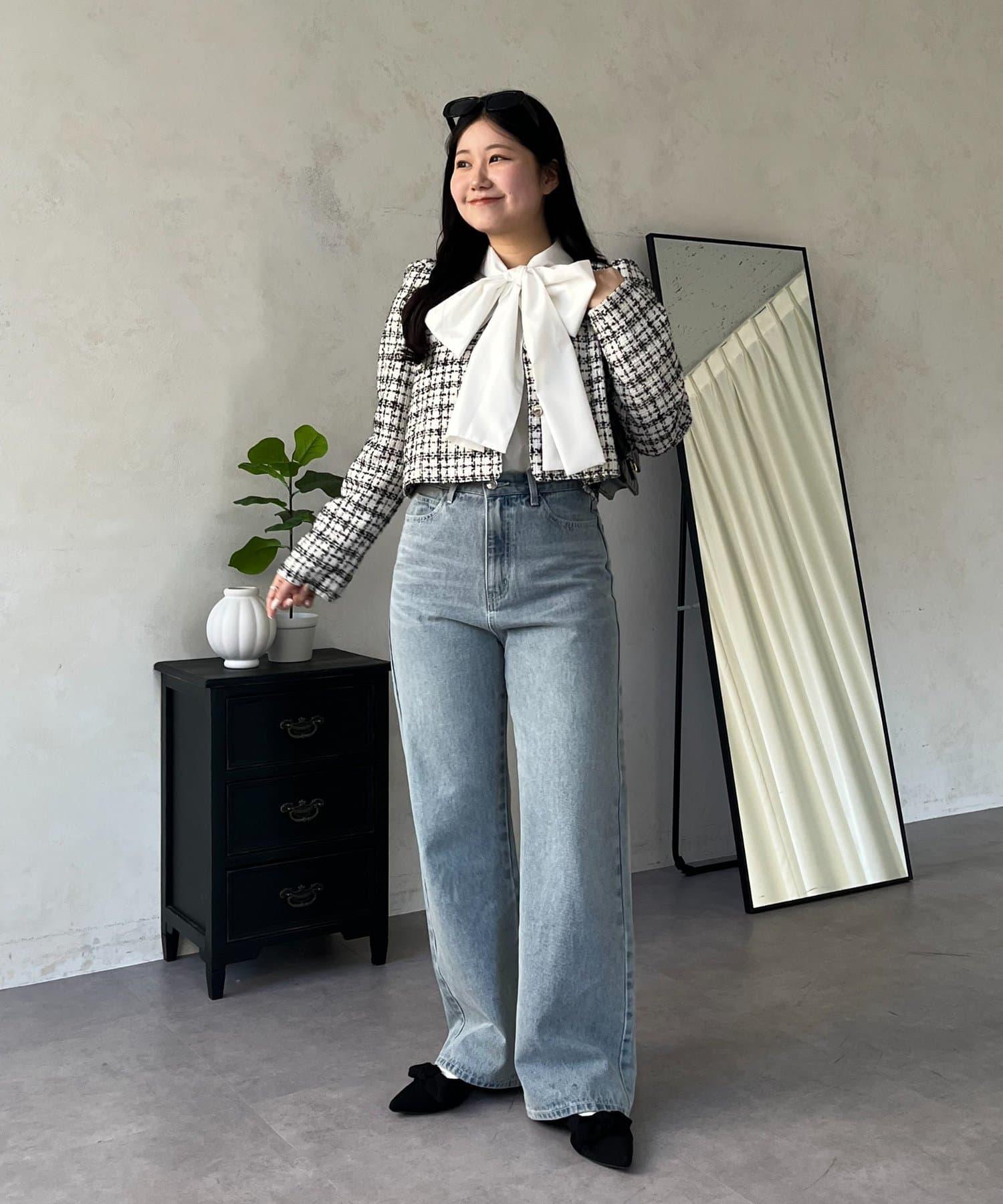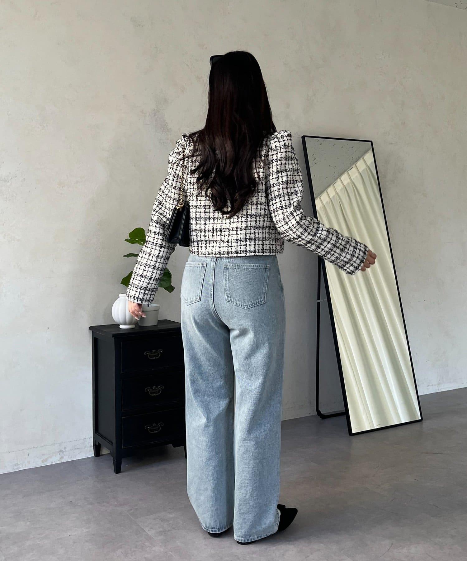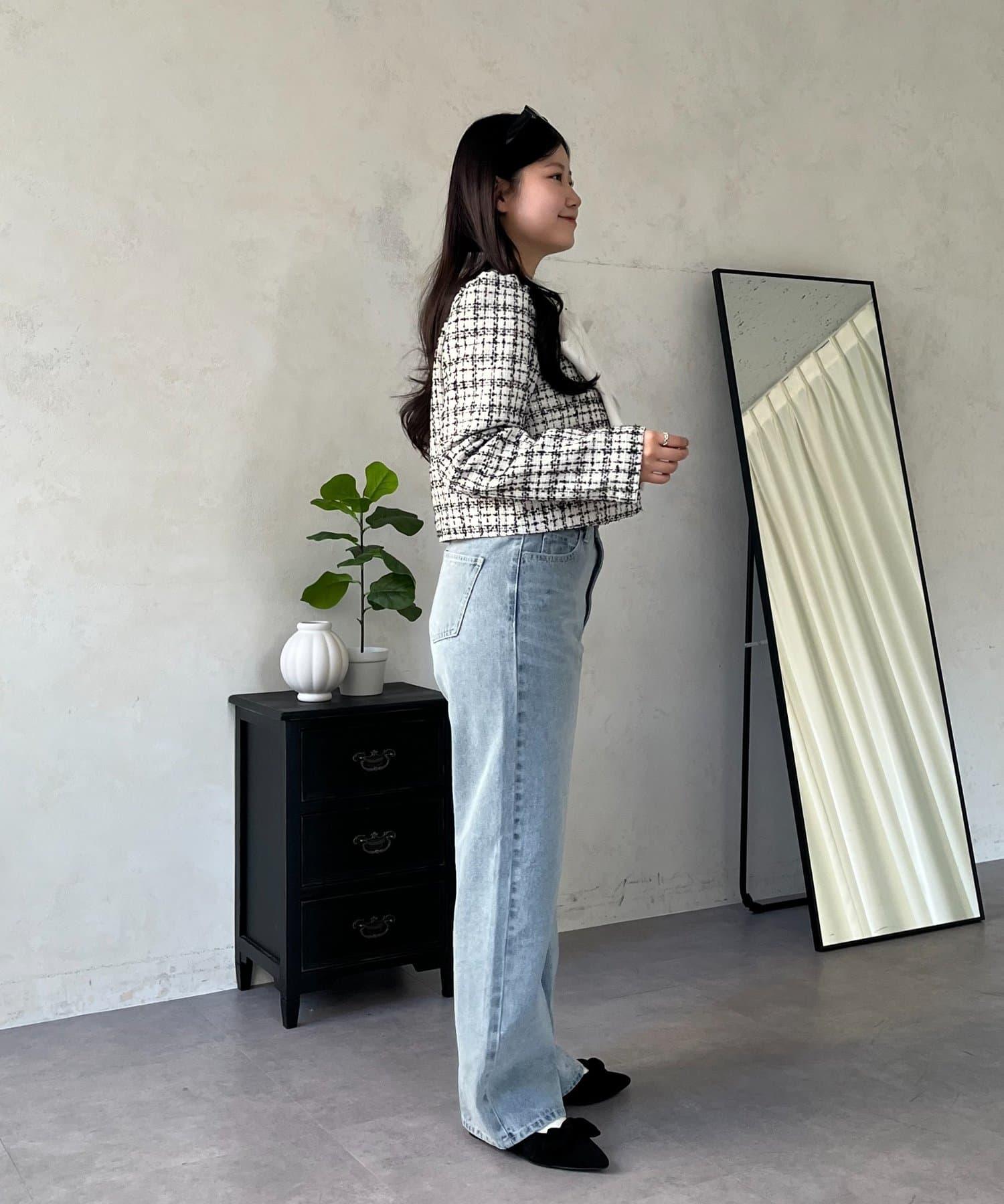 MIO 可調節按鈕直筒牛仔面料牛仔褲