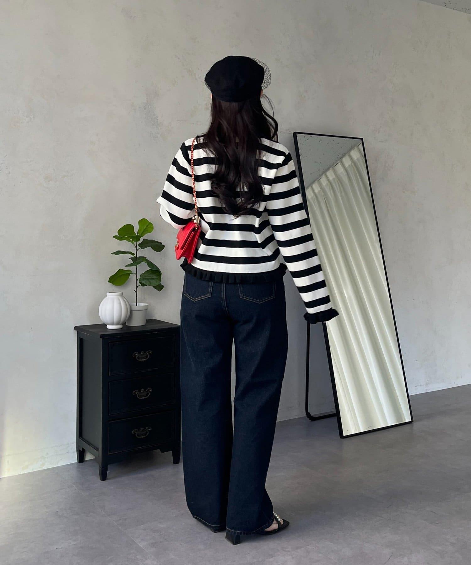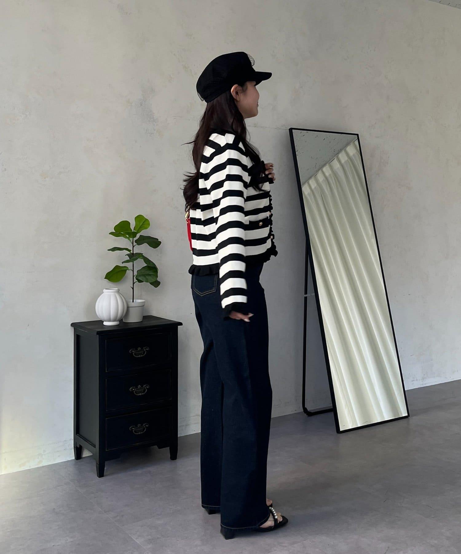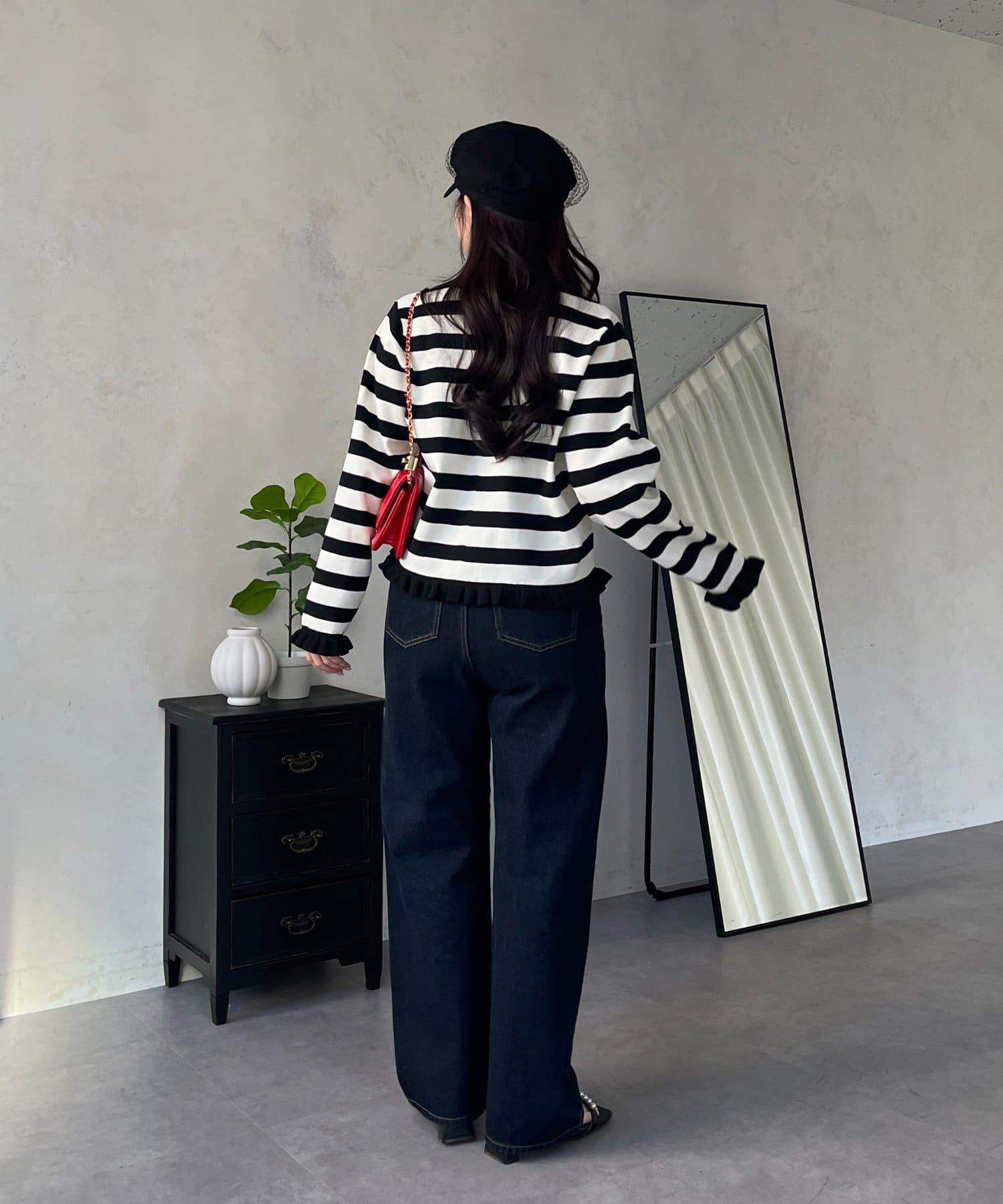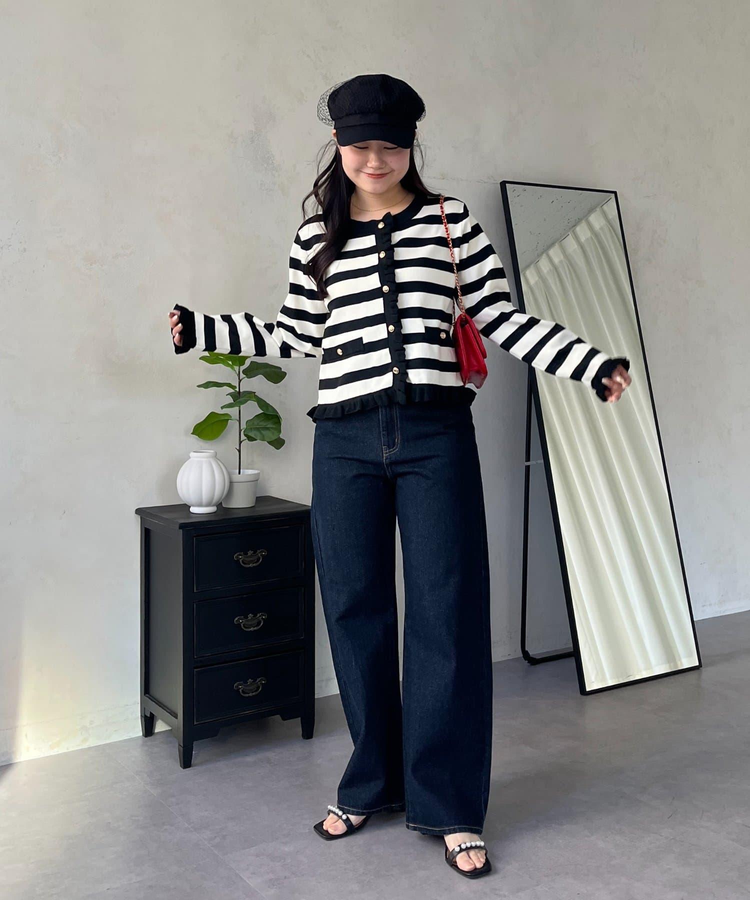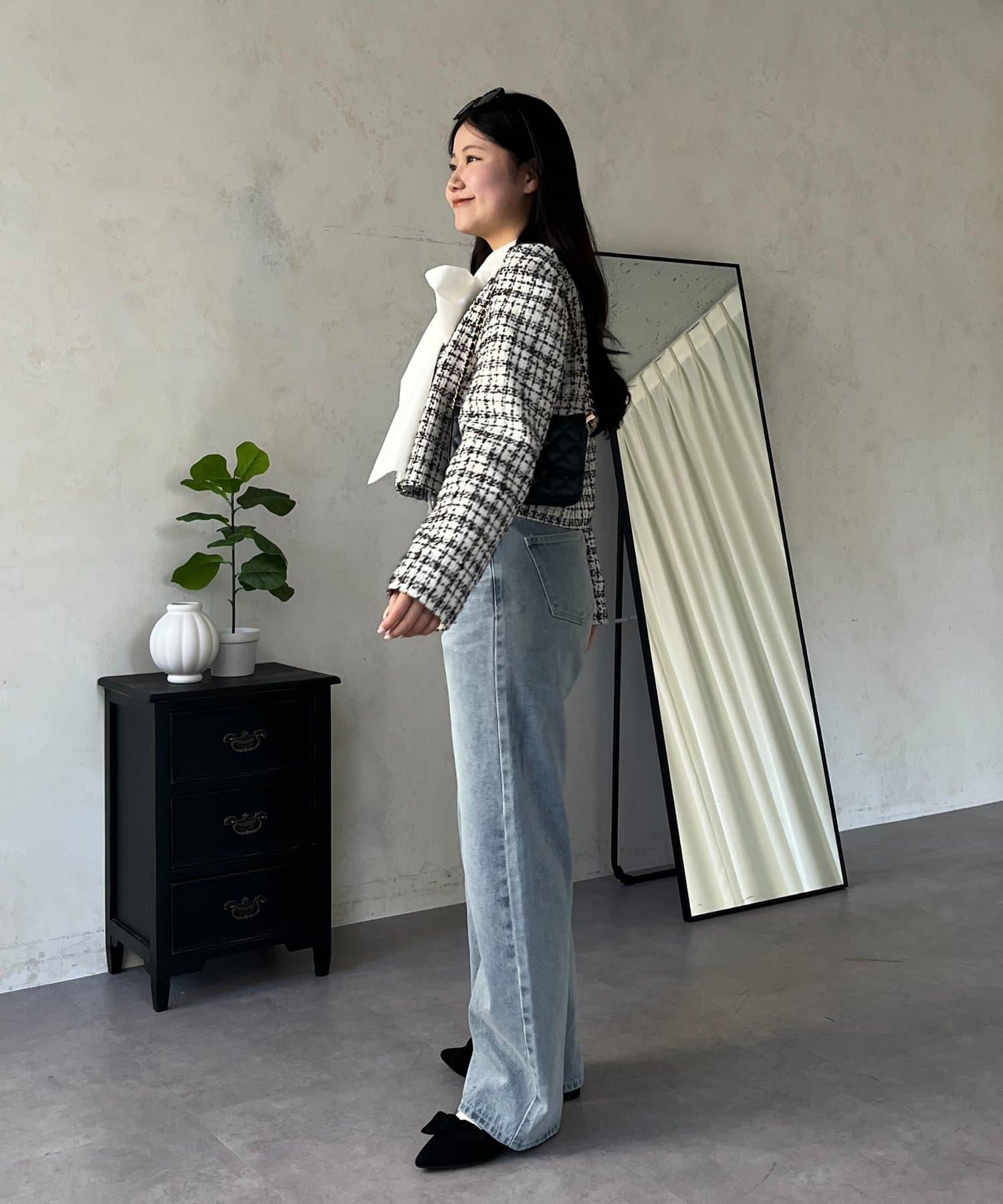 MIO 可調節按鈕直筒牛仔面料牛仔褲