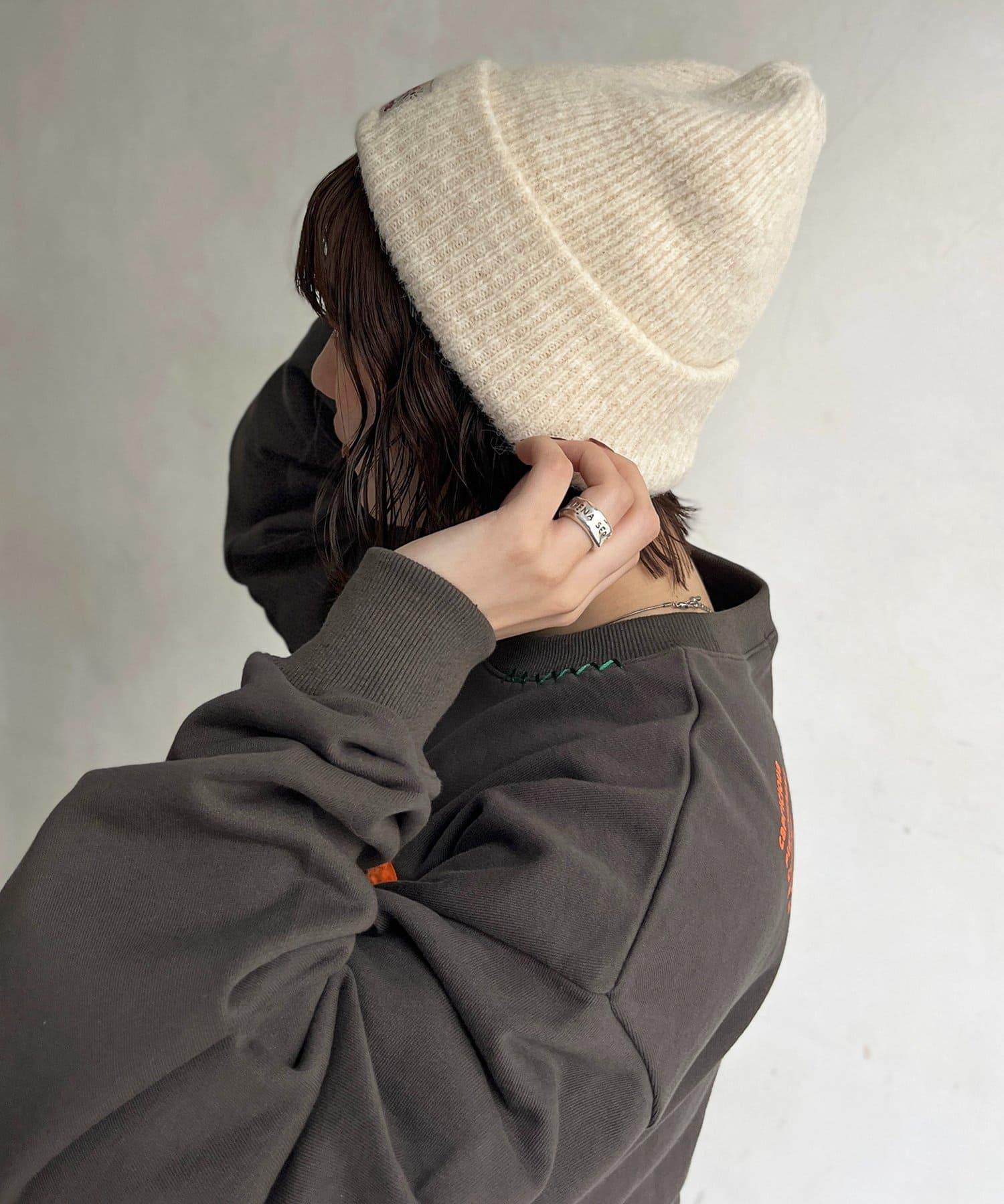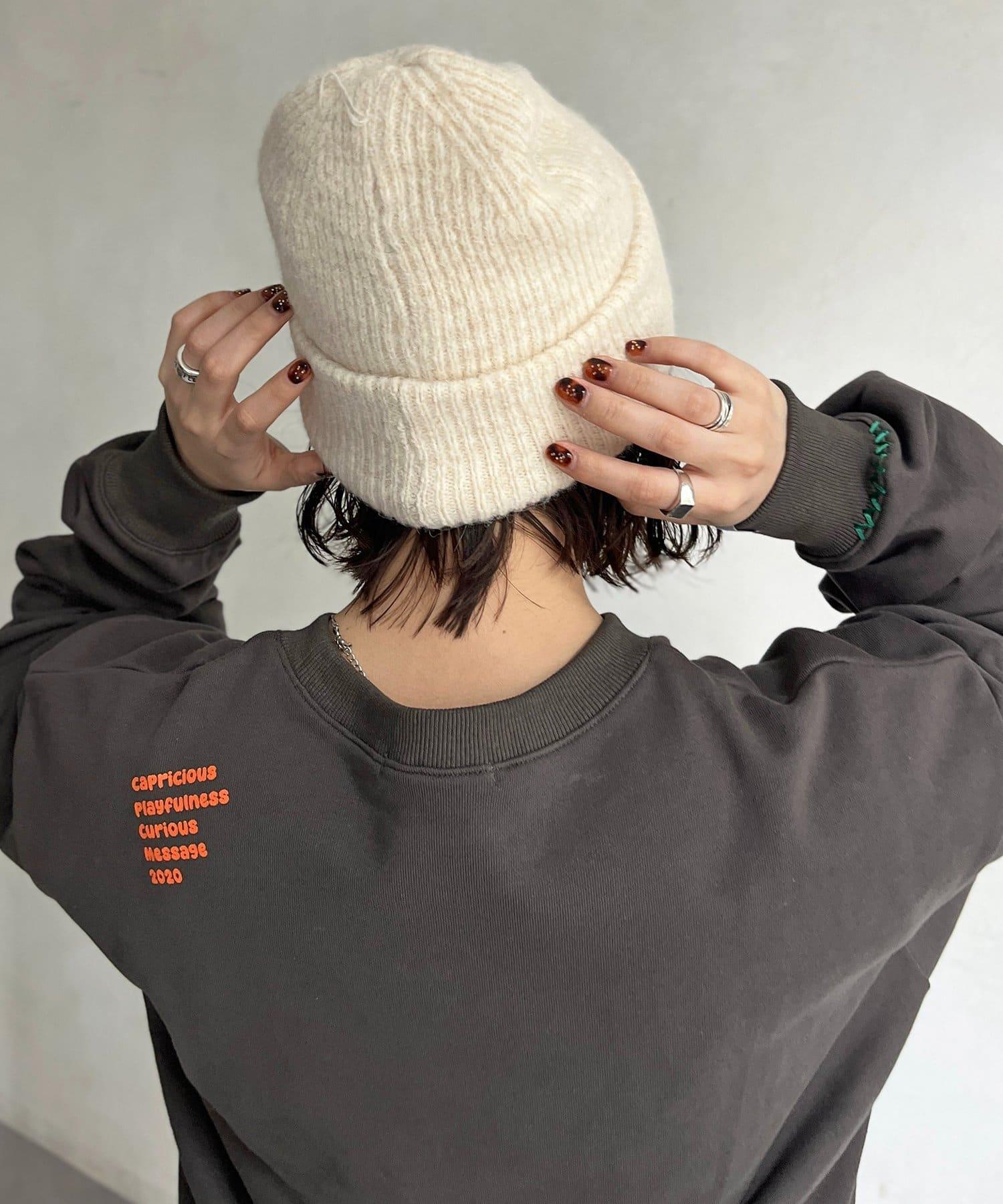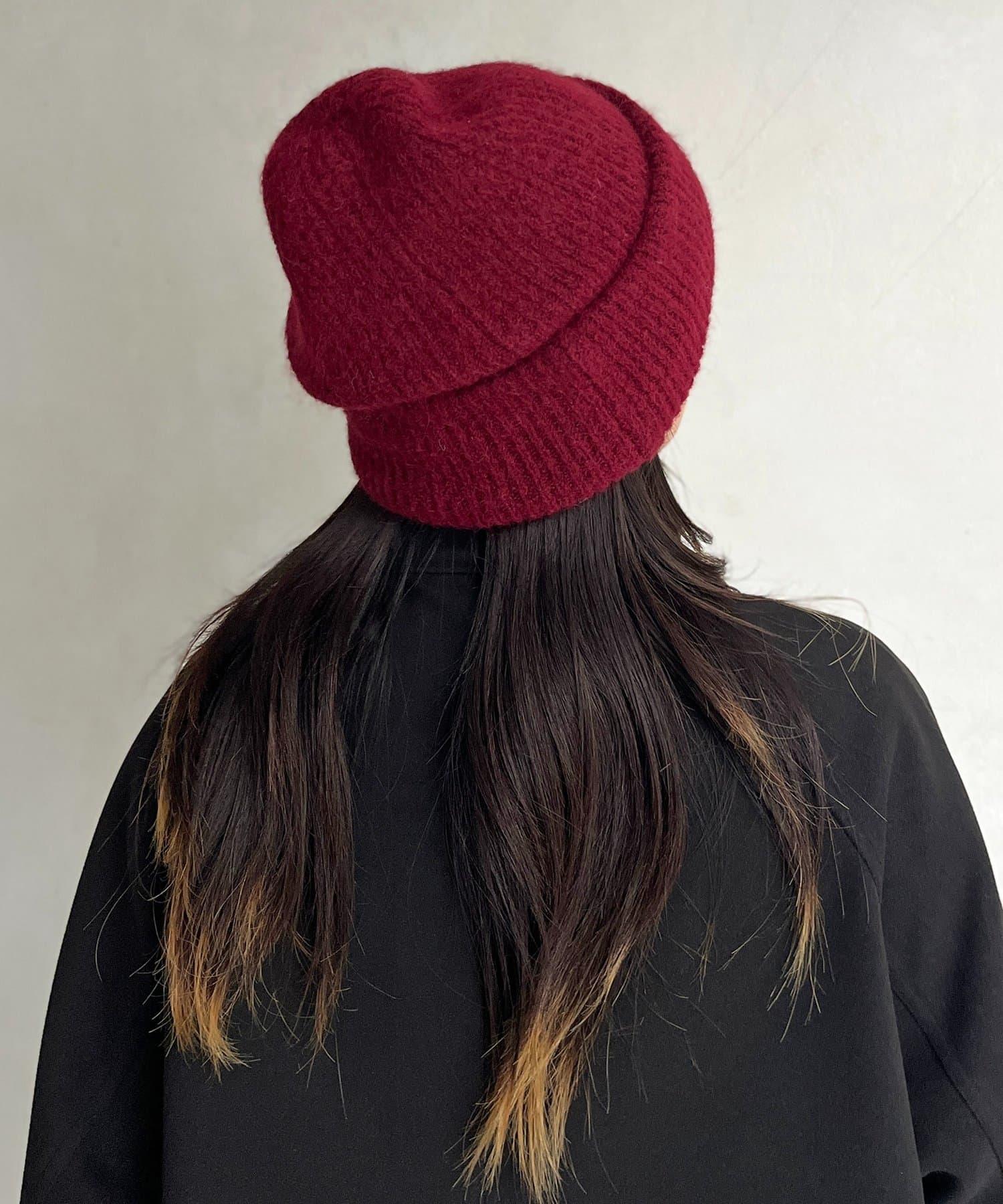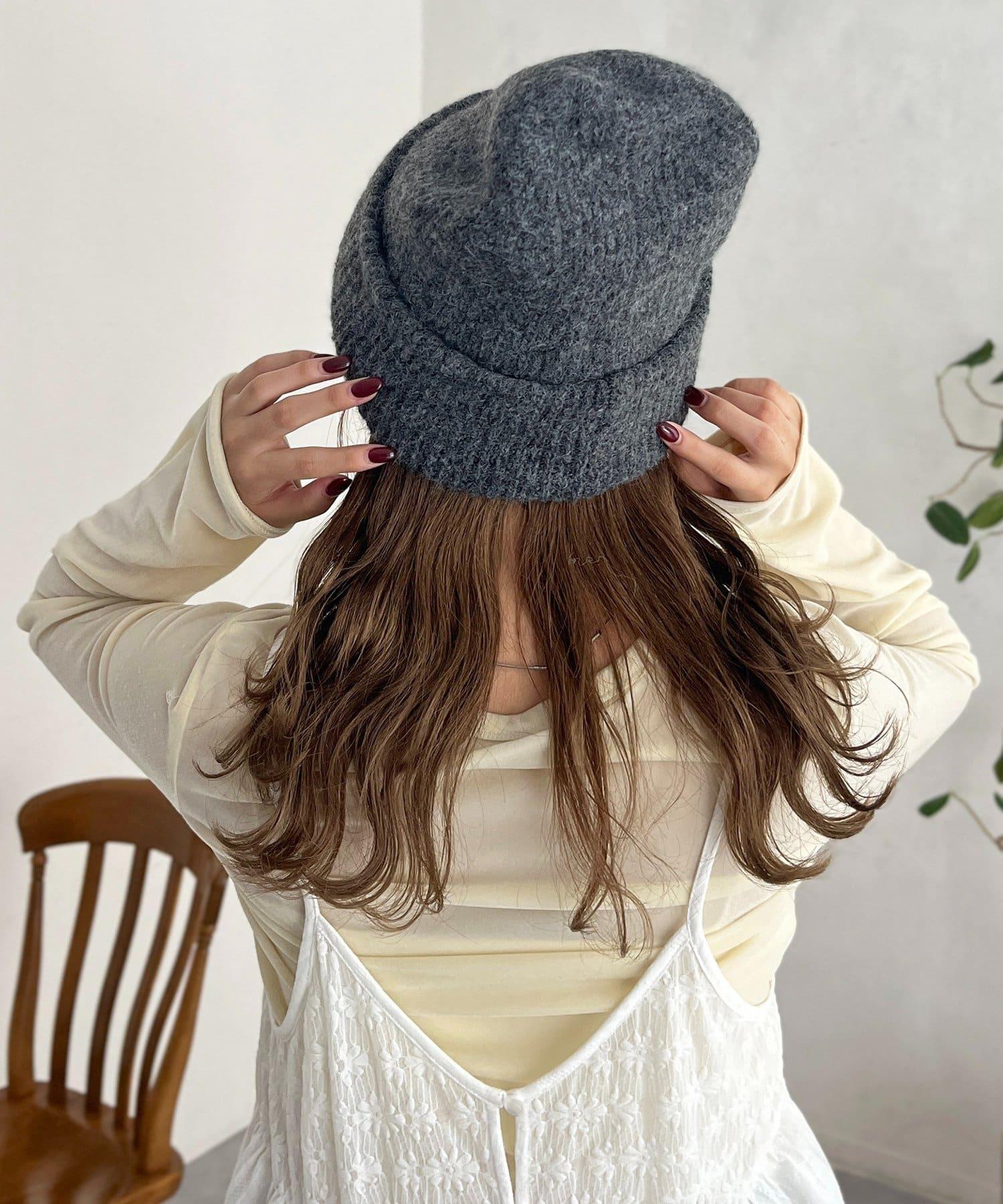 一款蓬鬆的針織帽,紗線的混合恰到好處。