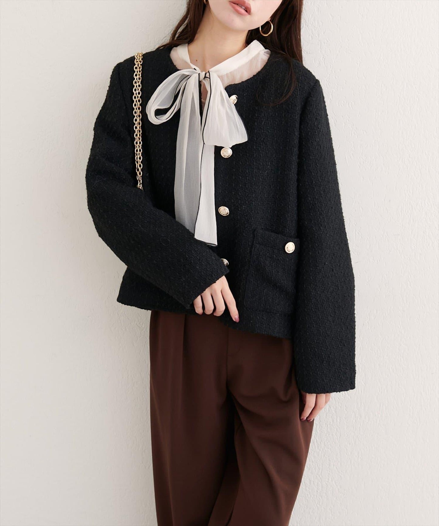 無領設計整齊地露出頸部,凸顯女性魅力。