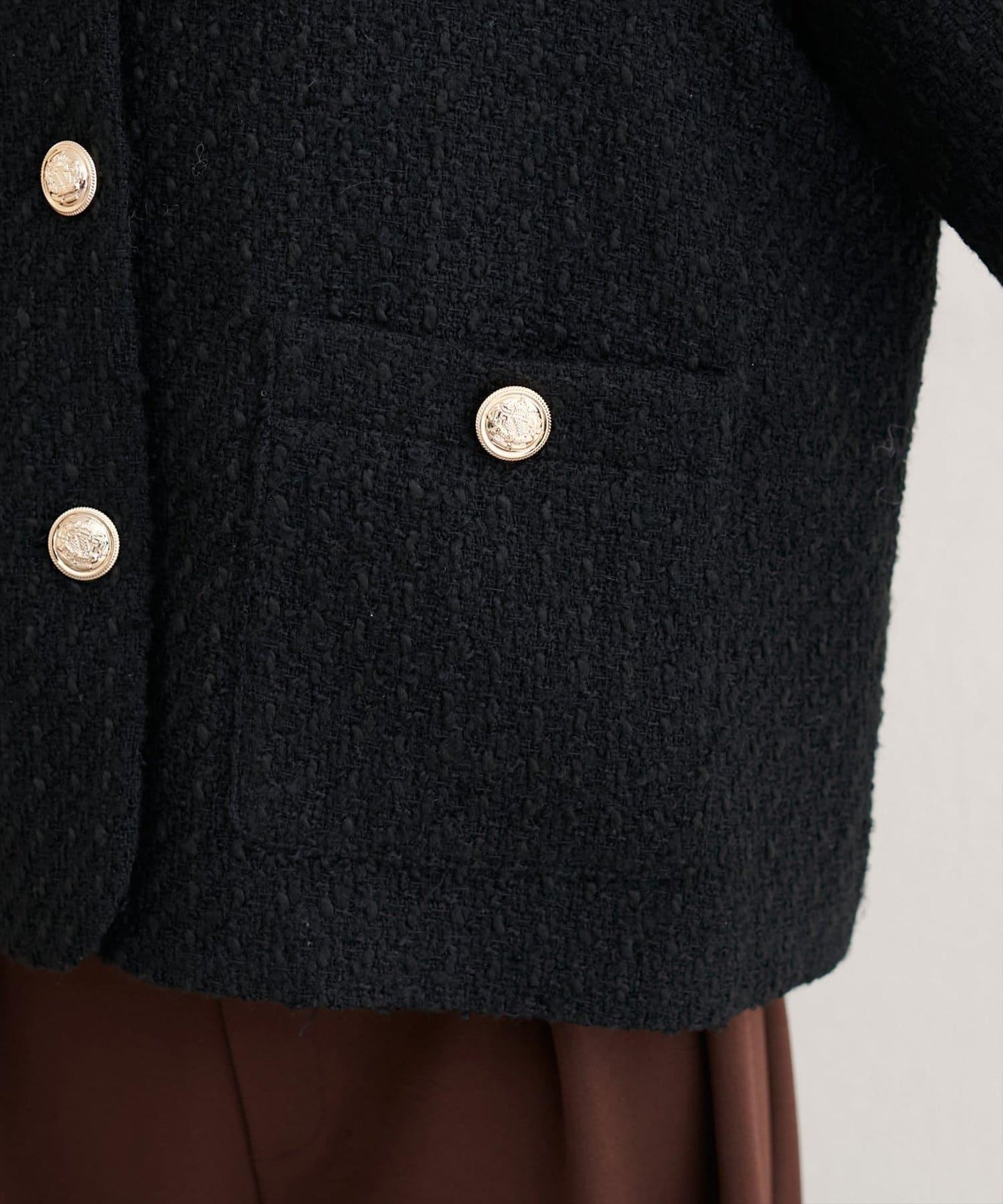 MIX 無領斜紋軟呢外套,外觀整潔時尚。