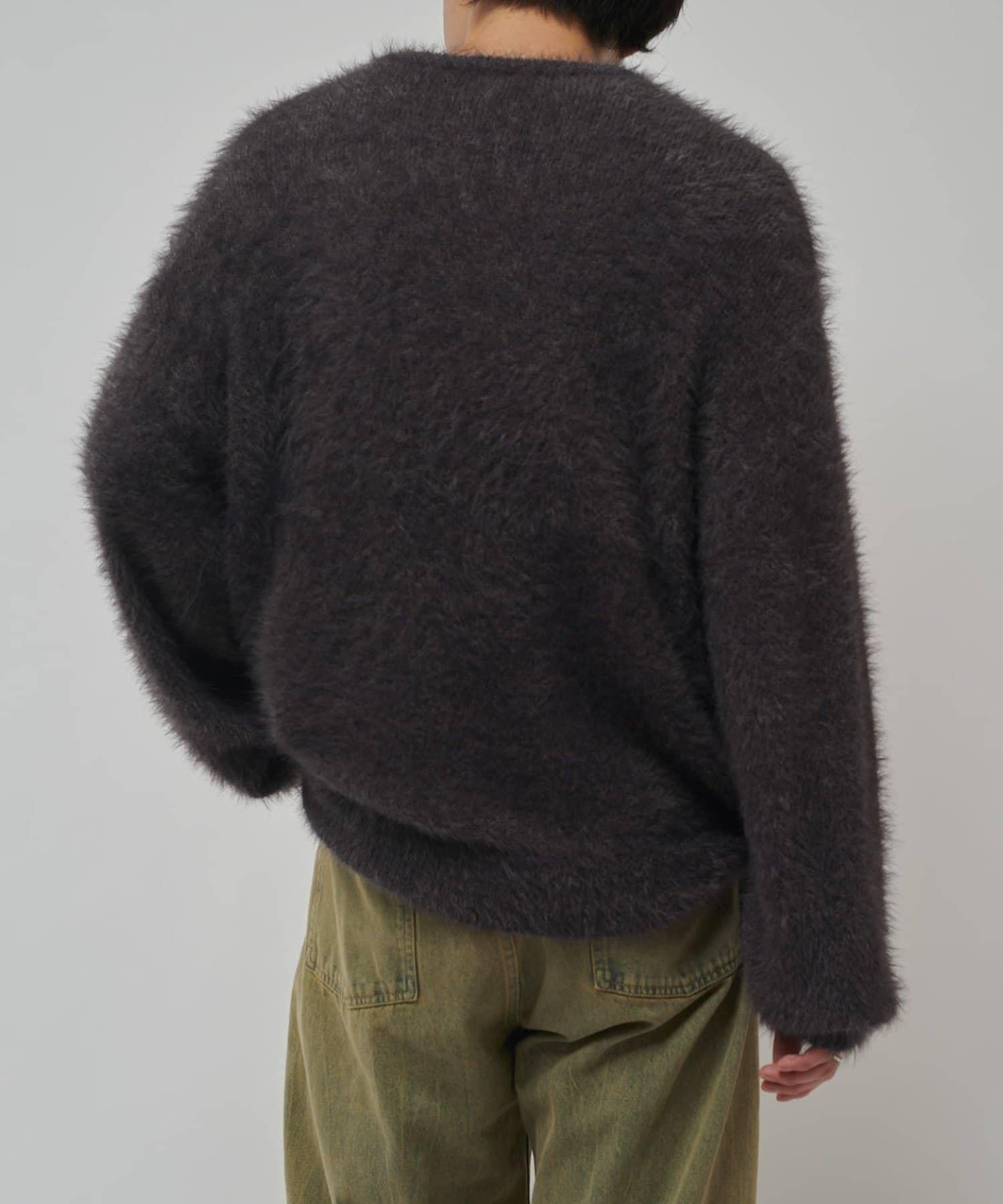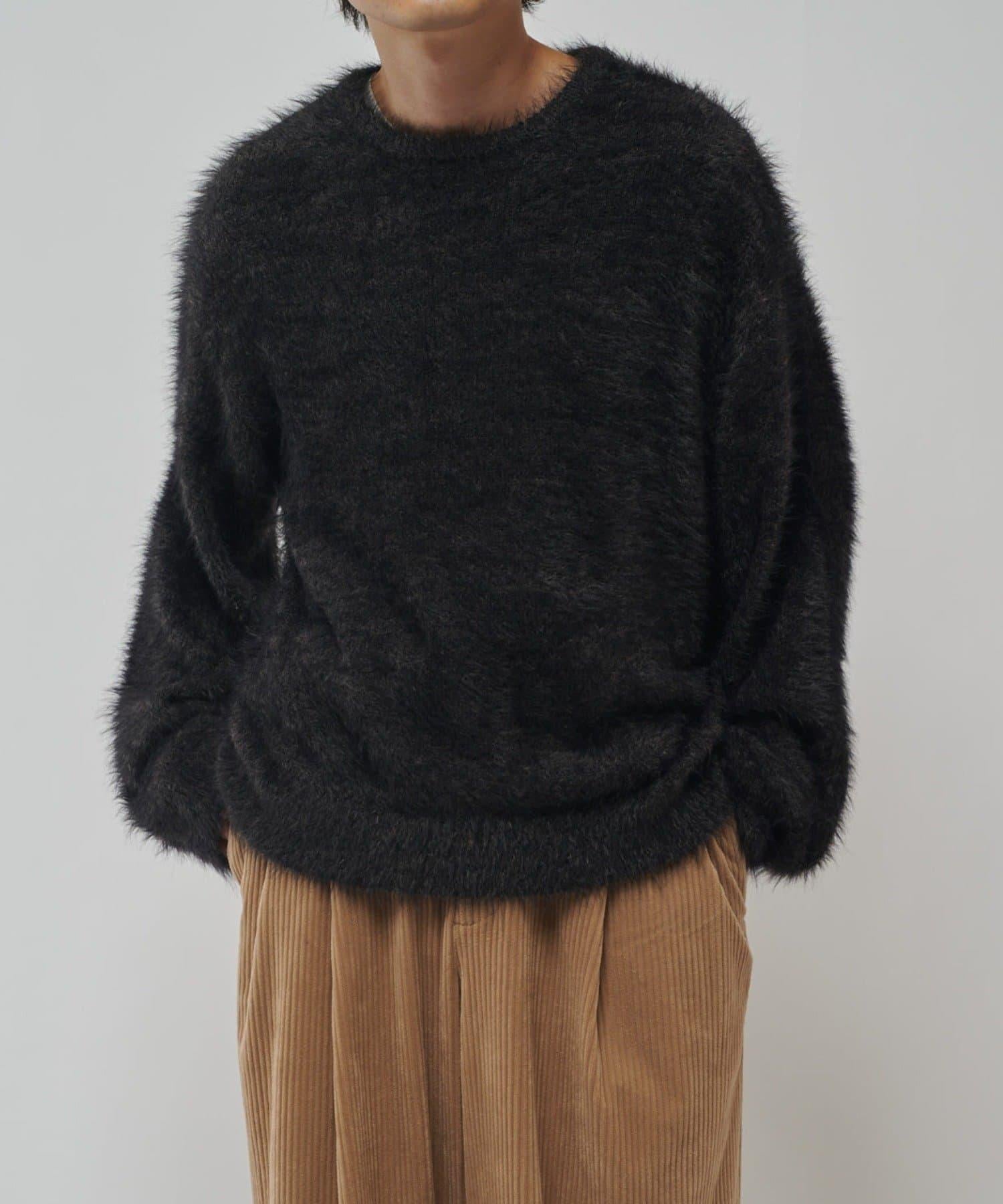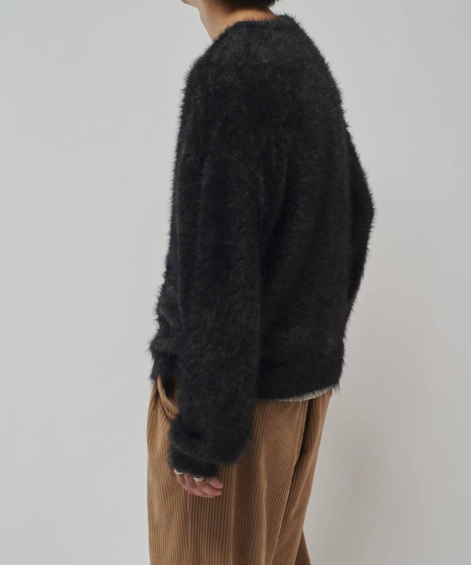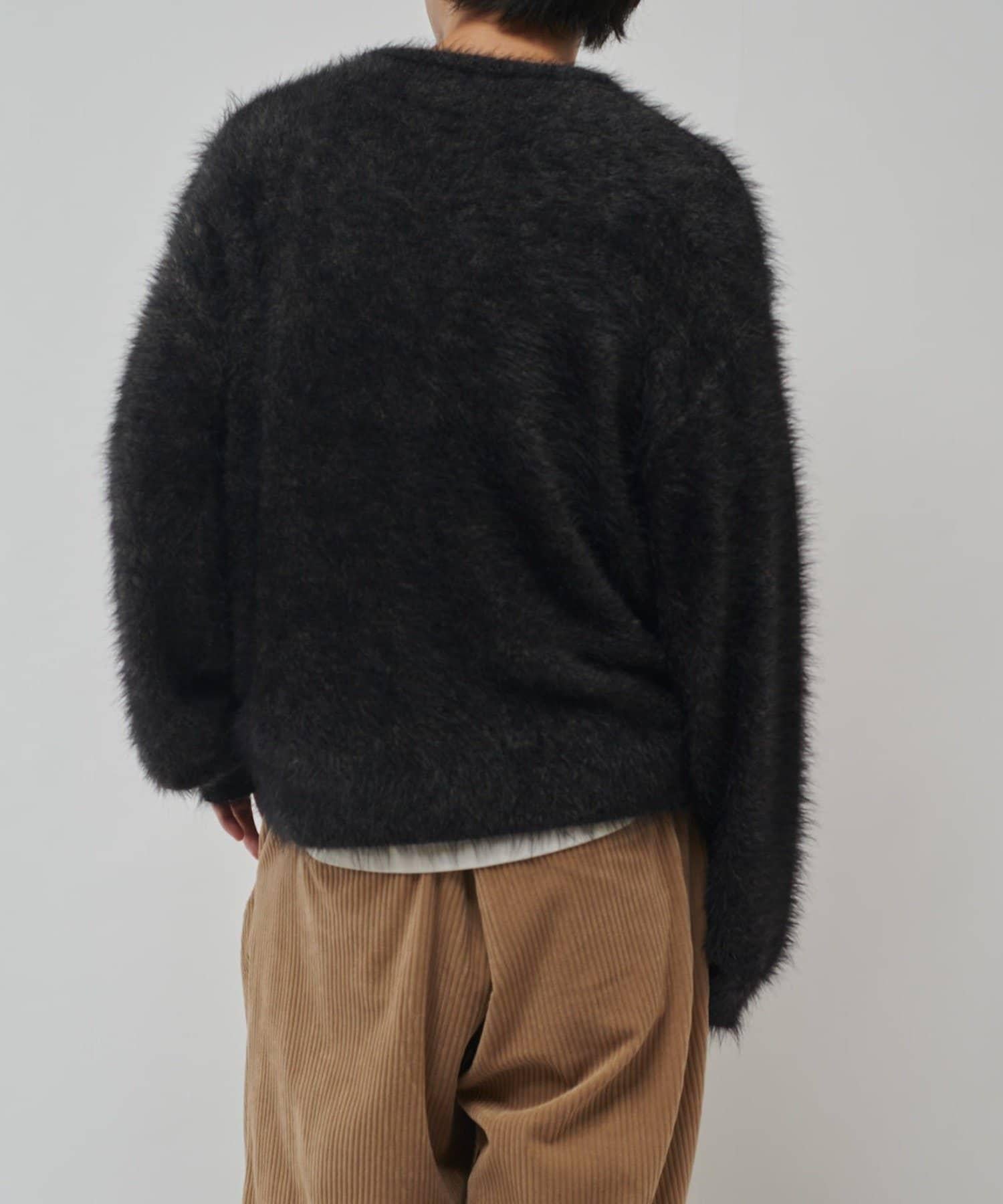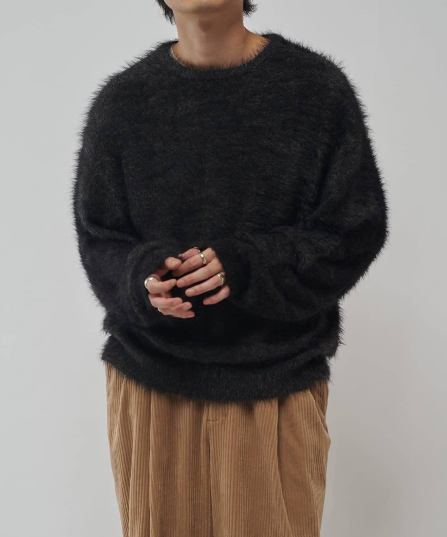 長毛絨針織衫具有長毛絨材料特有的手感。它的寬度比一般的針織衫略寬,穿起來沒有緊繃感,可以毫無壓力地穿著。