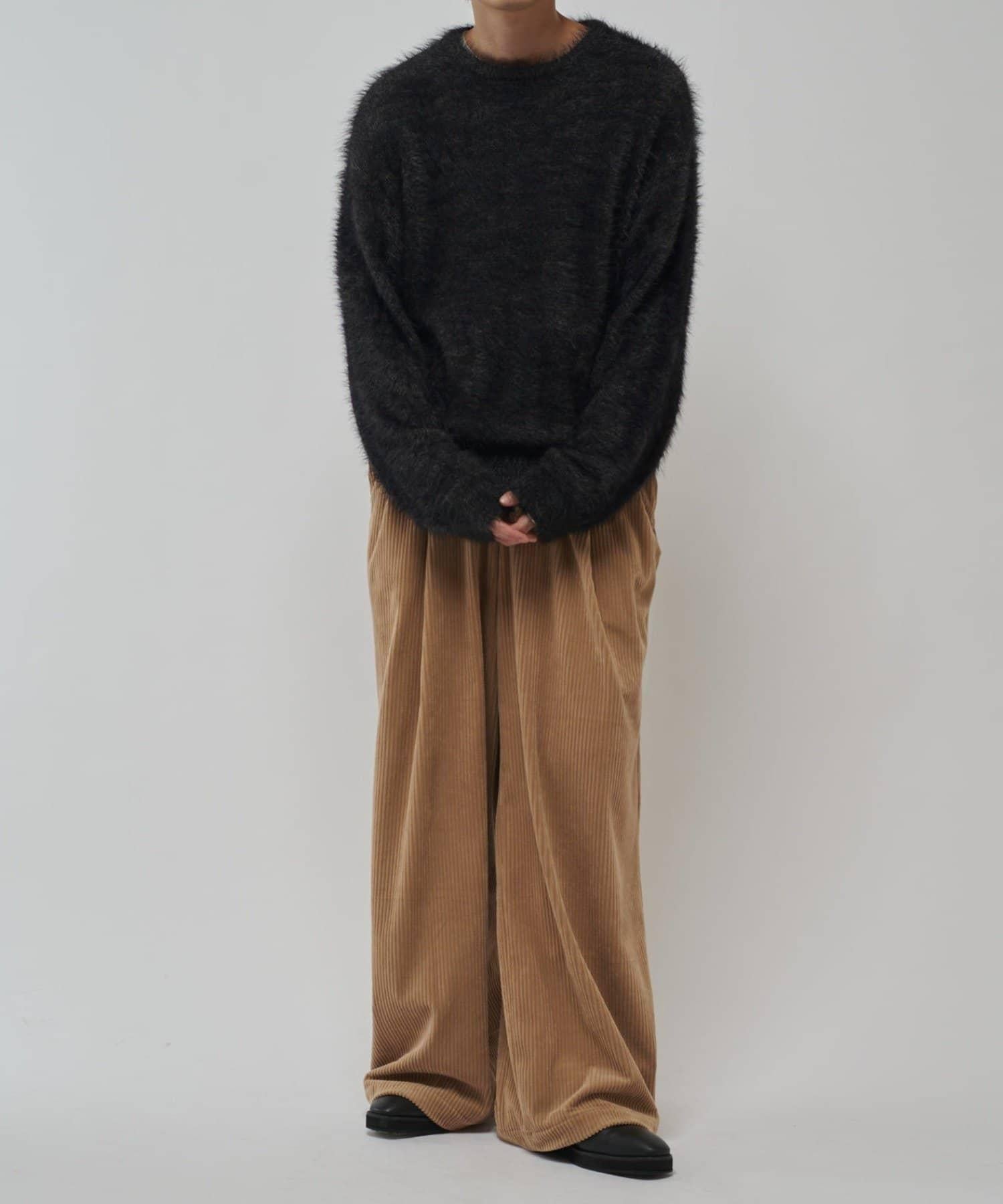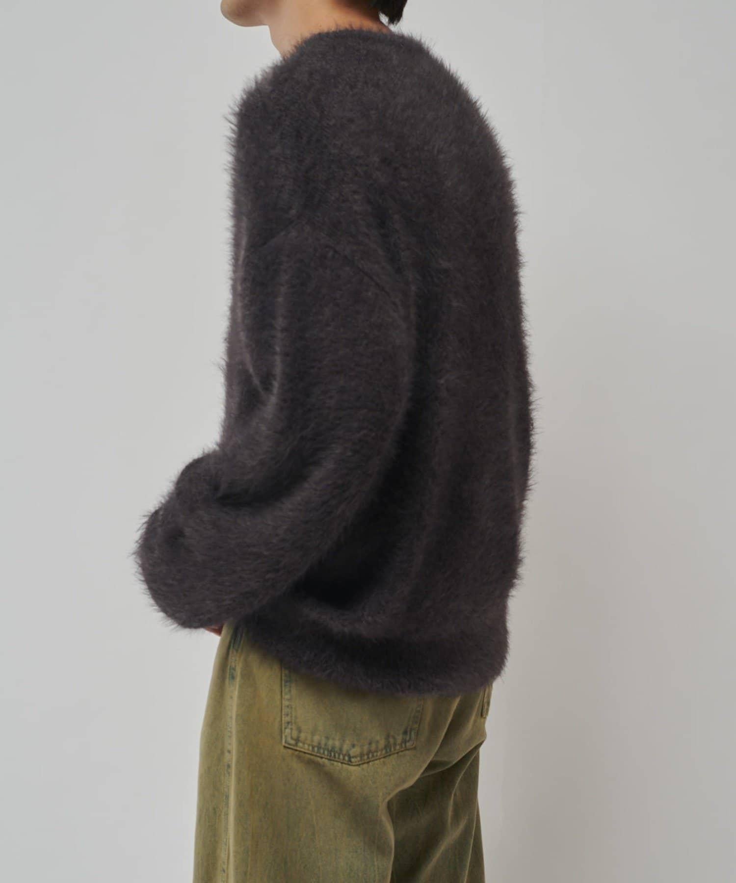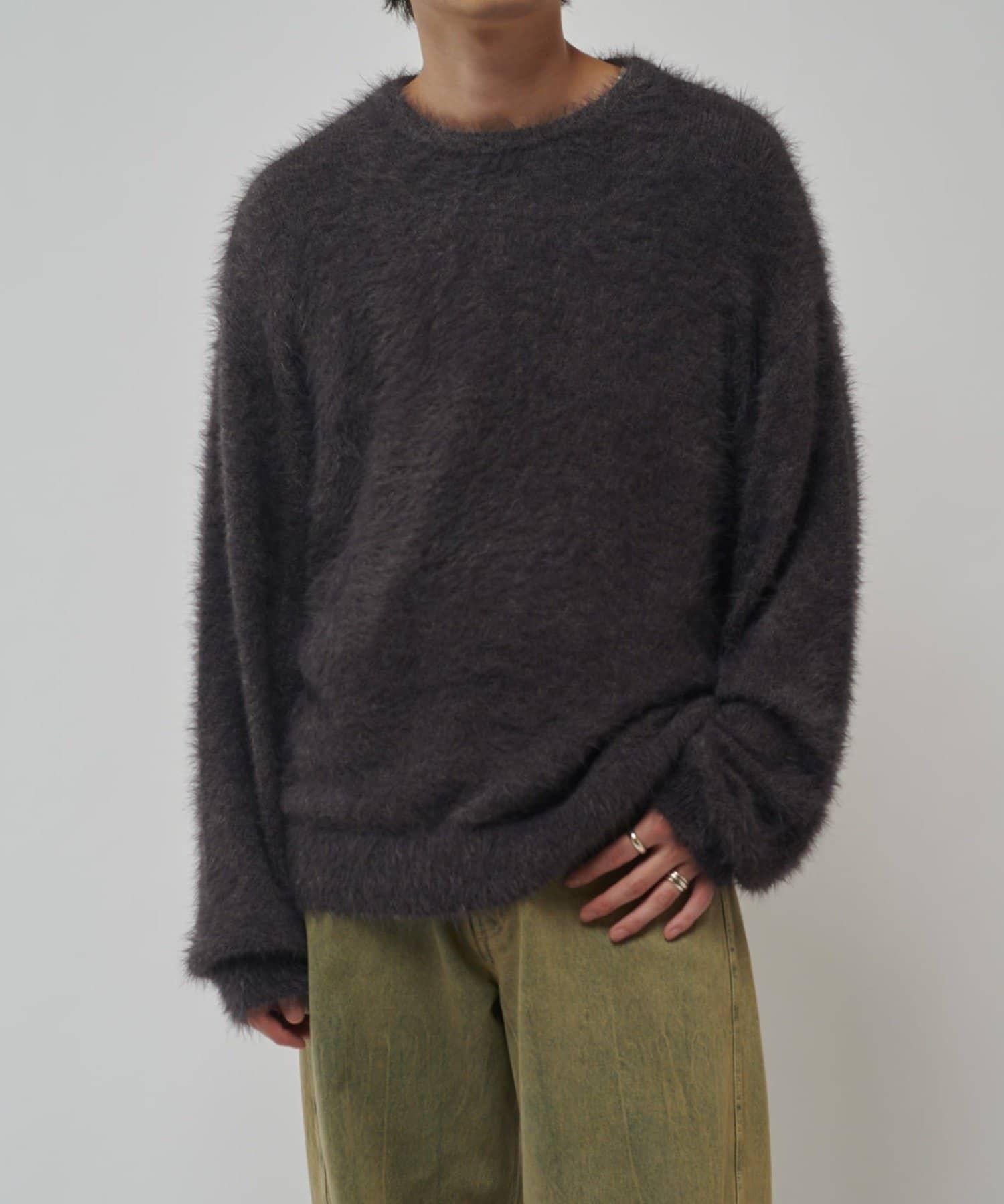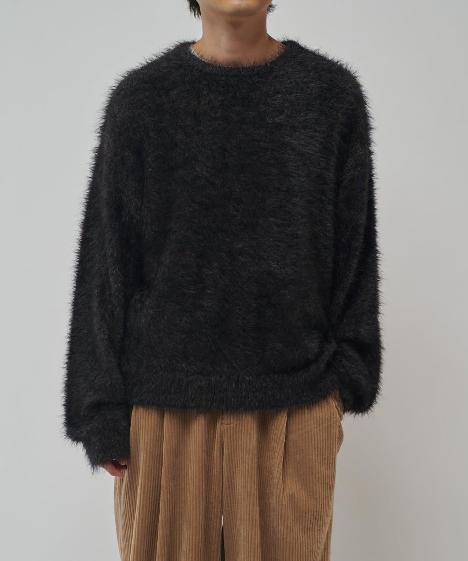 長毛絨針織衫具有長毛絨材料特有的手感。它的寬度比一般的針織衫略寬,穿起來沒有緊繃感,可以毫無壓力地穿著。