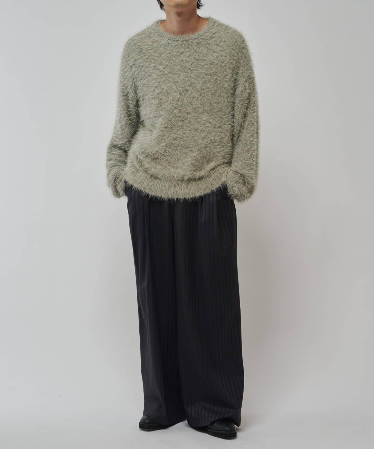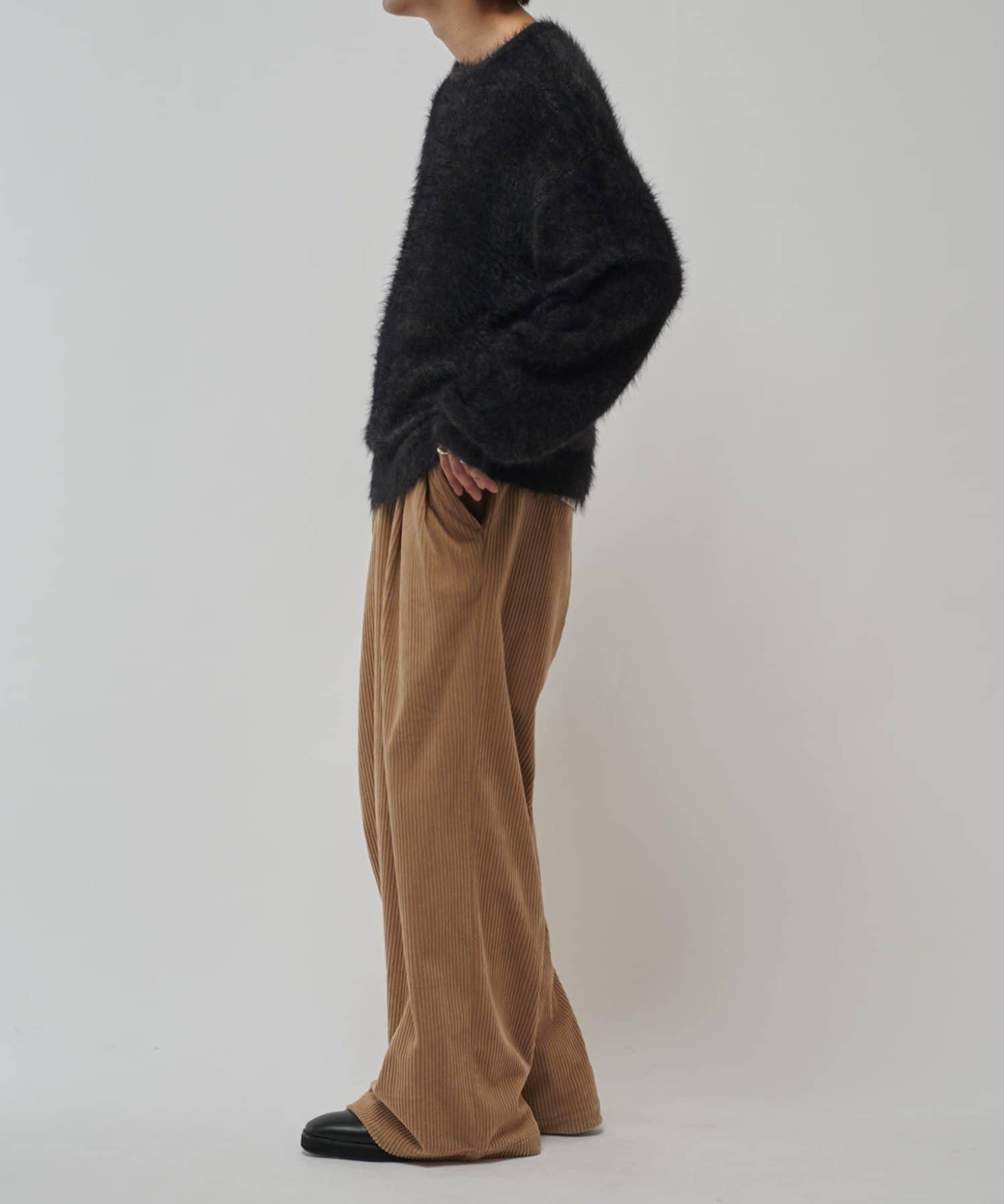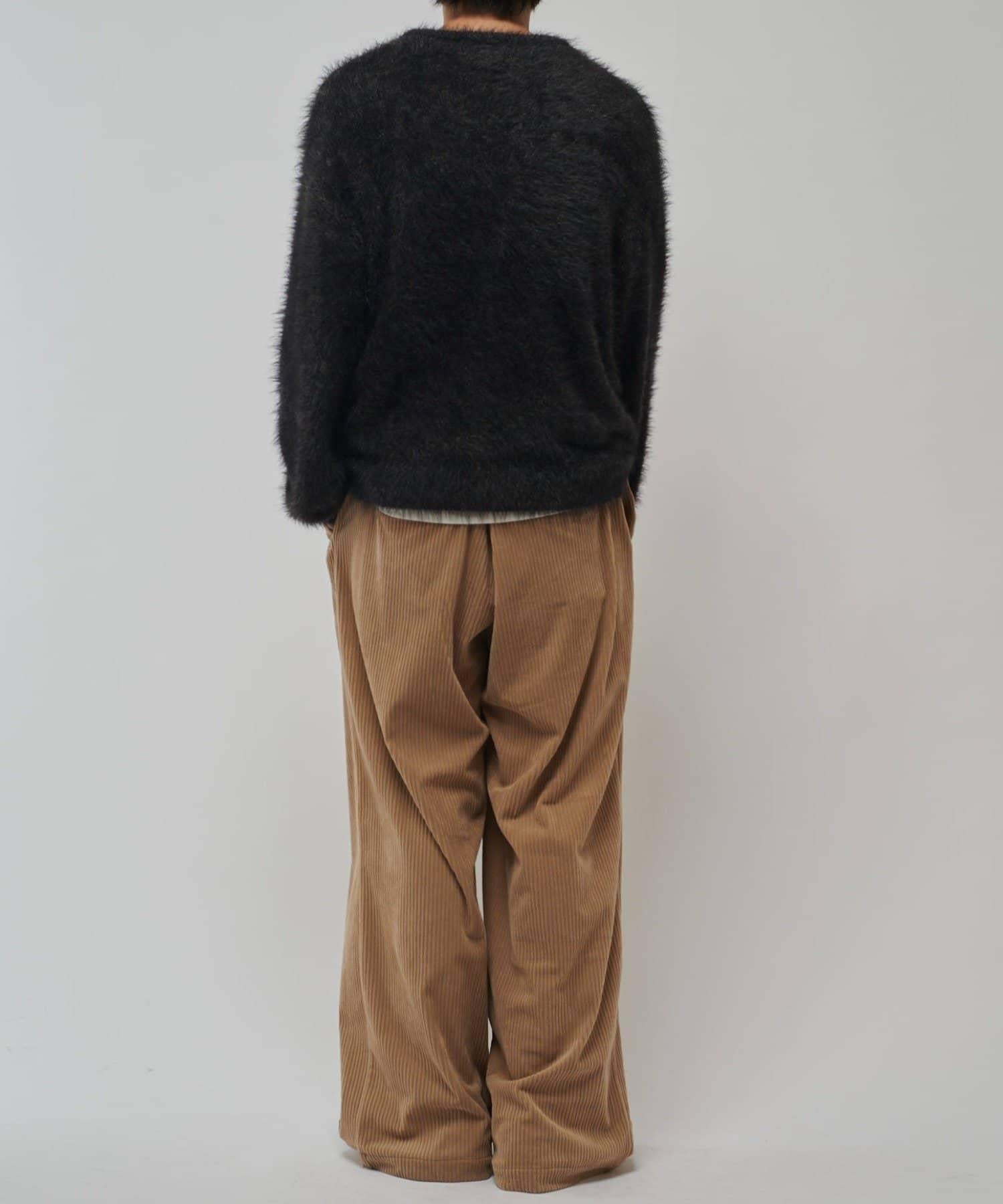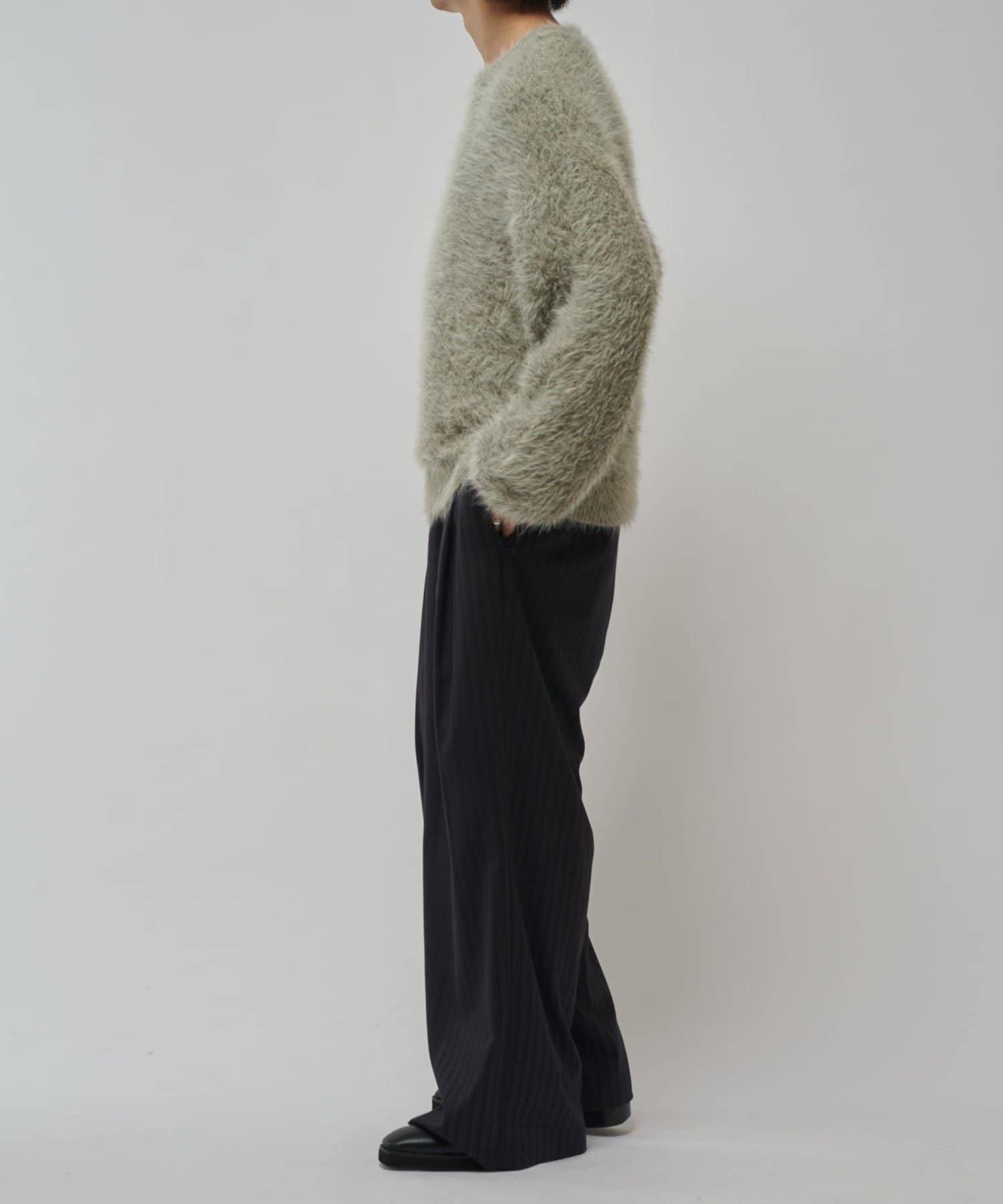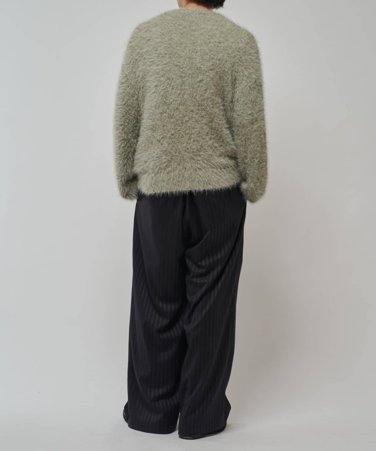 長毛絨針織衫具有長毛絨材料特有的手感。它的寬度比一般的針織衫略寬,穿起來沒有緊繃感,可以毫無壓力地穿著。