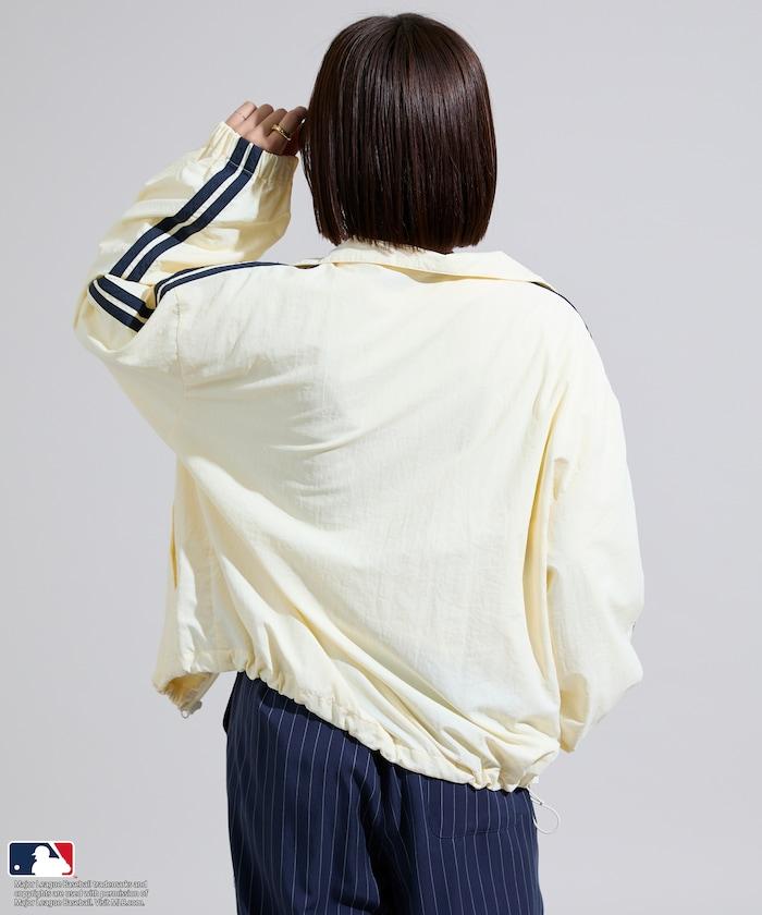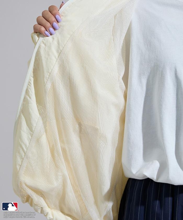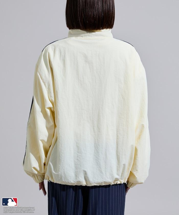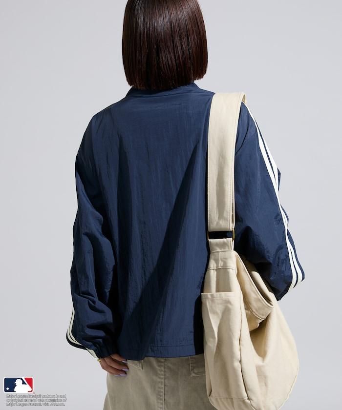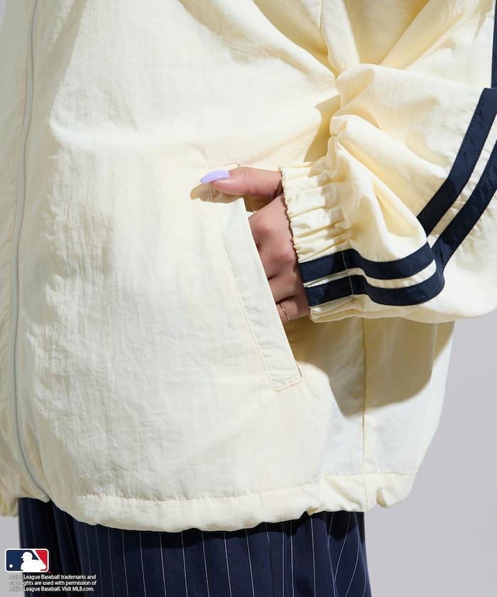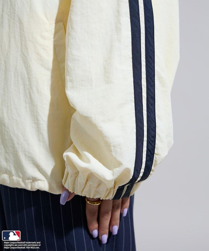 尼龍罩衫,帶有運動風格的 MLB 徽標和線條。