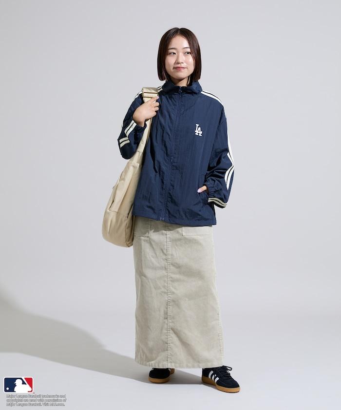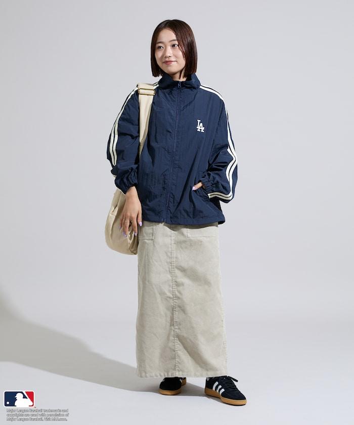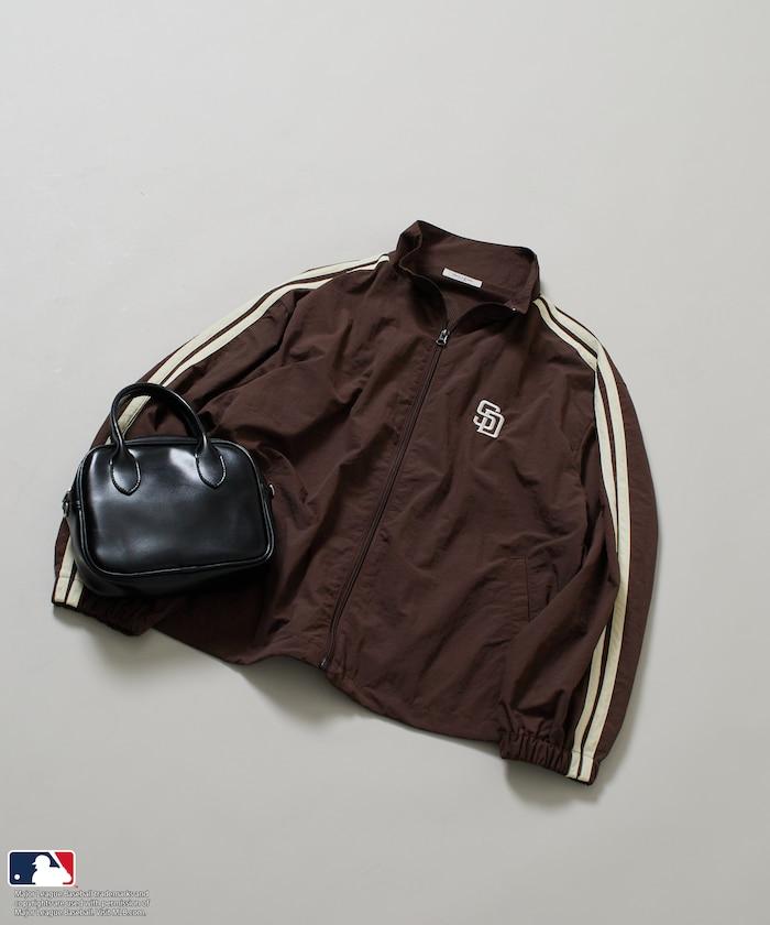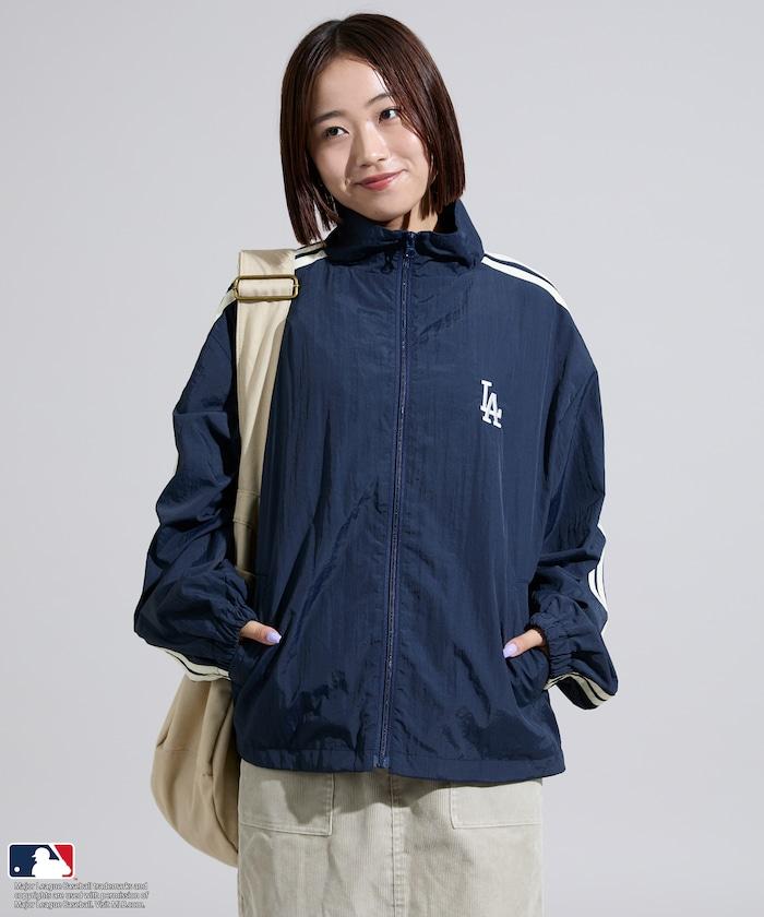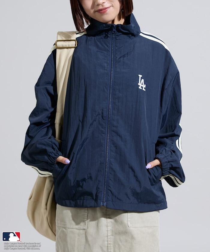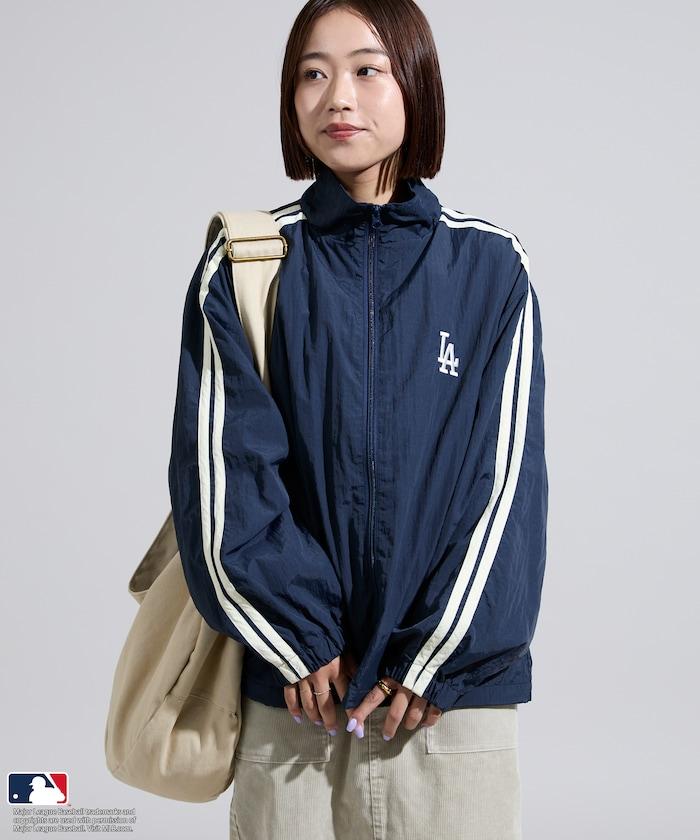 尼龍罩衫,帶有運動風格的 MLB 徽標和線條。