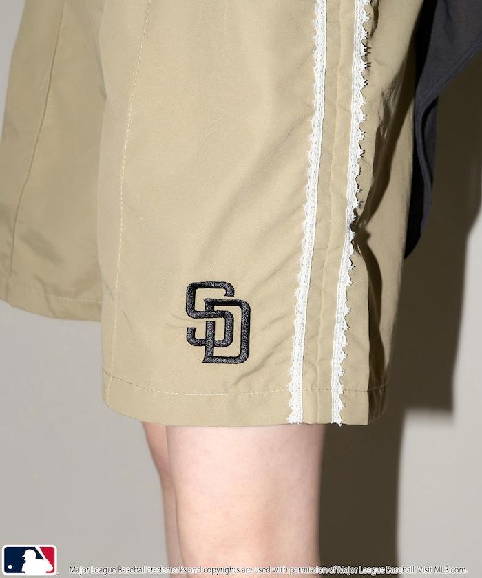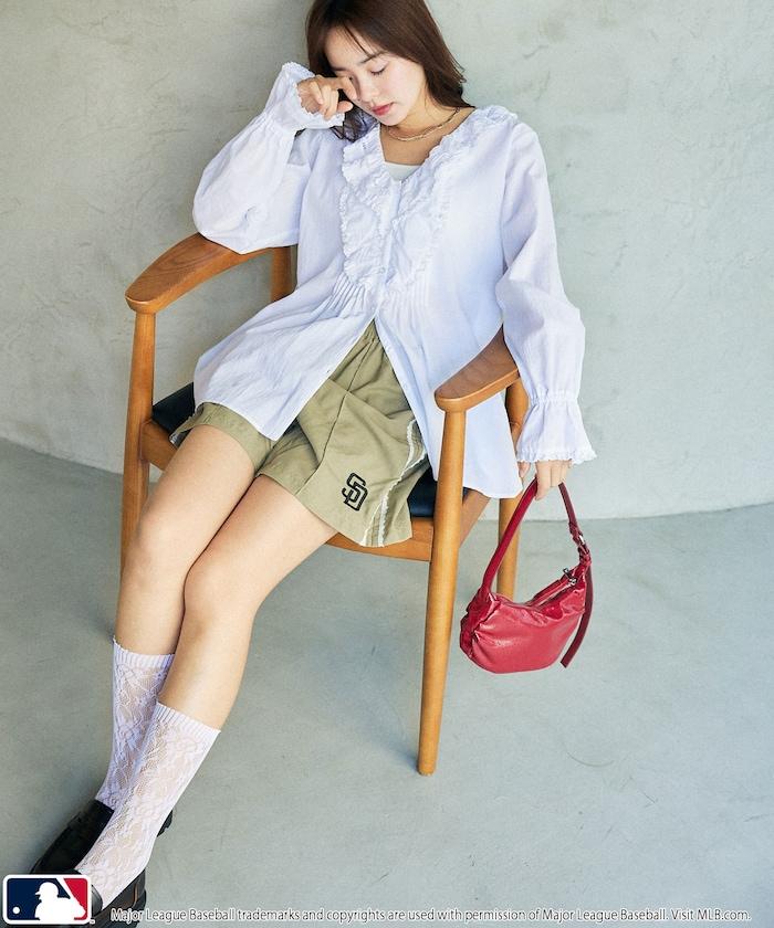 短褲採用毛茸茸的尼龍面料,蕾絲線條設計十分可愛。