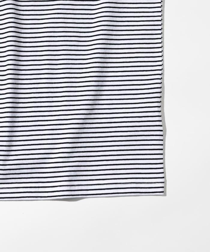 剪裁和縫製的 T 恤,由於採用了細間距邊線,顯得格外優雅。