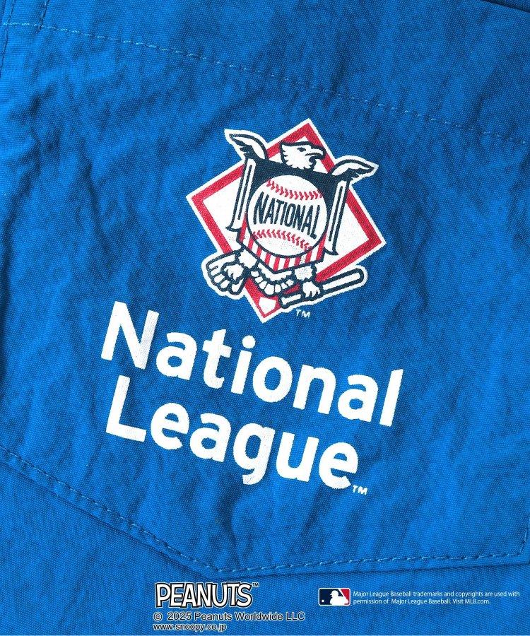 寬大、易於活動的四分之一長半身褲上繡有醒目的美國聯盟和全國聯盟圖案。