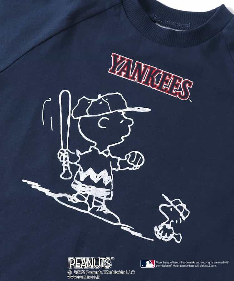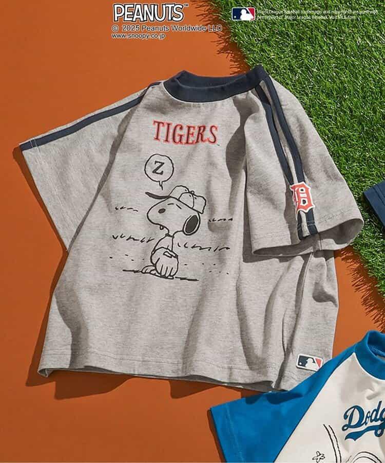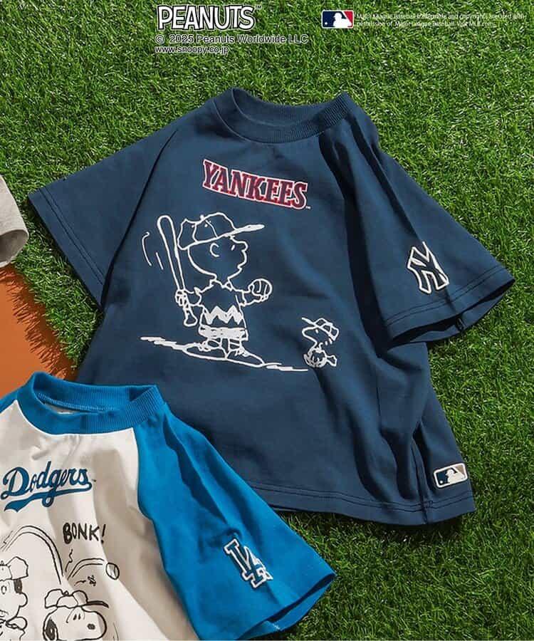 這款無袖 T 恤的圖案是可愛的 PEANUTS 角色在打棒球。